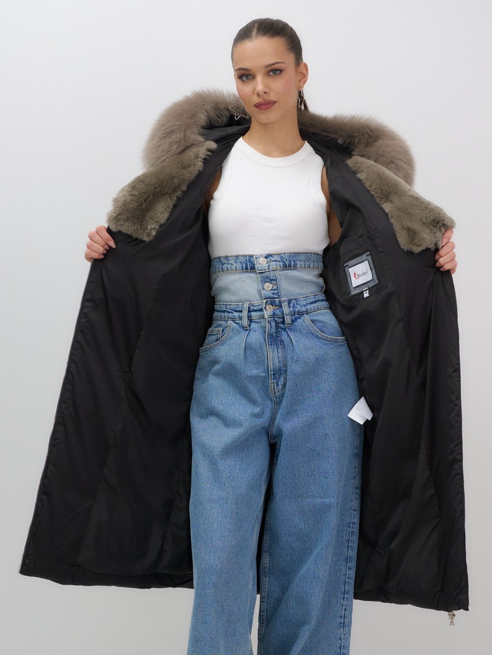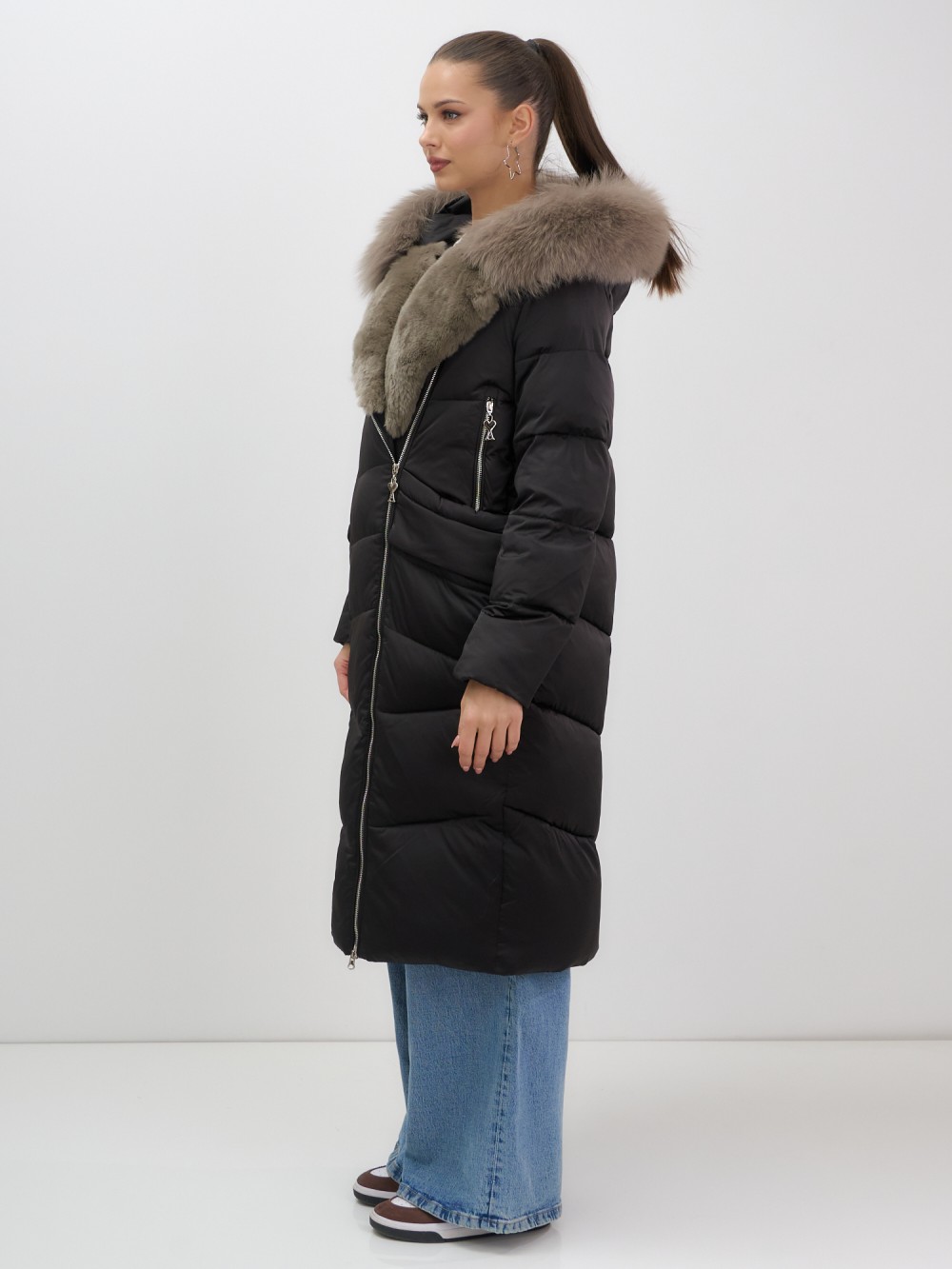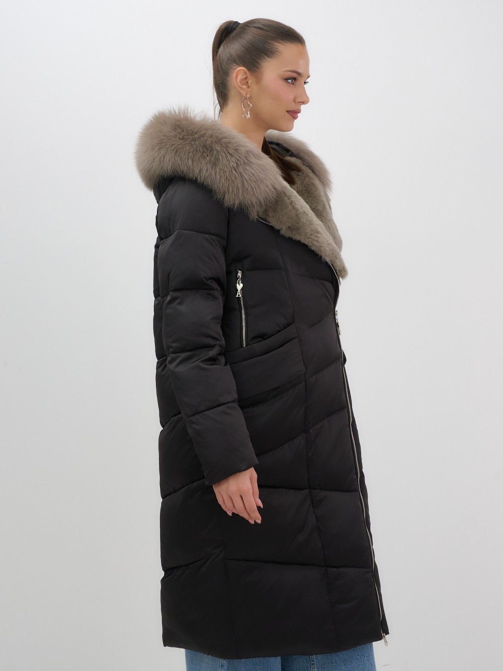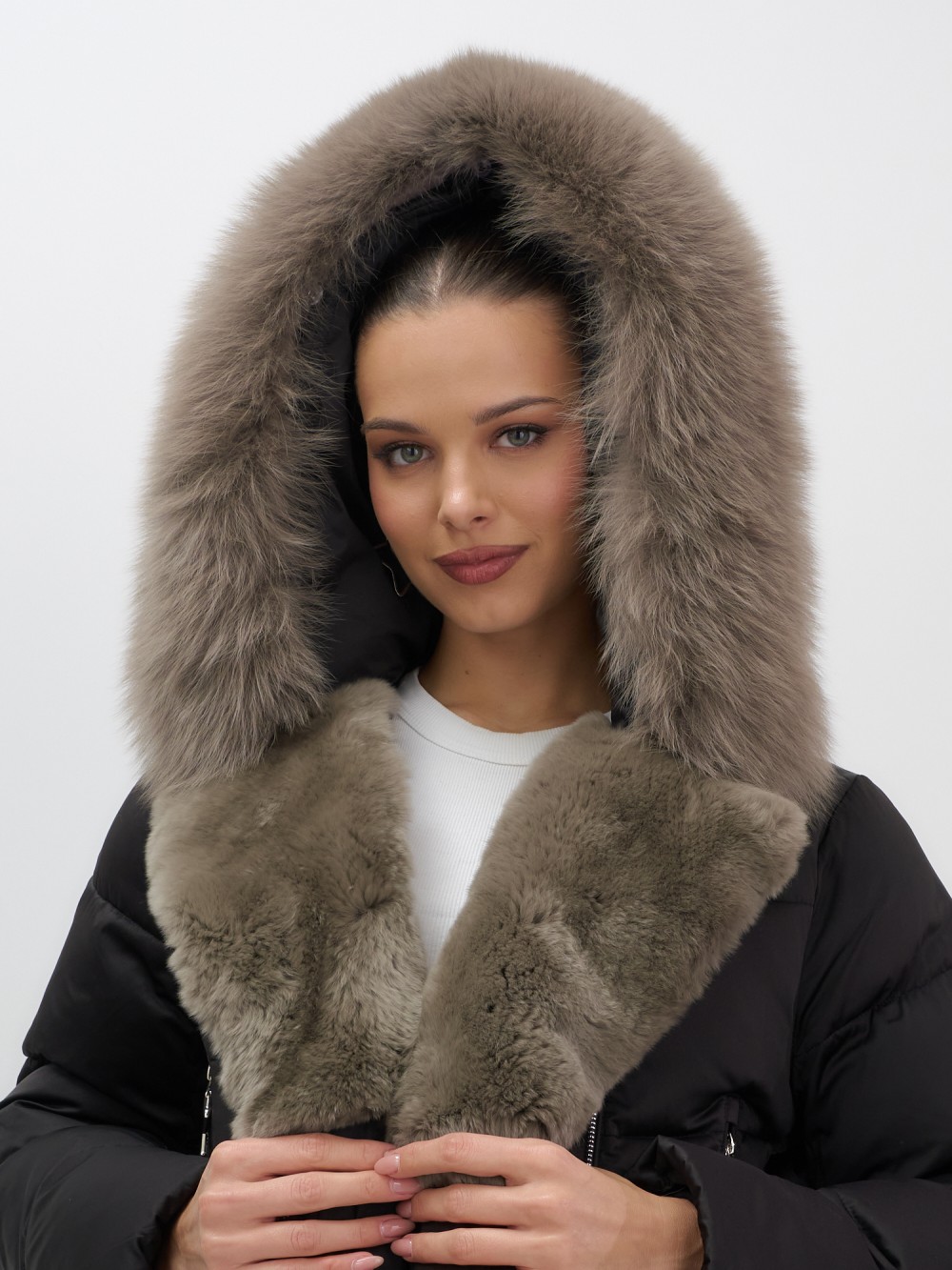 Изысканный английский воротник из натурального меха кролика и роскошная съемная опушка из песца создают неповторимый силуэт. Удлиненный крой ниже колена подчеркивает элегантность линий. Премиальный утеплитель повышенной плотности (640-740 г) обеспечивает максимальную защиту от холода.