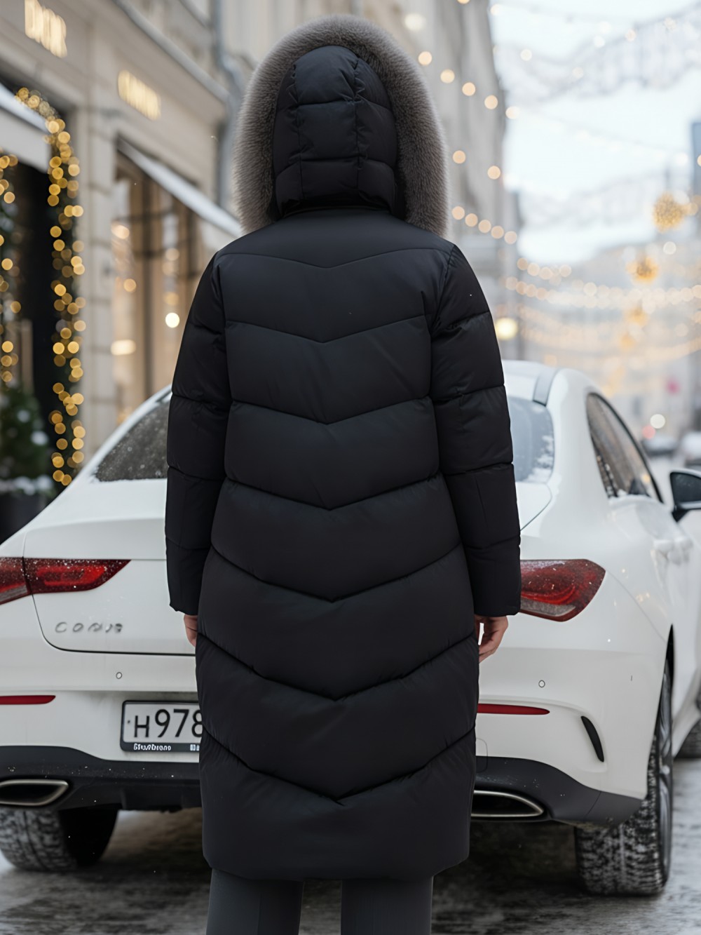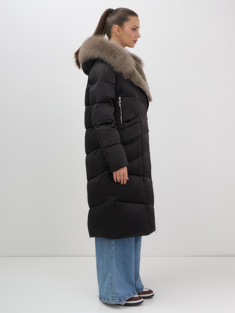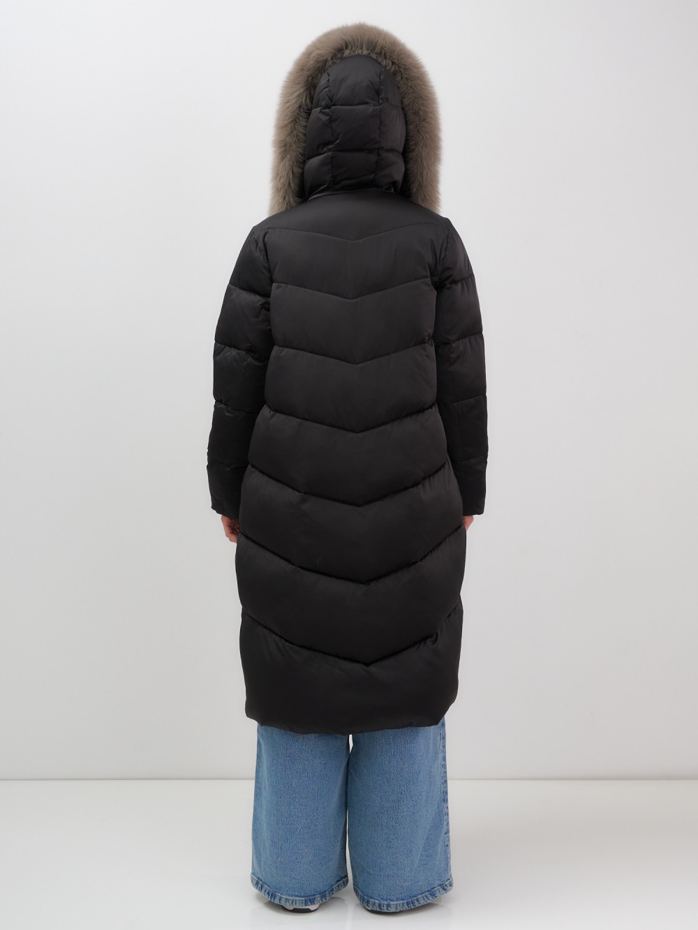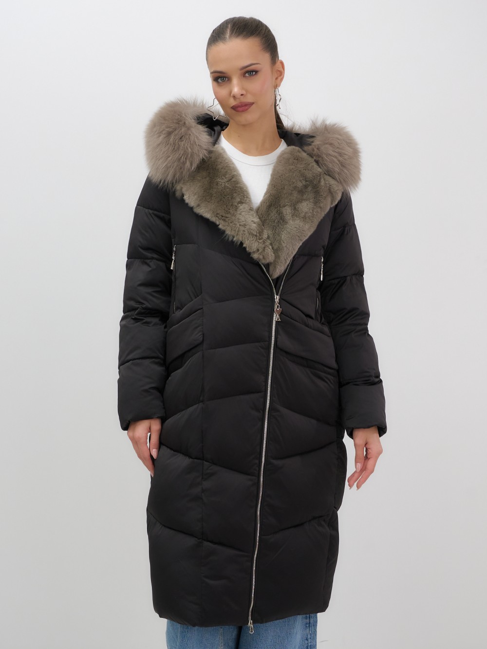Изысканный английский воротник из натурального меха кролика и роскошная съемная опушка из песца создают неповторимый силуэт. Удлиненный крой ниже колена подчеркивает элегантность линий. Премиальный утеплитель повышенной плотности (640-740 г) обеспечивает максимальную защиту от холода.