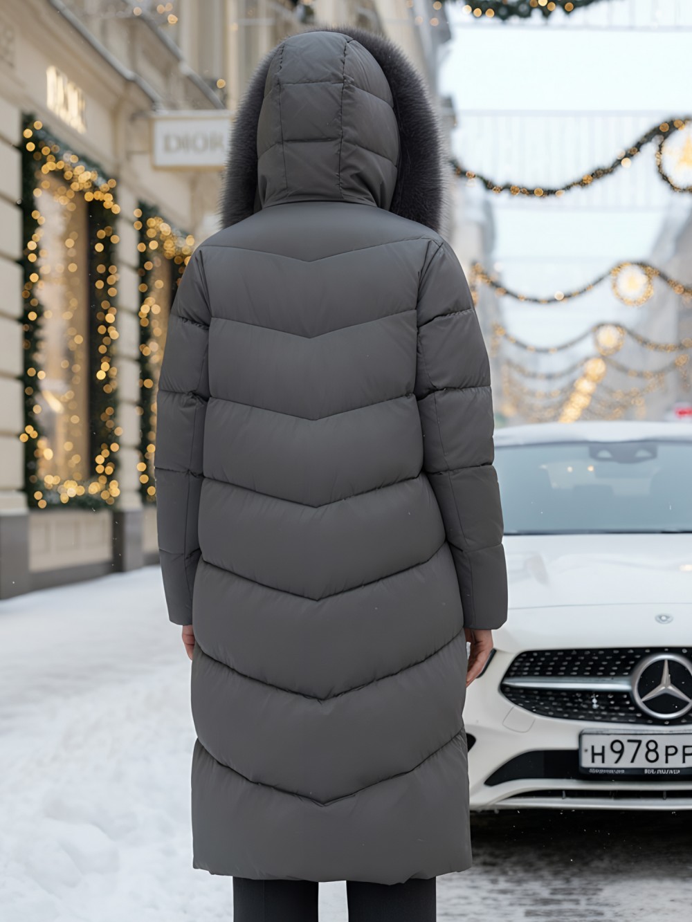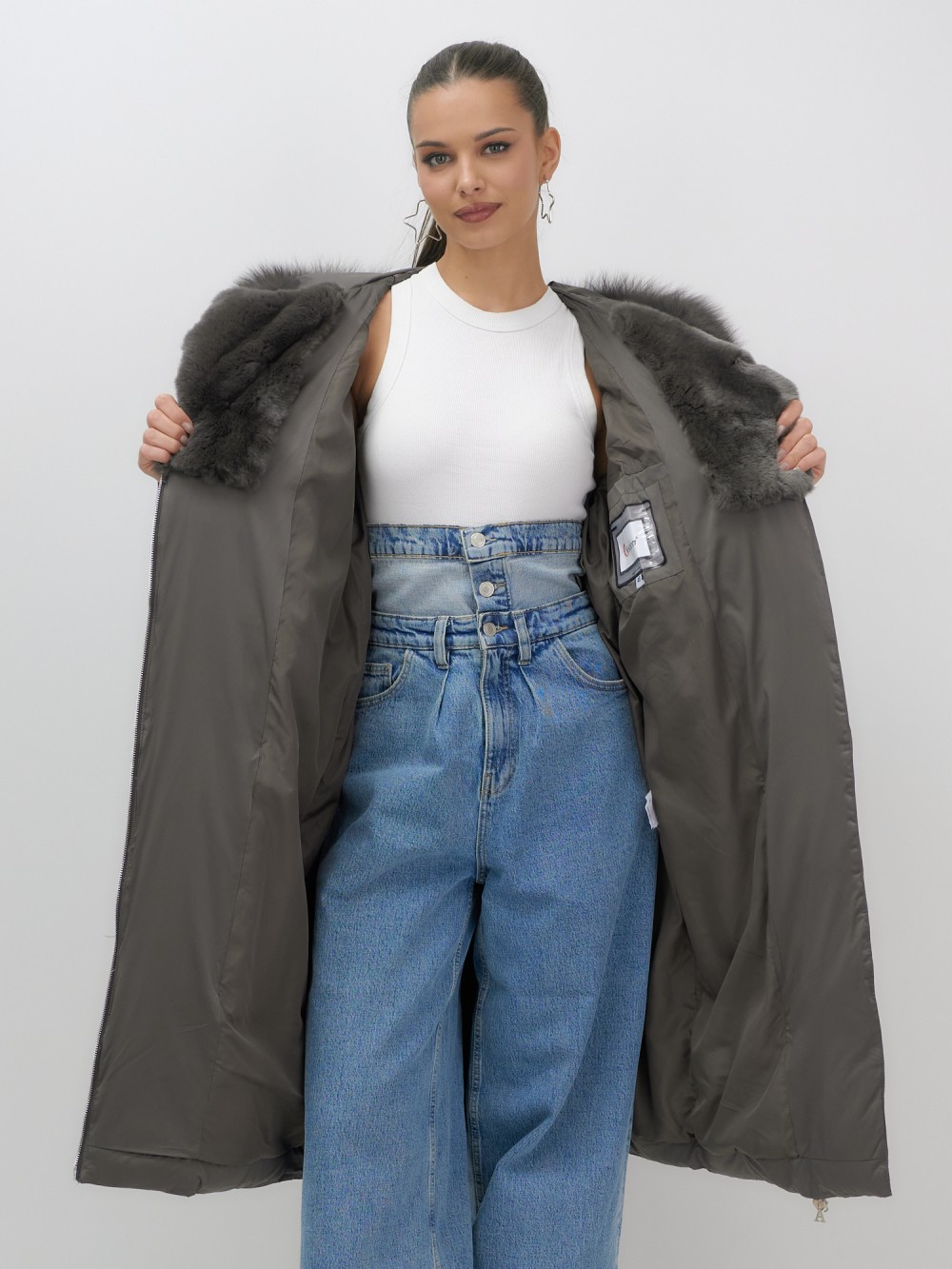 Изысканный английский воротник из натурального меха кролика и роскошная съемная опушка из песца создают неповторимый силуэт. Удлиненный крой ниже колена подчеркивает элегантность линий. Премиальный утеплитель повышенной плотности (640-740 г) обеспечивает максимальную защиту от холода.
