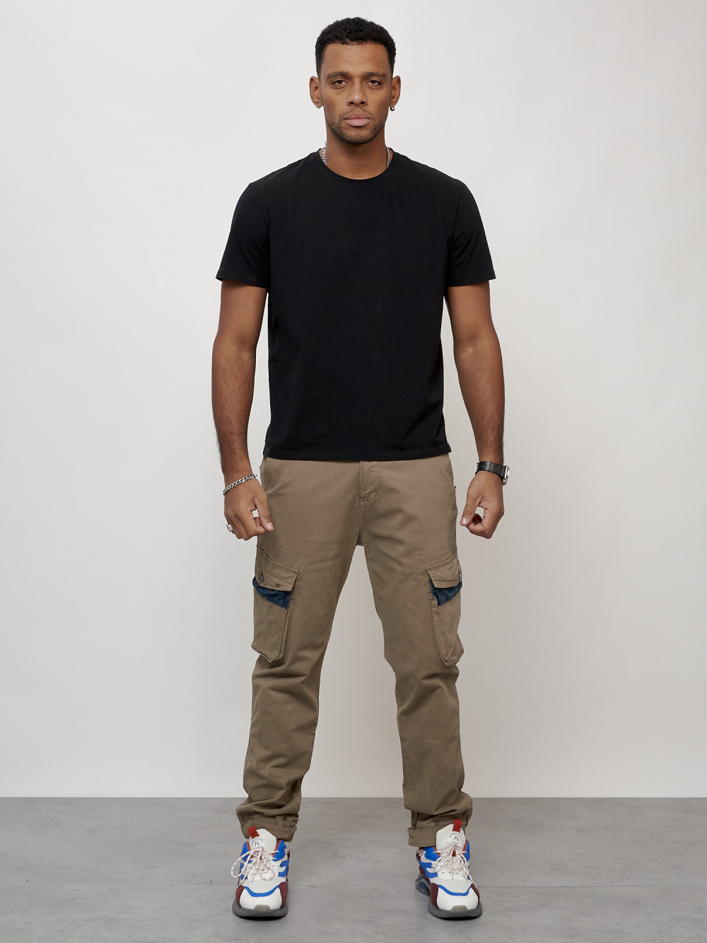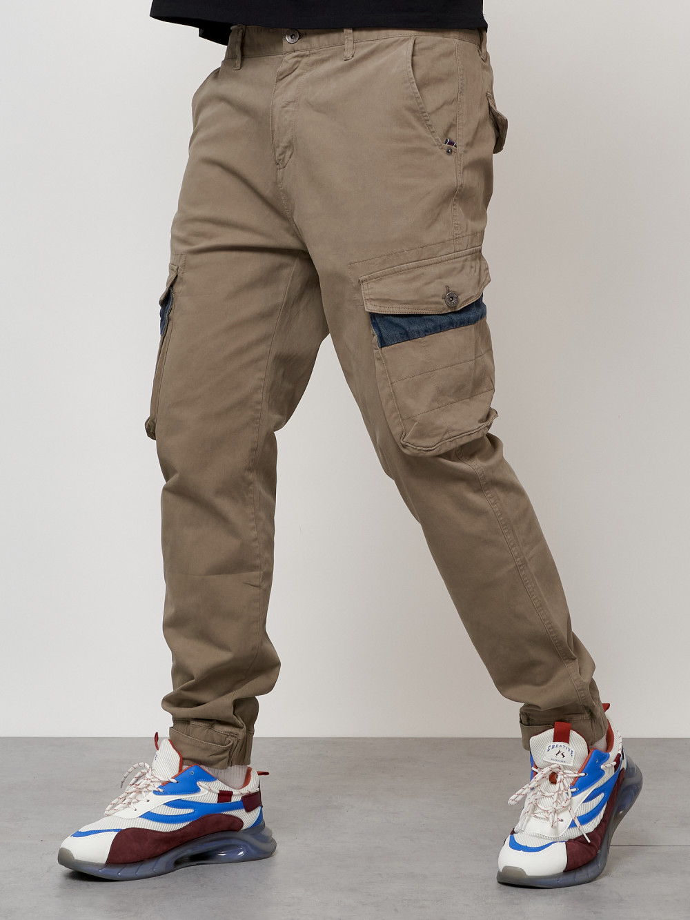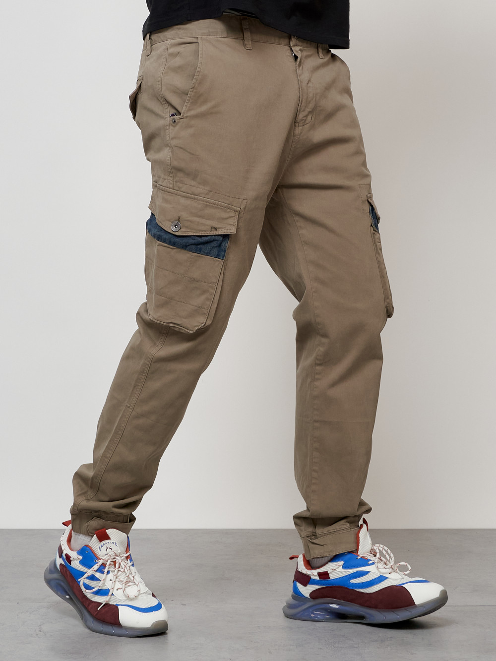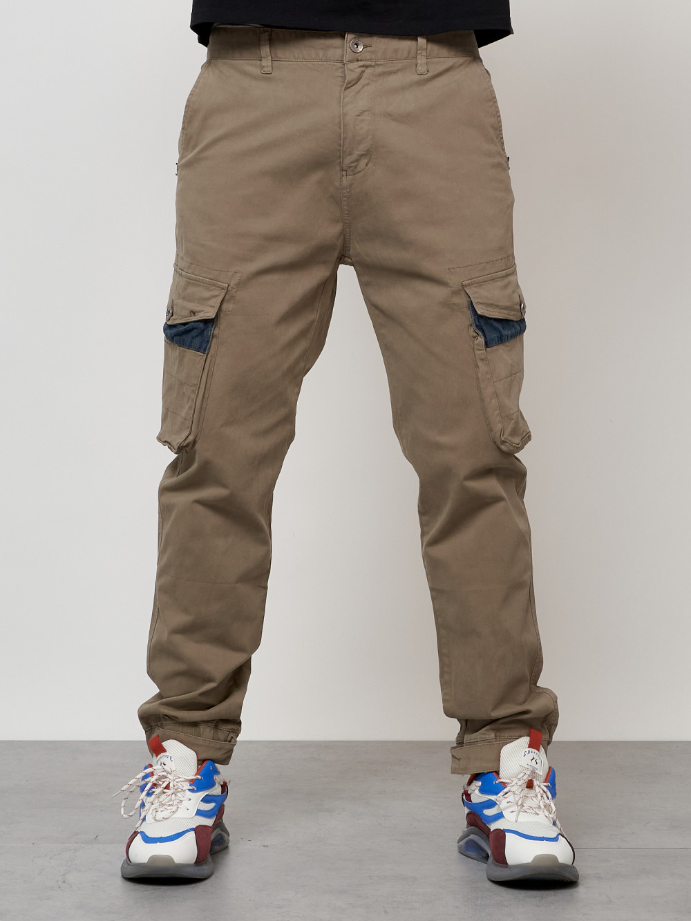 Джинсы карго мужские с накладными карманами бежевого цвета 2403-1B — Np