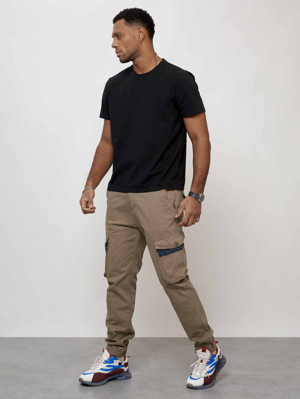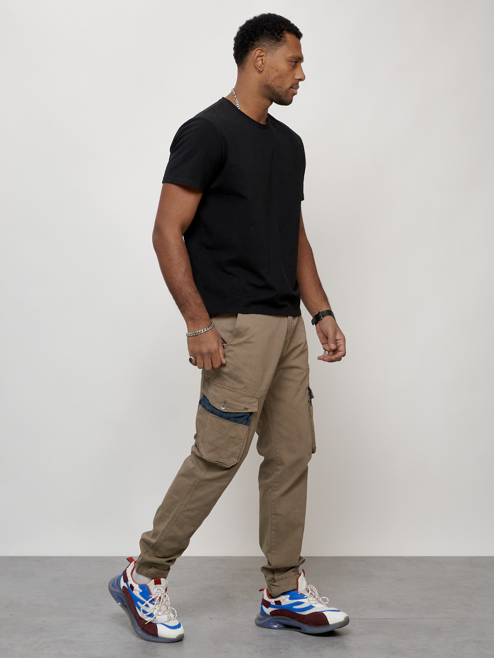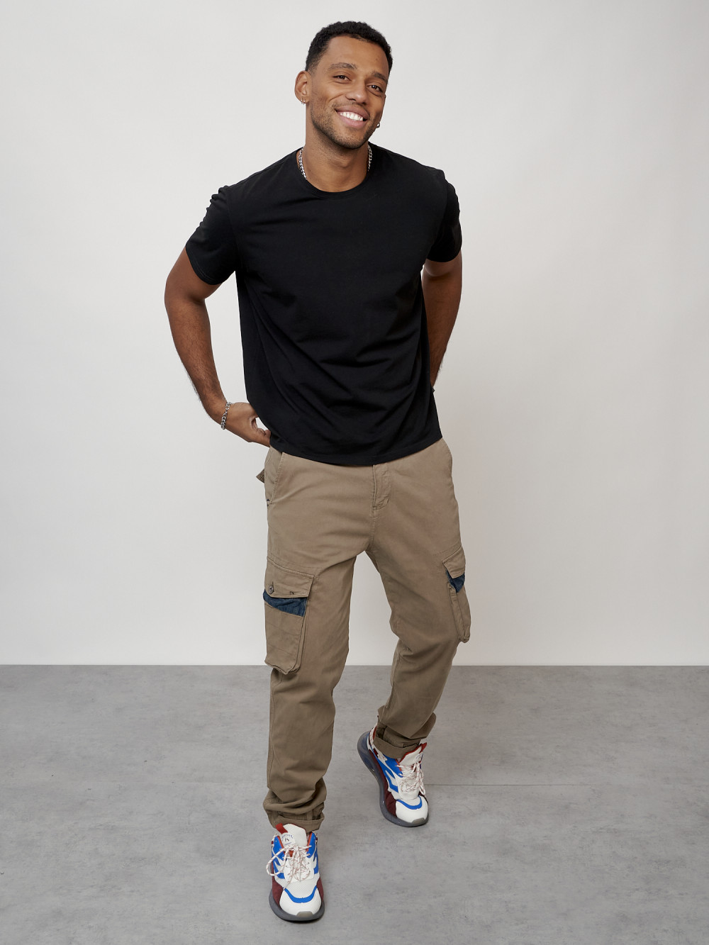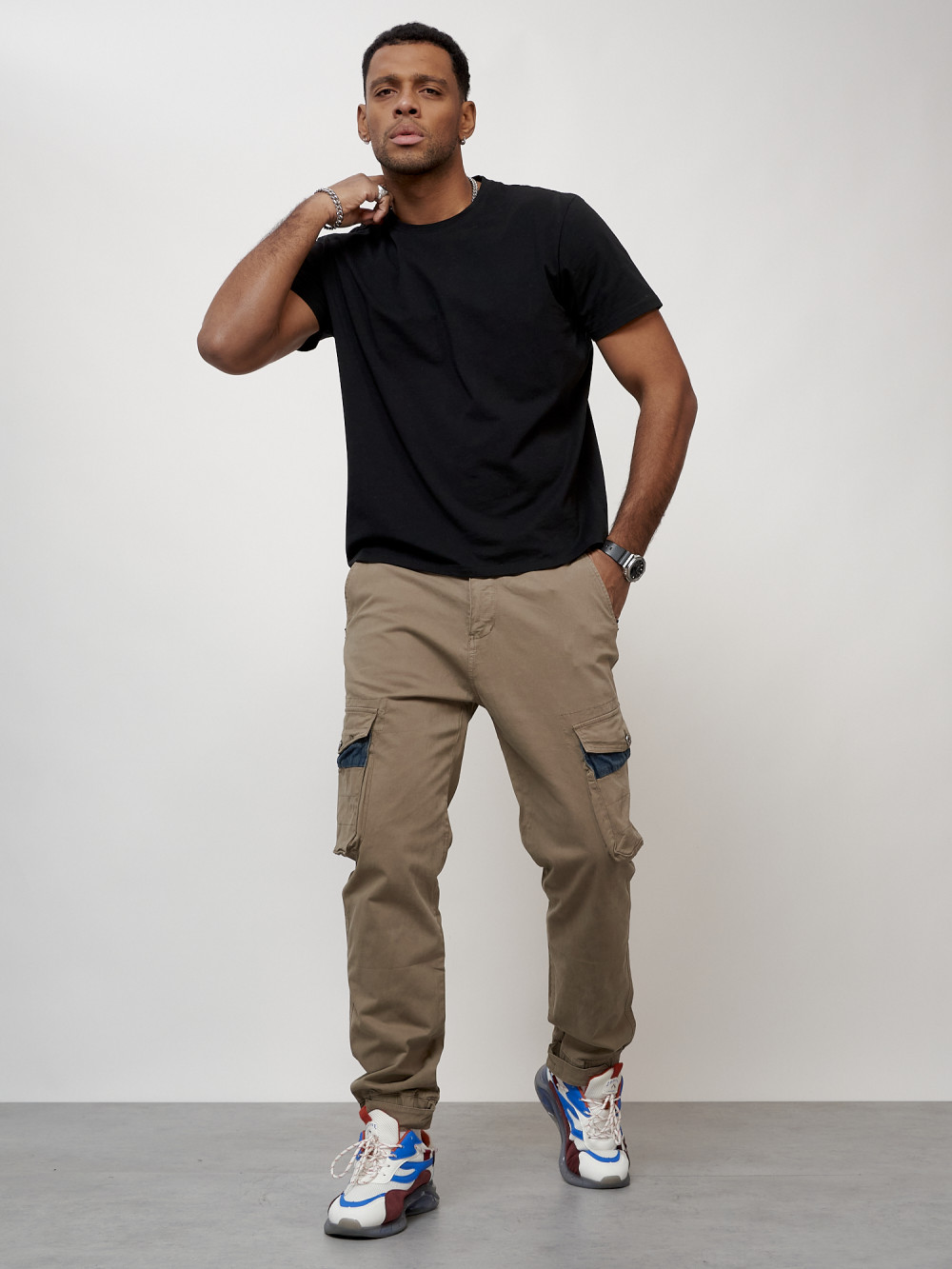 Джинсы карго мужские с накладными карманами бежевого цвета 2403-1B — Np
