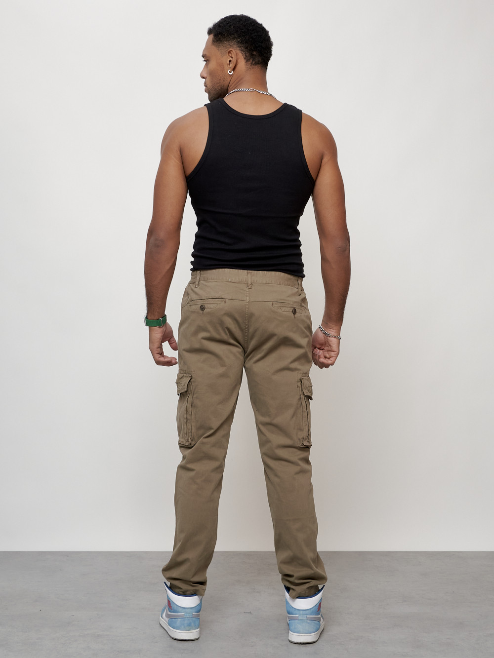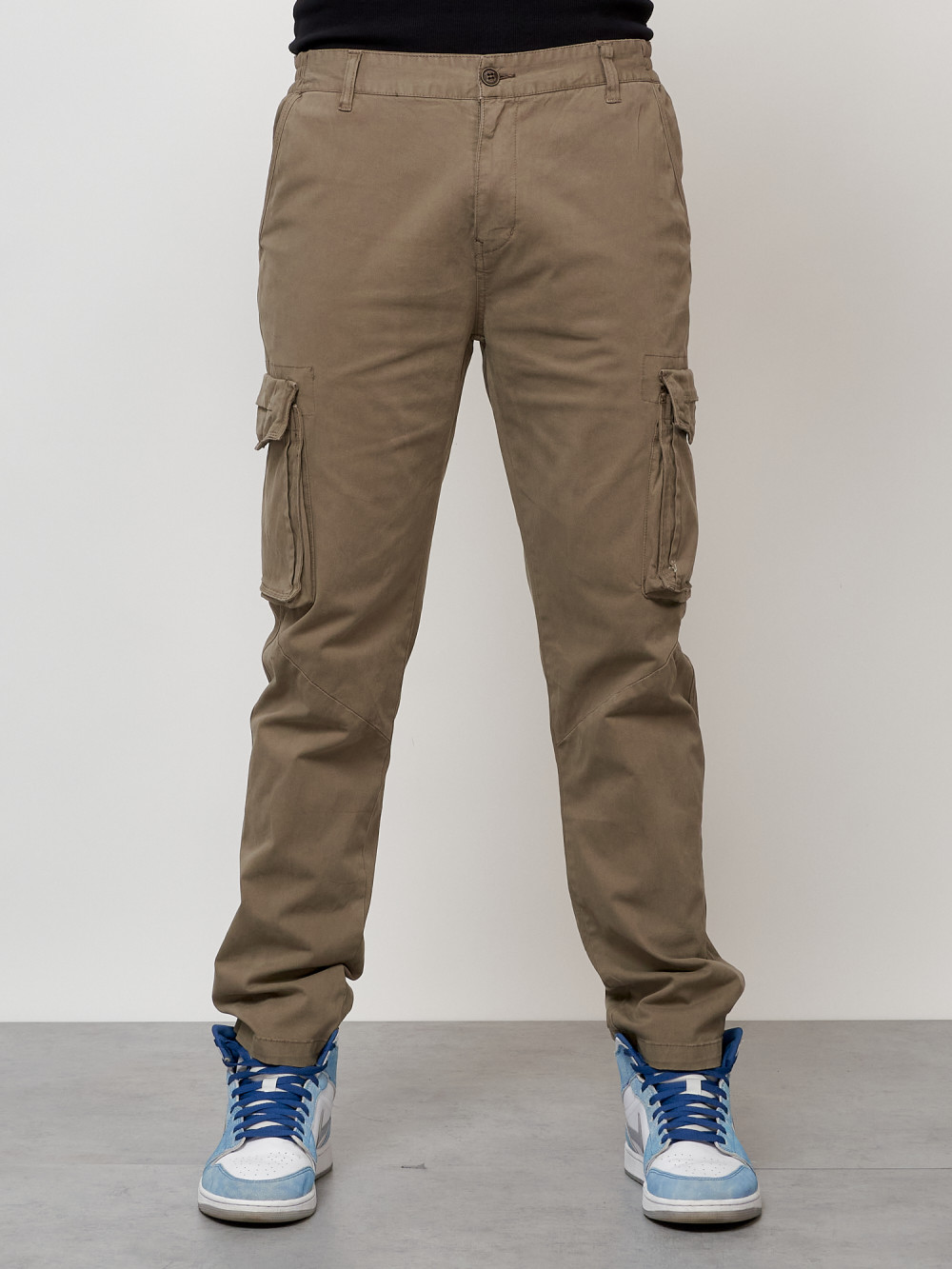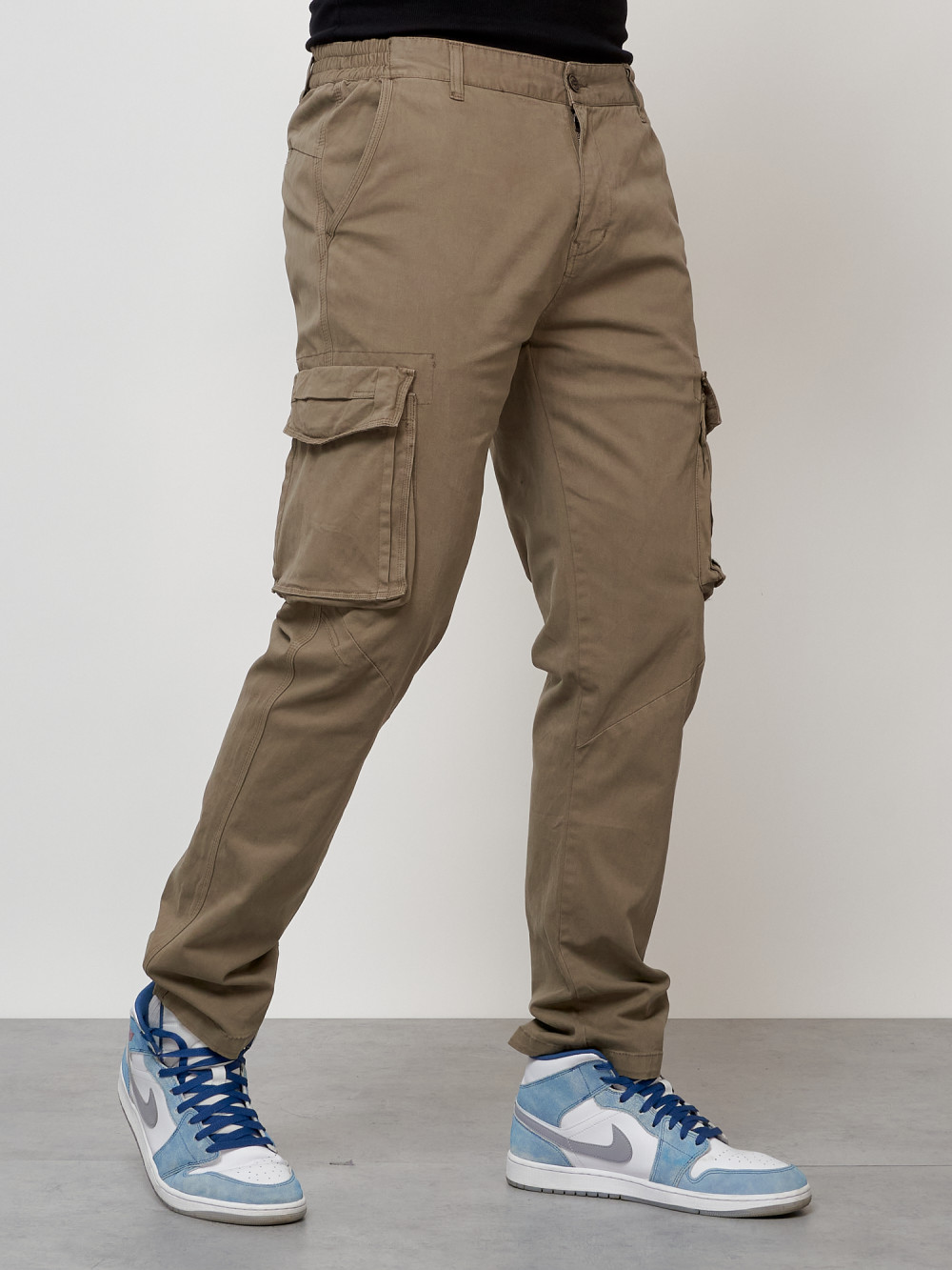 Джинсы карго мужские с накладными карманами бежевого цвета 2404B — Np