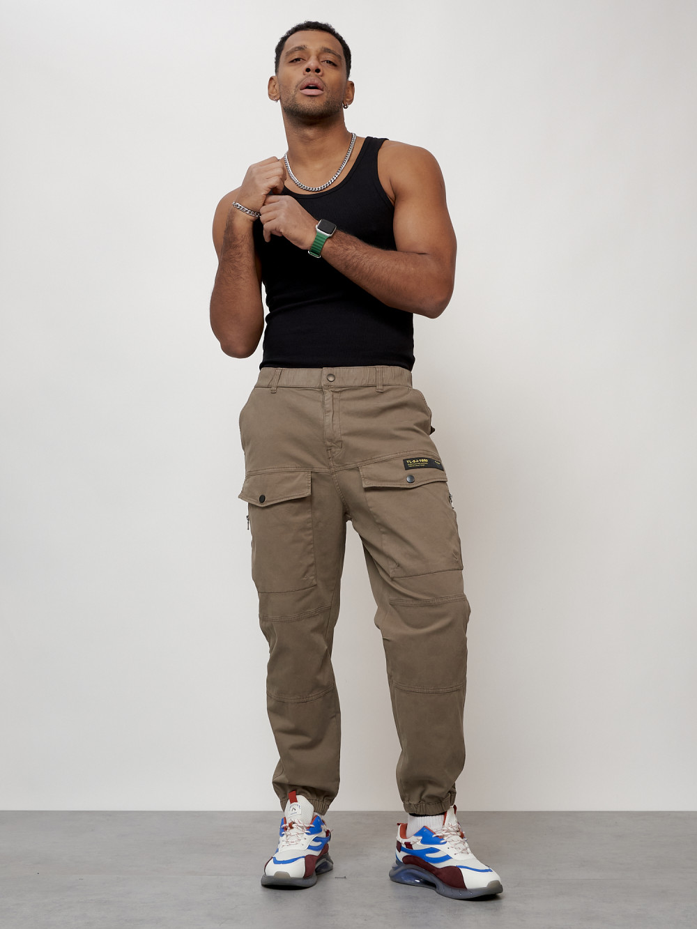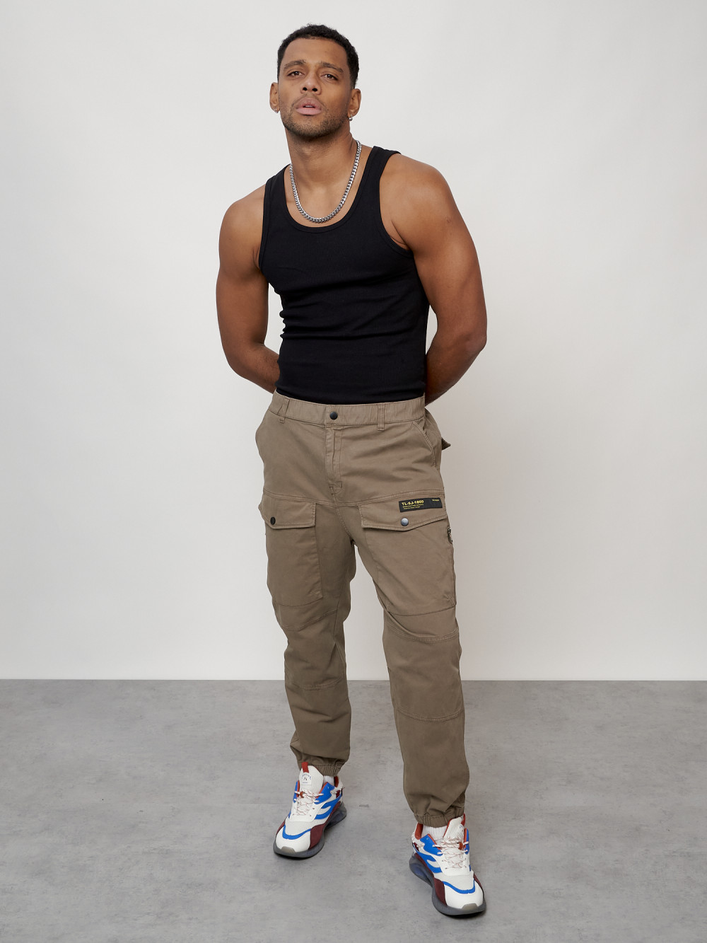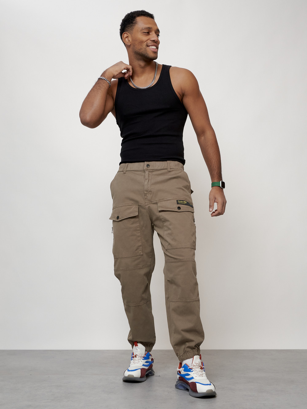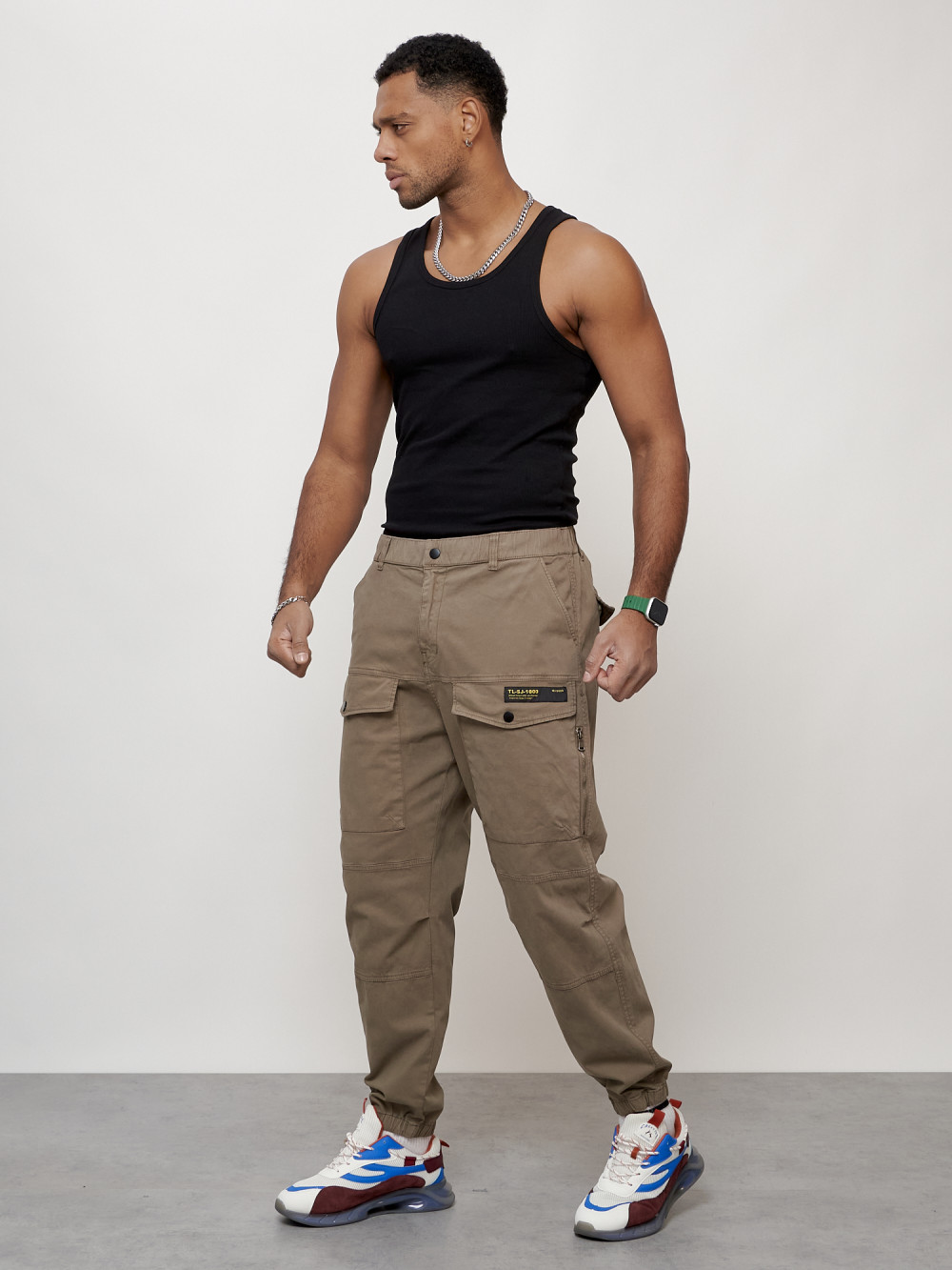 Джинсы карго мужские с накладными карманами бежевого цвета 2417B
