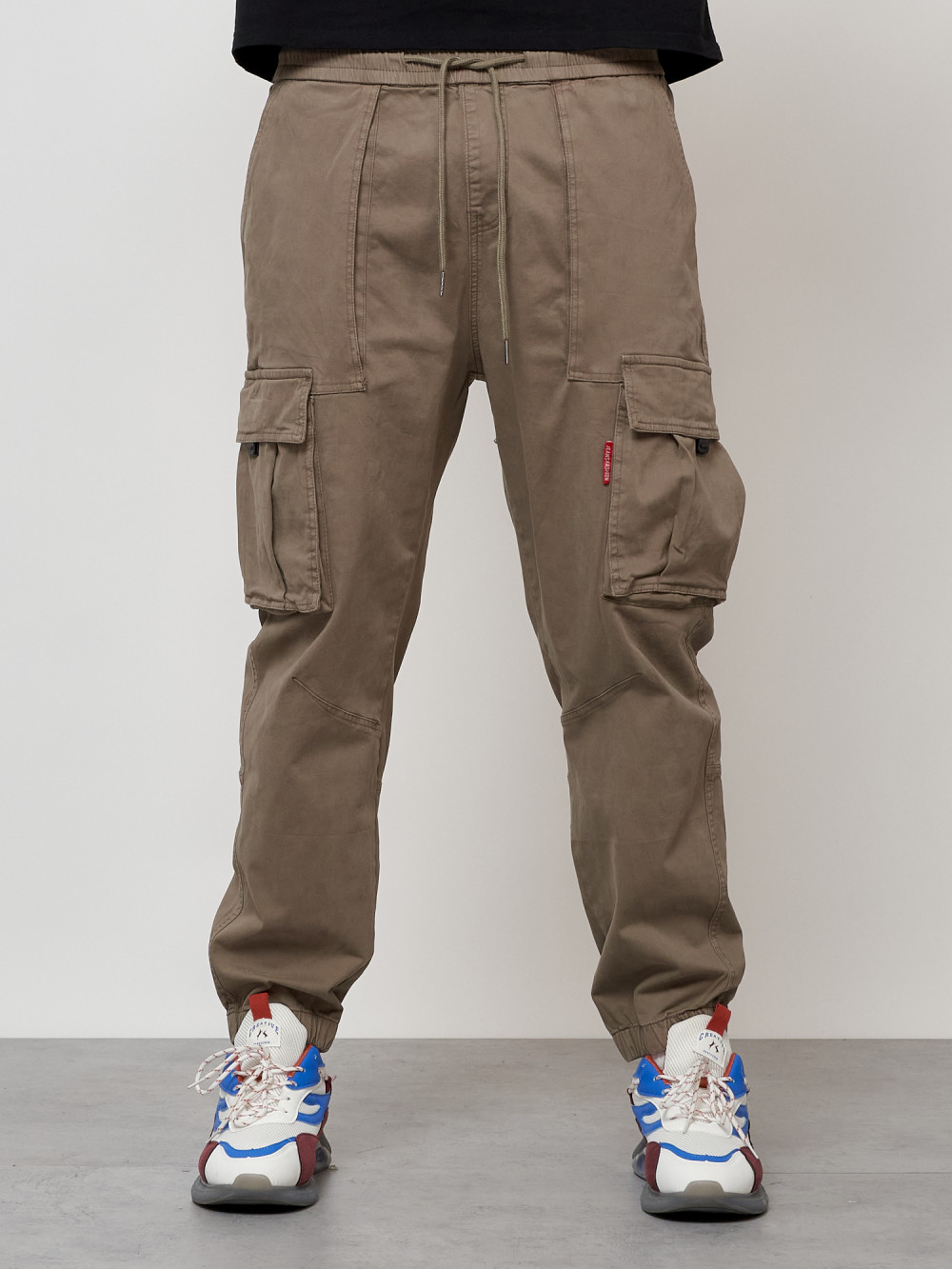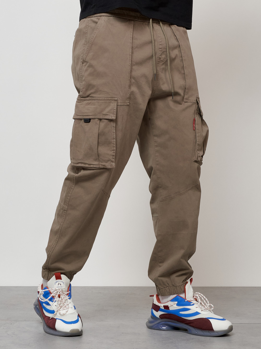 Джинсы карго мужские с накладными карманами бежевого цвета 2423B — Np