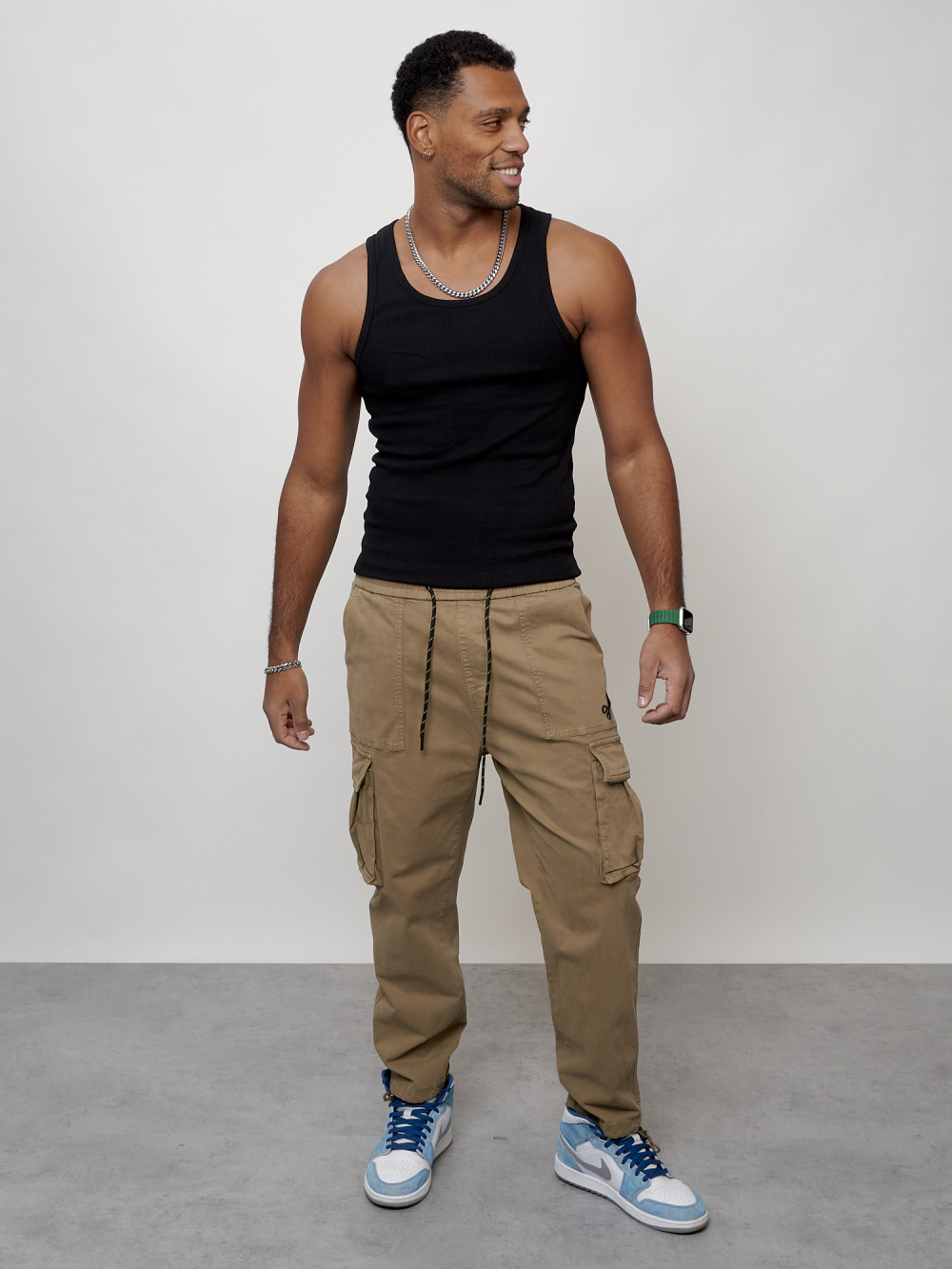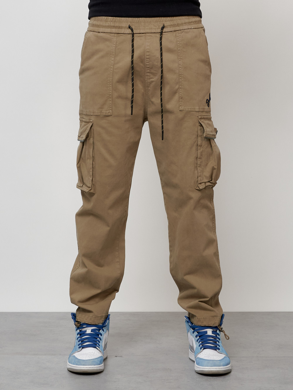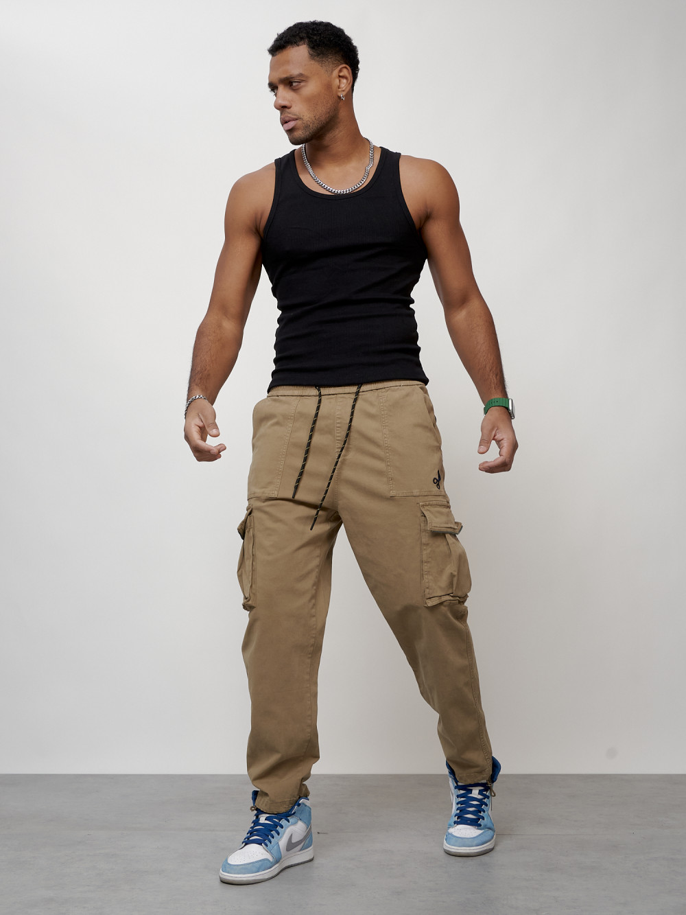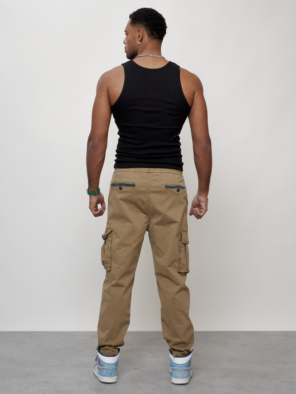 Джинсы карго мужские с накладными карманами бежевого цвета 2424B