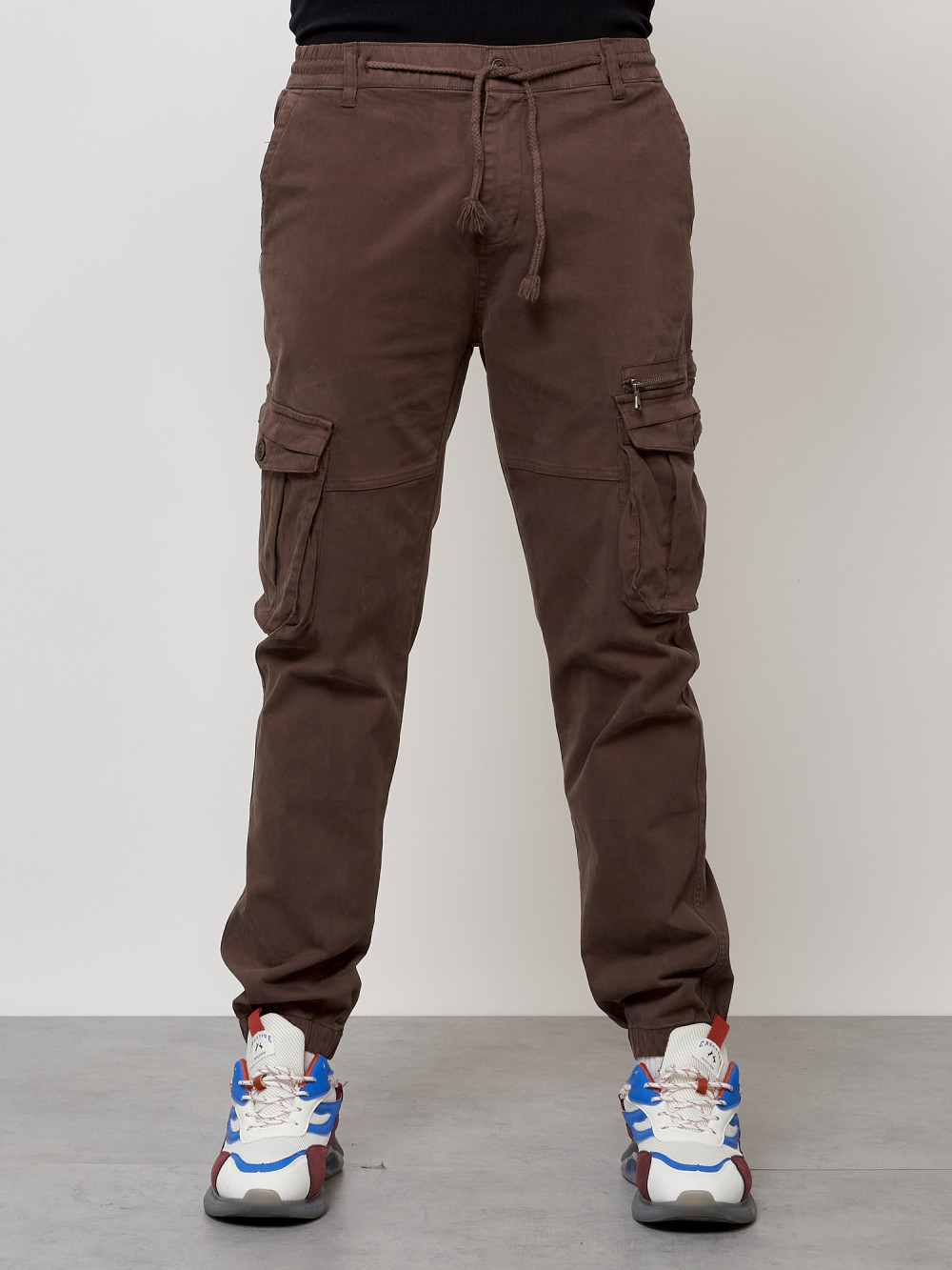 Джинсы карго мужские с накладными карманами коричневого цвета 2402K — Np