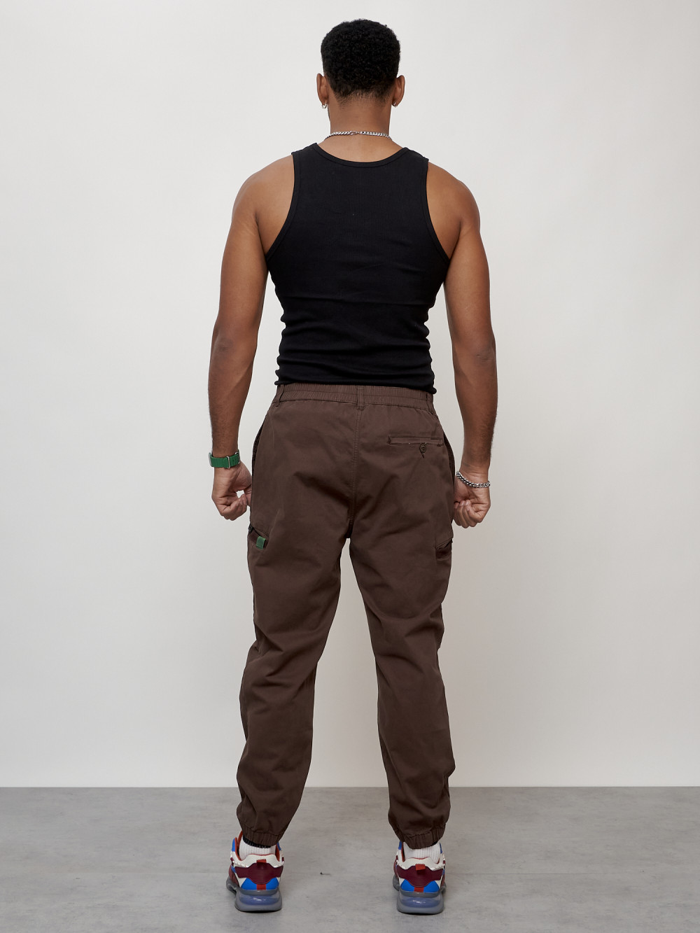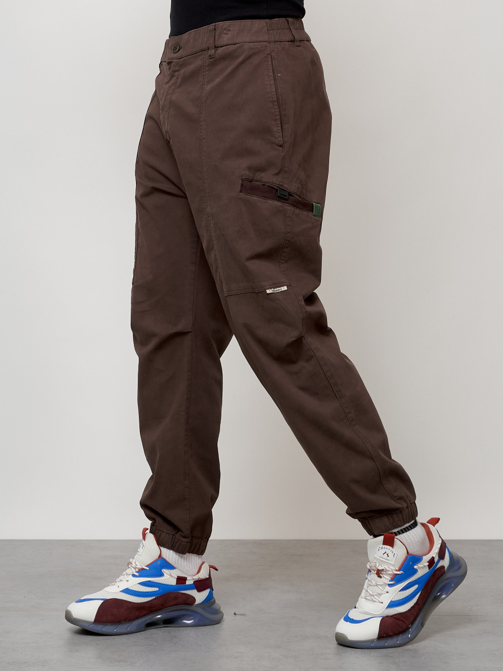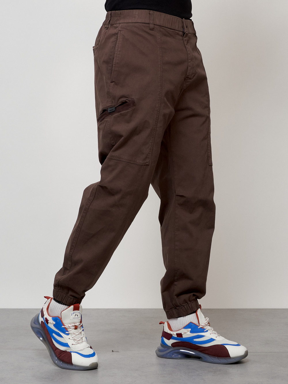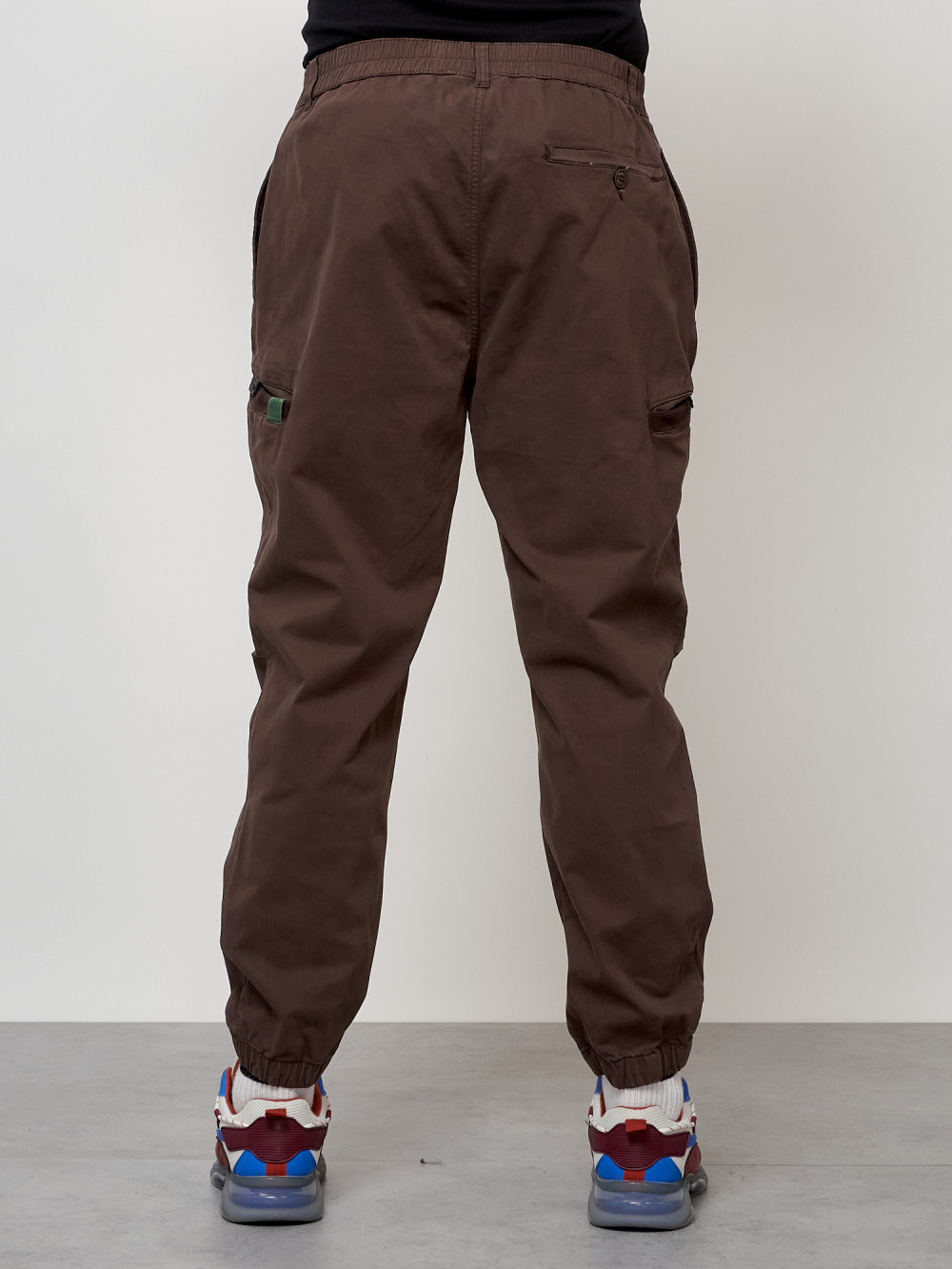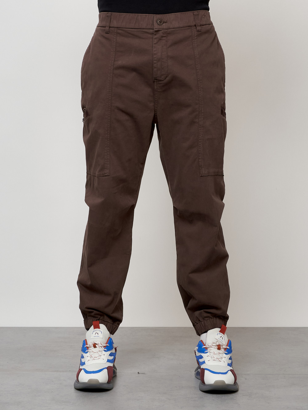 Джинсы карго мужские с накладными карманами коричневого цвета 2419K