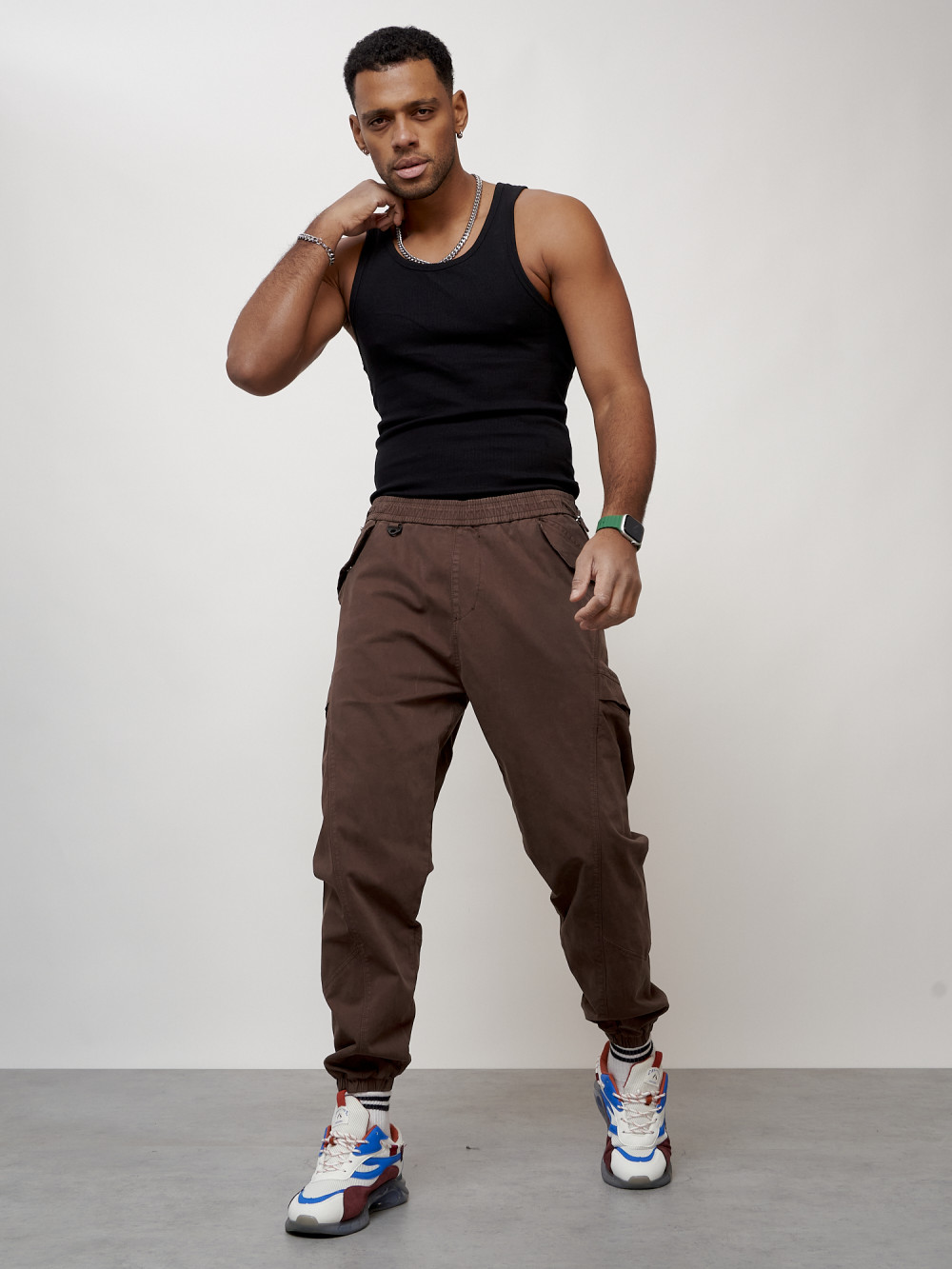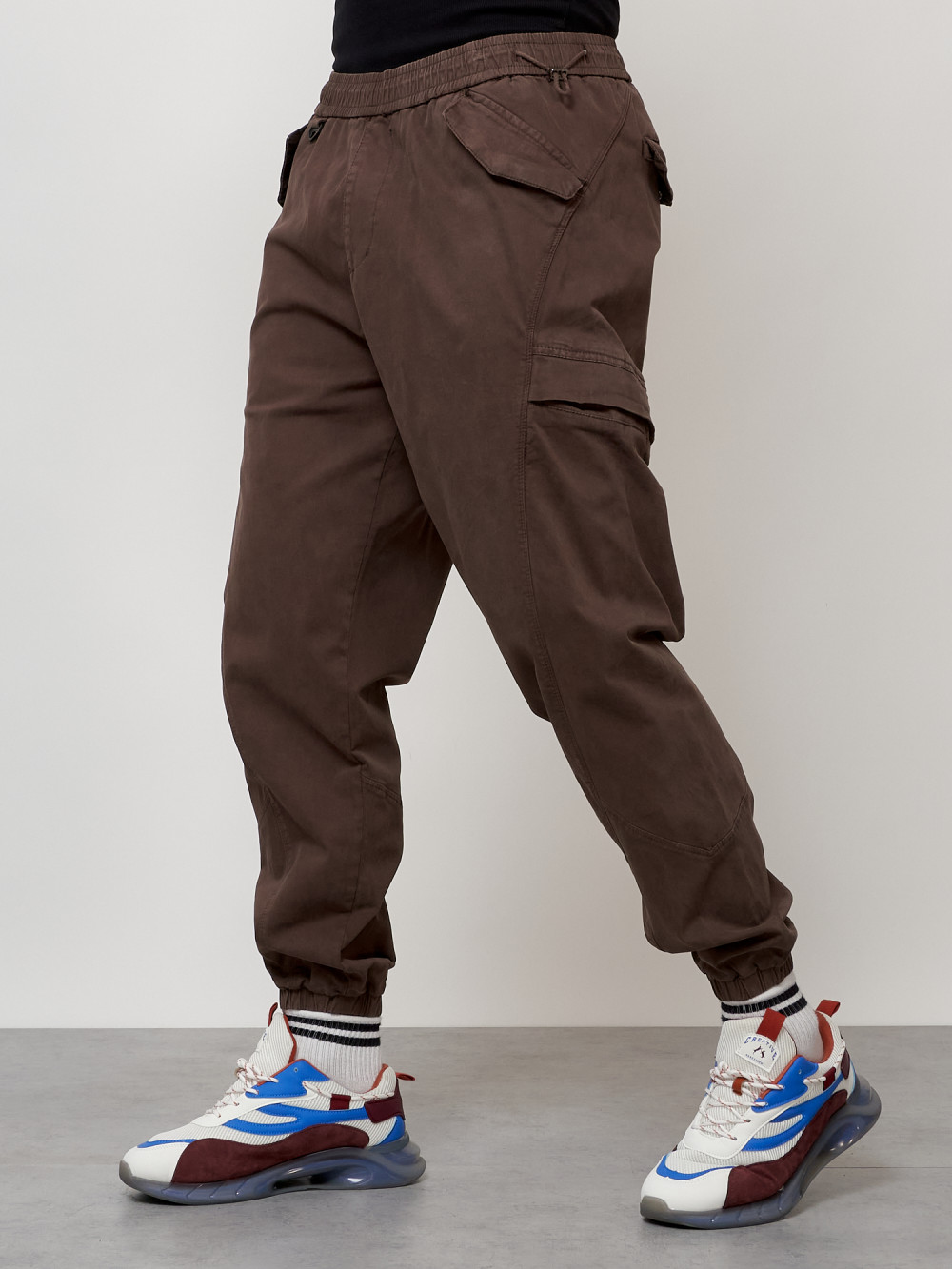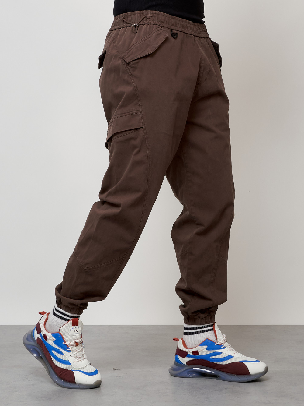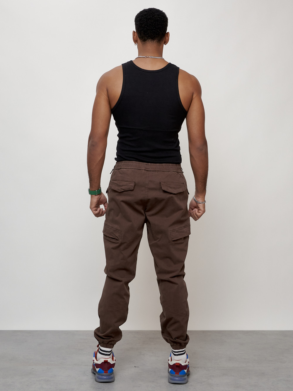 Джинсы карго мужские с накладными карманами коричневого цвета 2420K