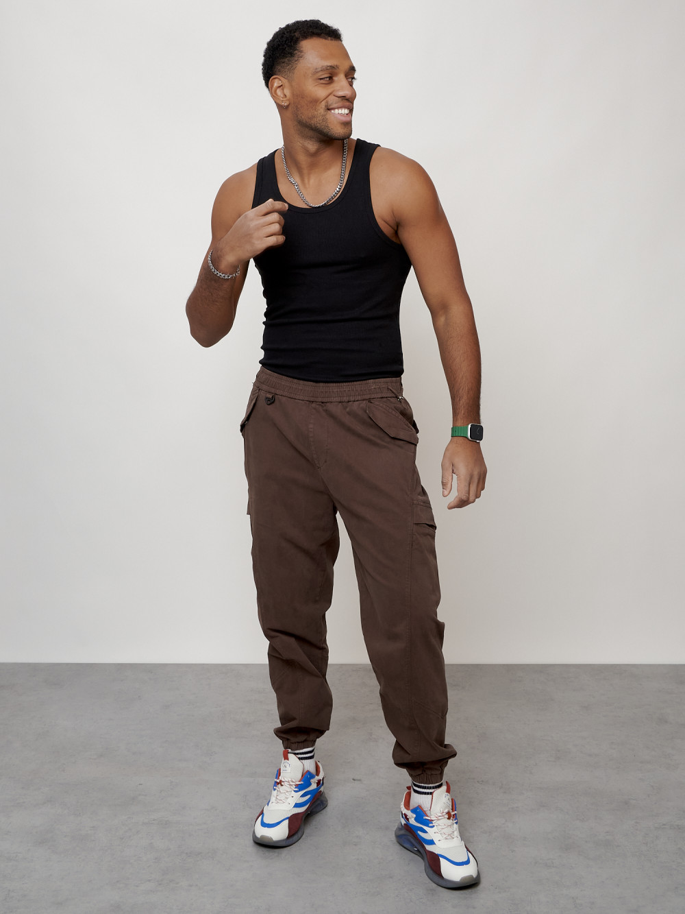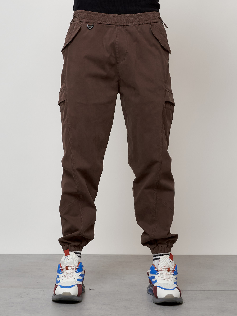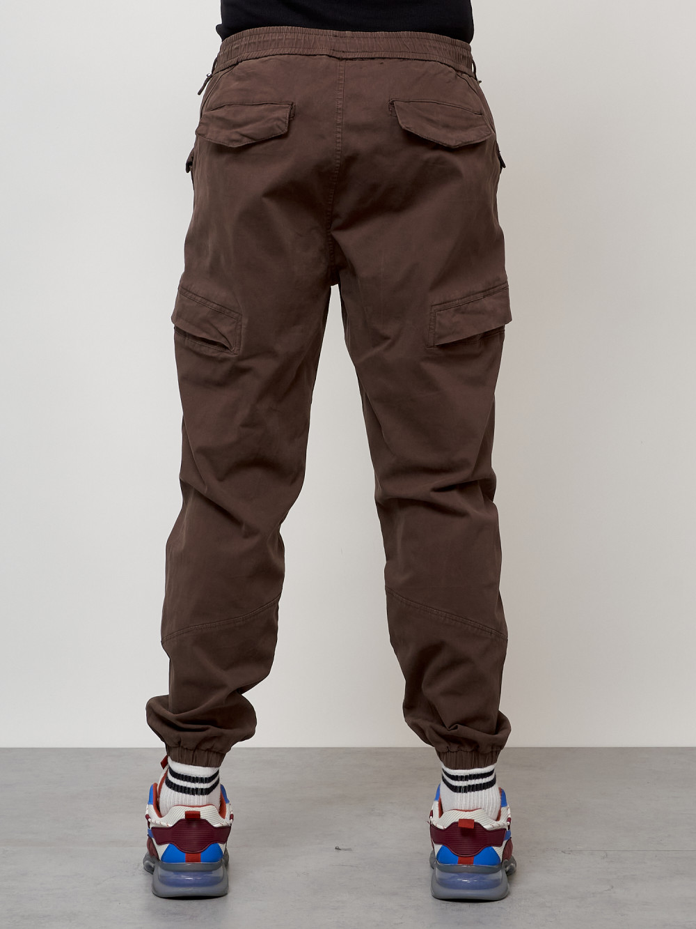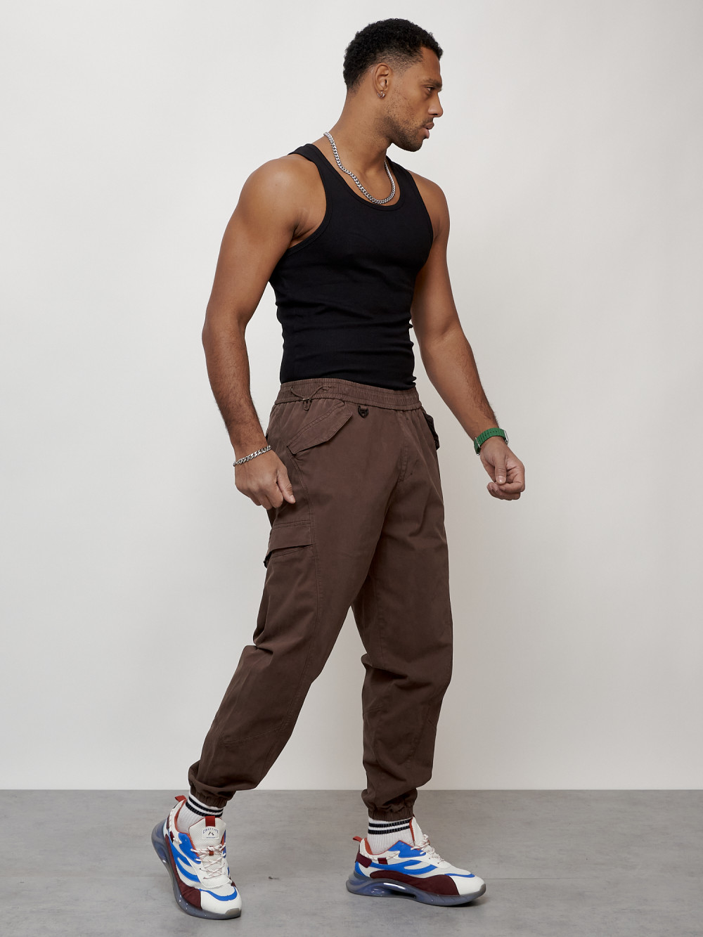 Джинсы карго мужские с накладными карманами коричневого цвета 2420K