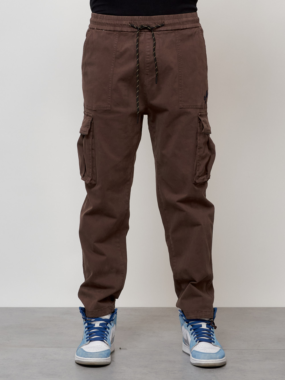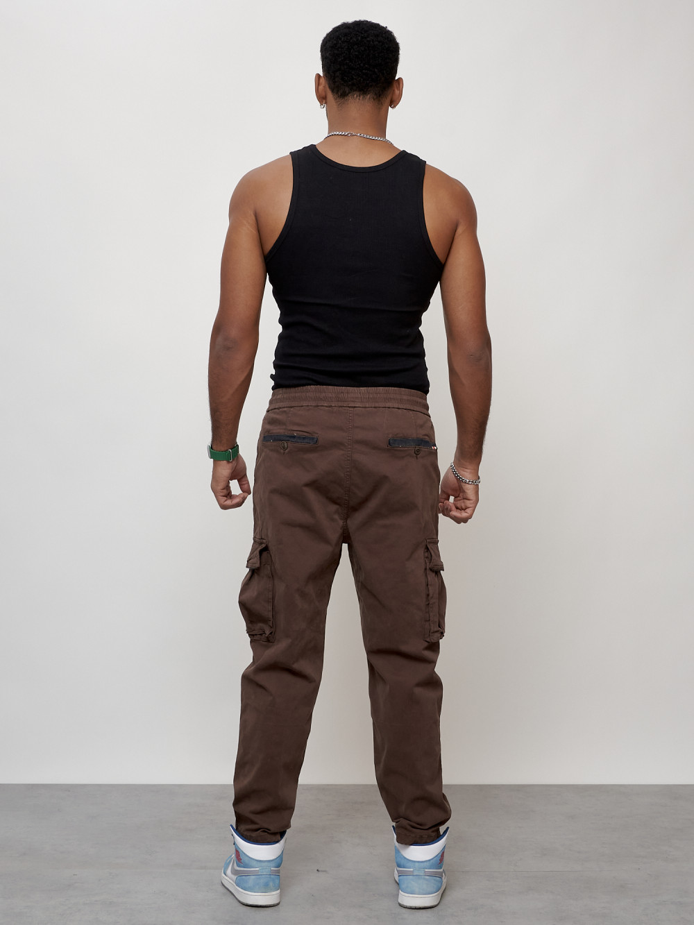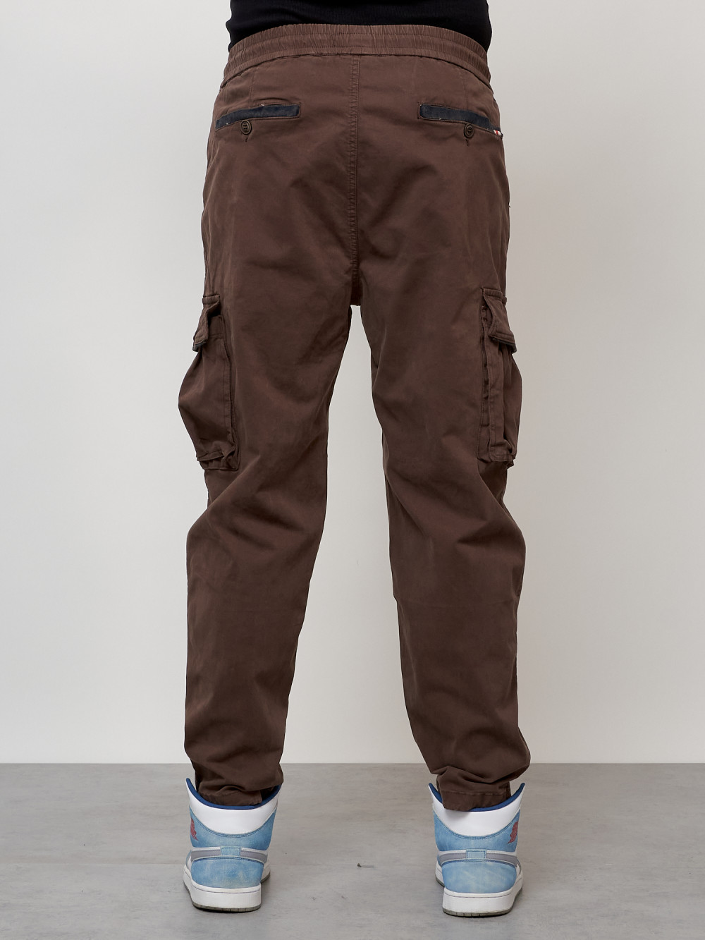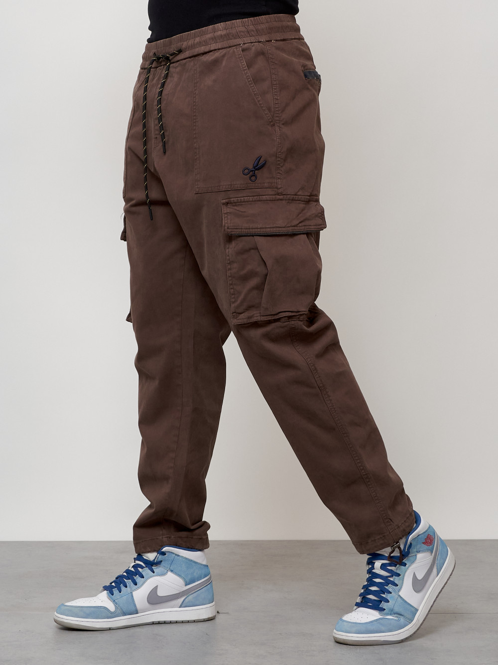 Джинсы карго мужские с накладными карманами коричневого цвета 2424K
