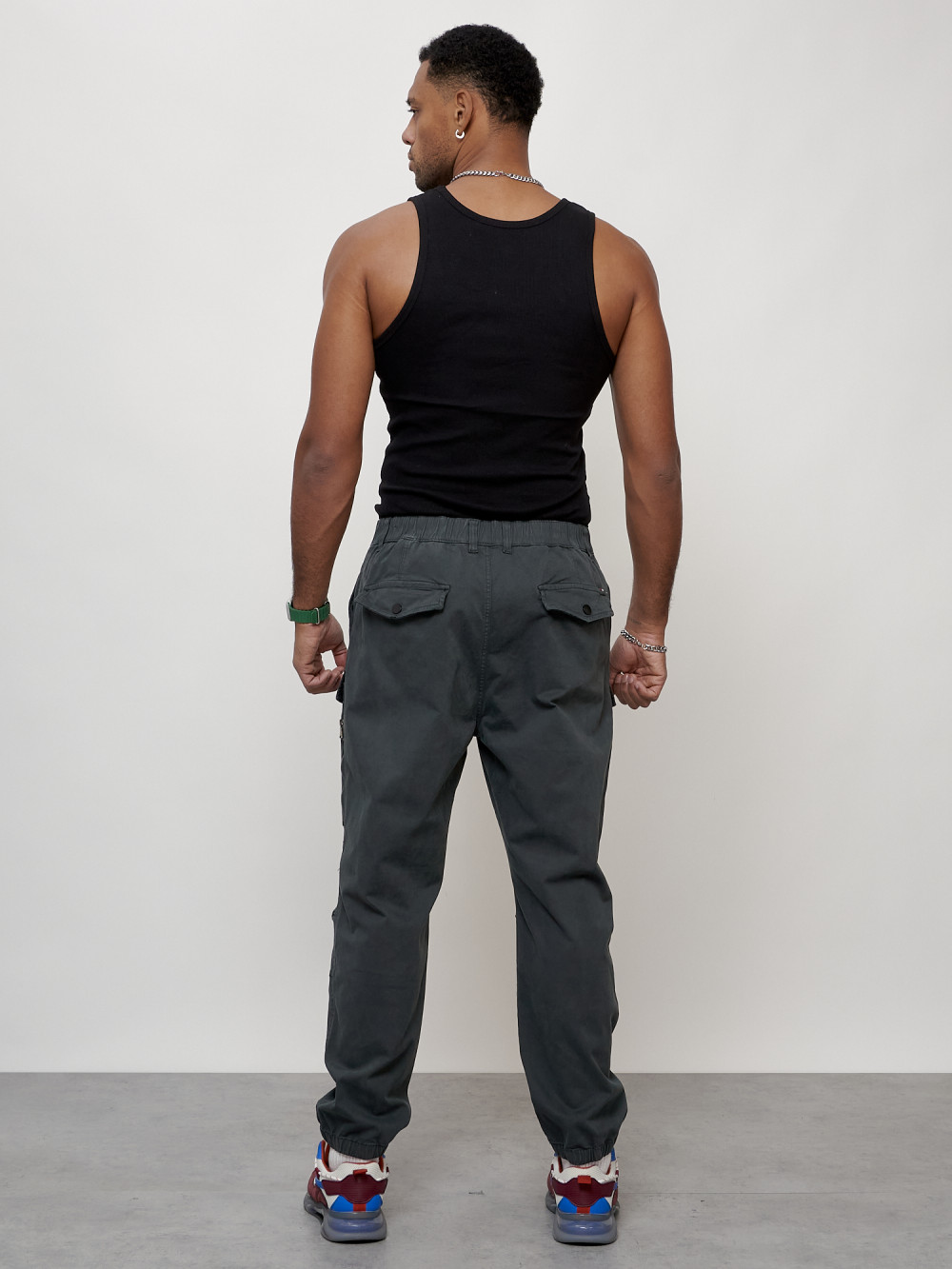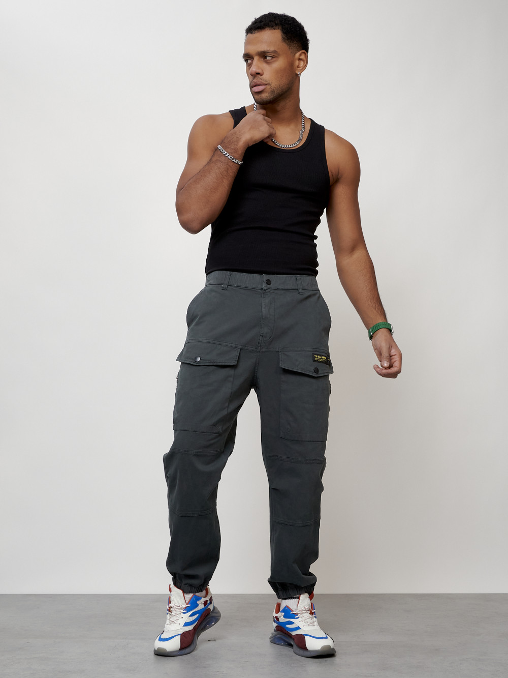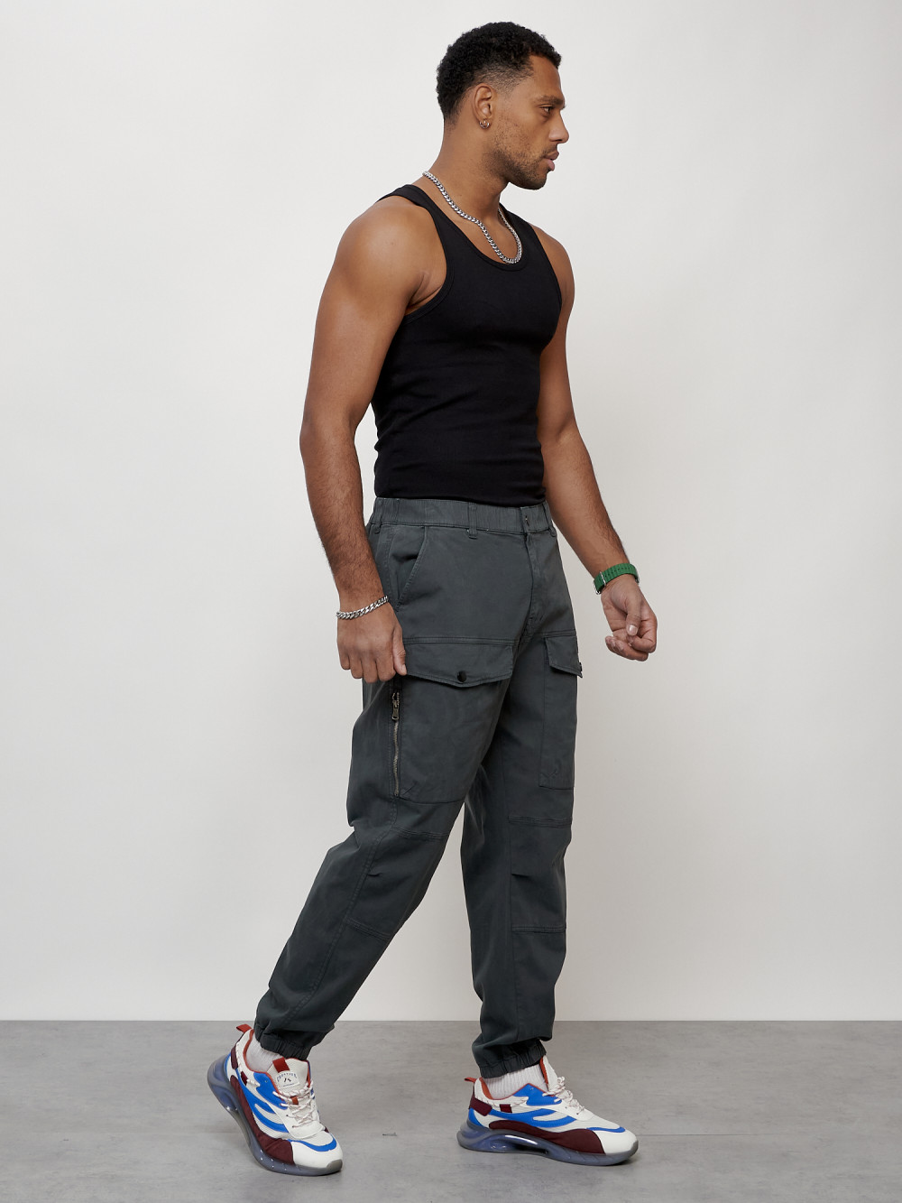Джинсы карго мужские с накладными карманами темно-серого цвета 2417TC