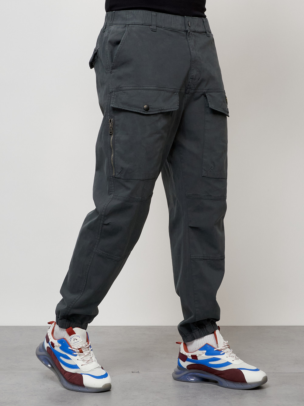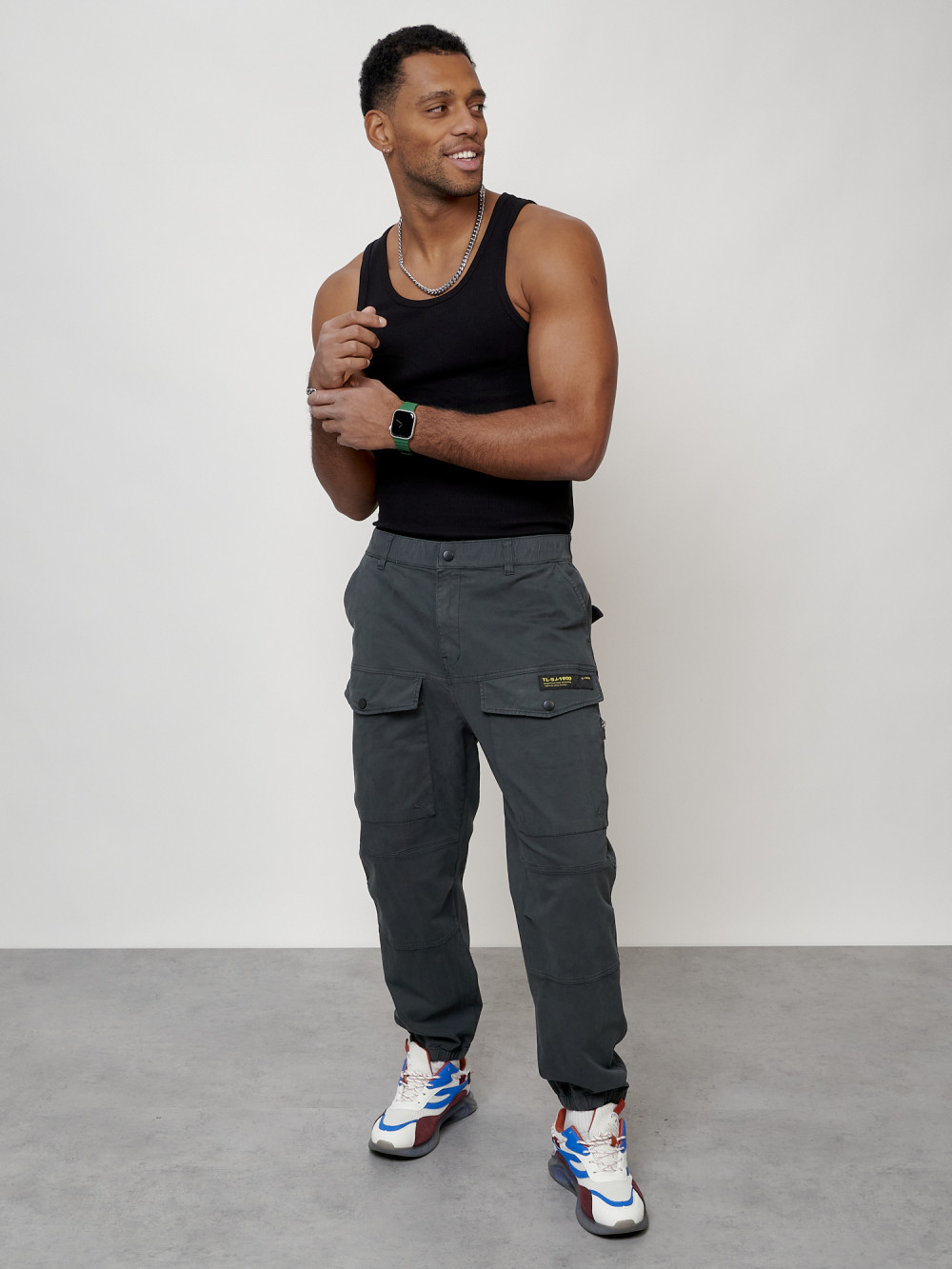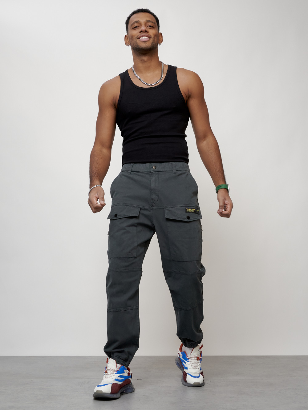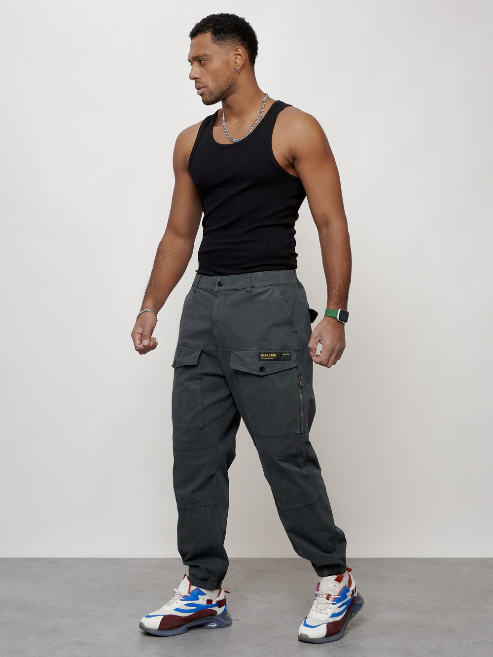 Джинсы карго мужские с накладными карманами темно-серого цвета 2417TC — Np