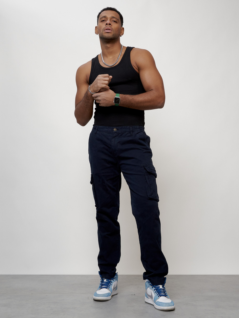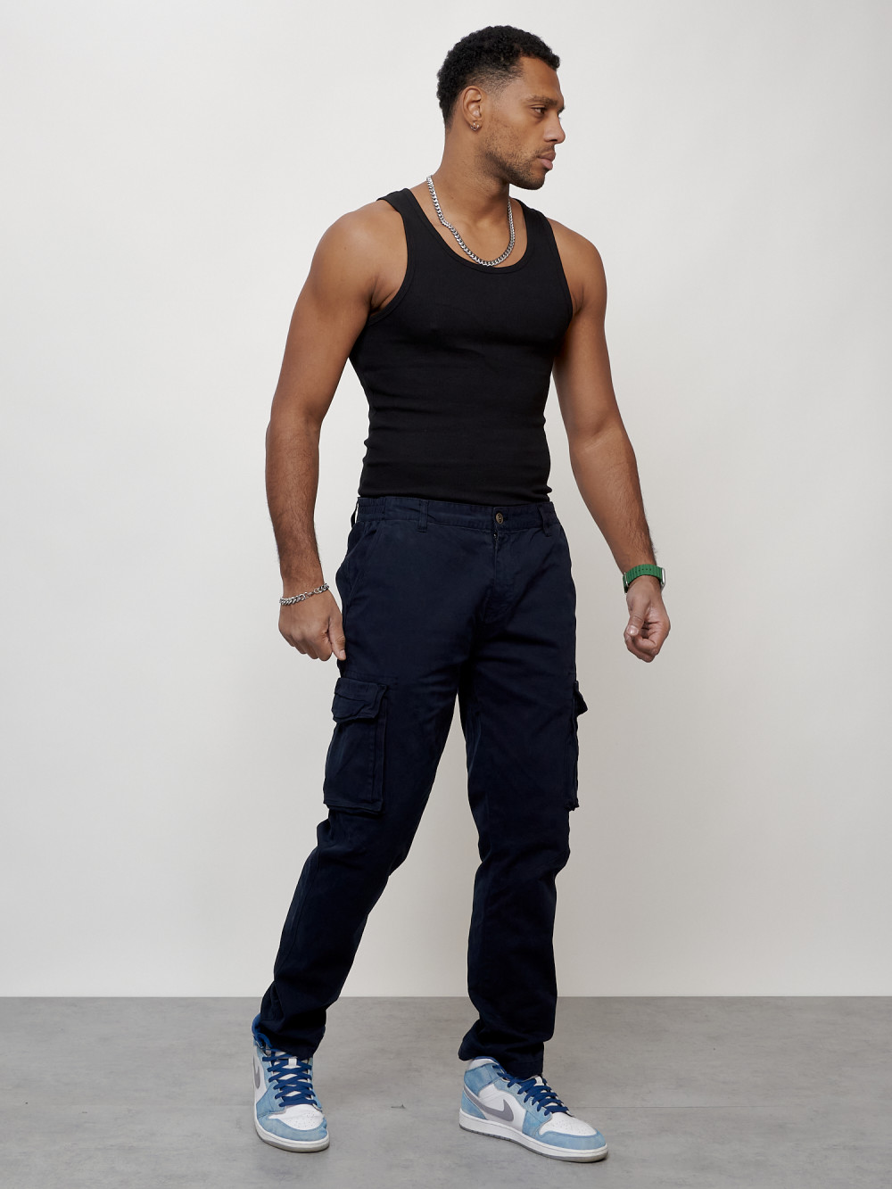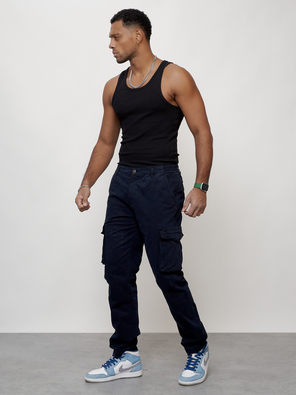 Джинсы карго мужские с накладными карманами темно-синего цвета 2404TS