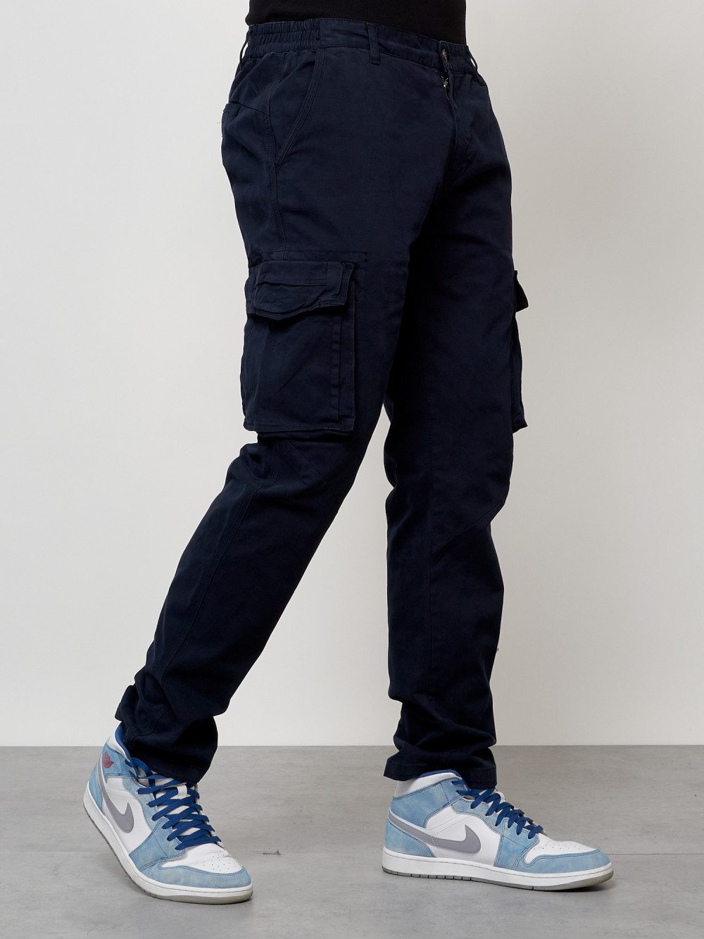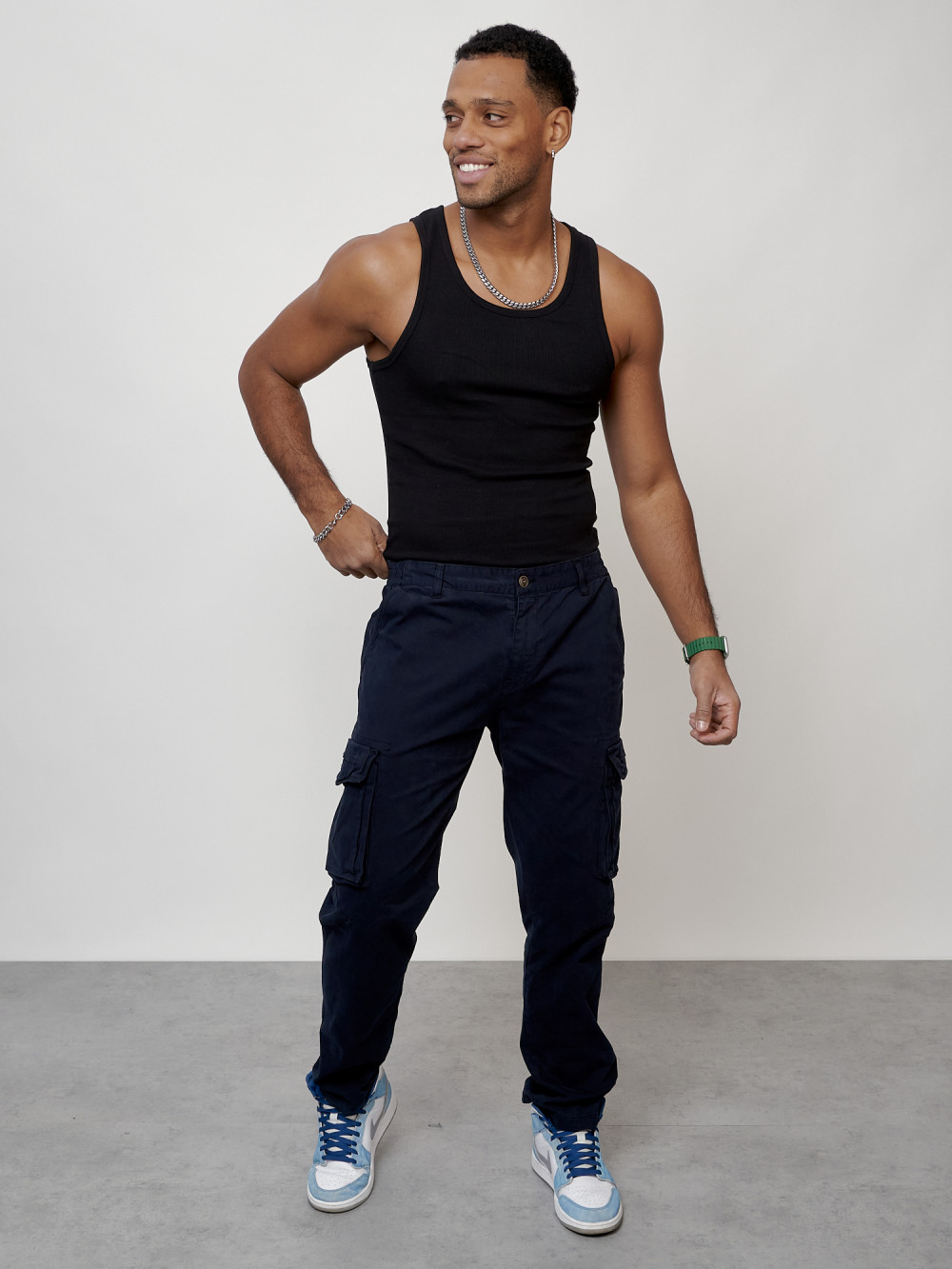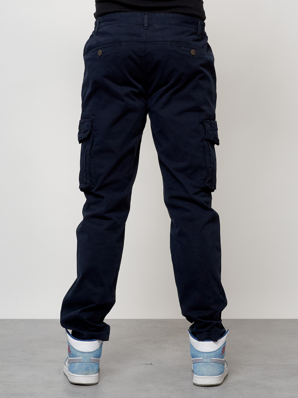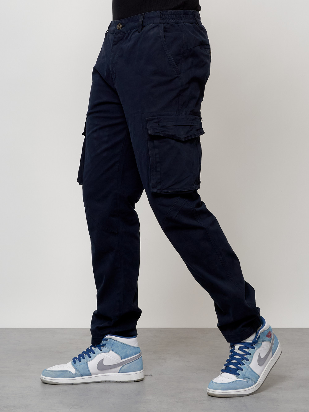 Джинсы карго мужские с накладными карманами темно-синего цвета 2404TS