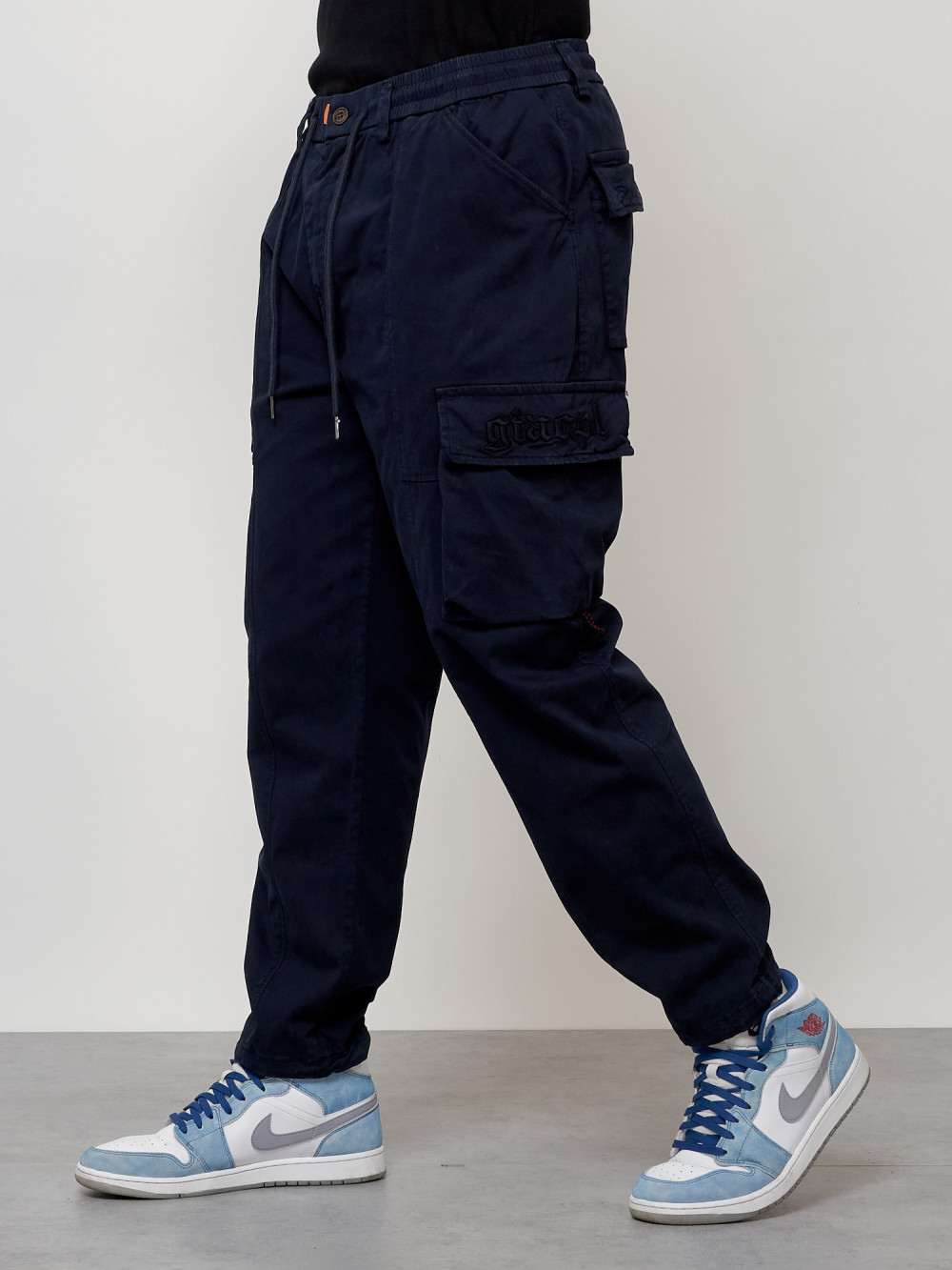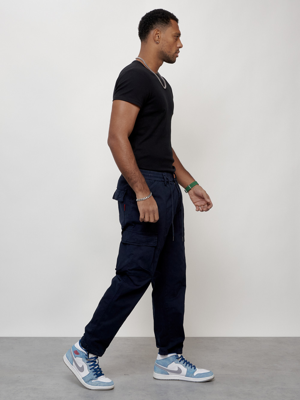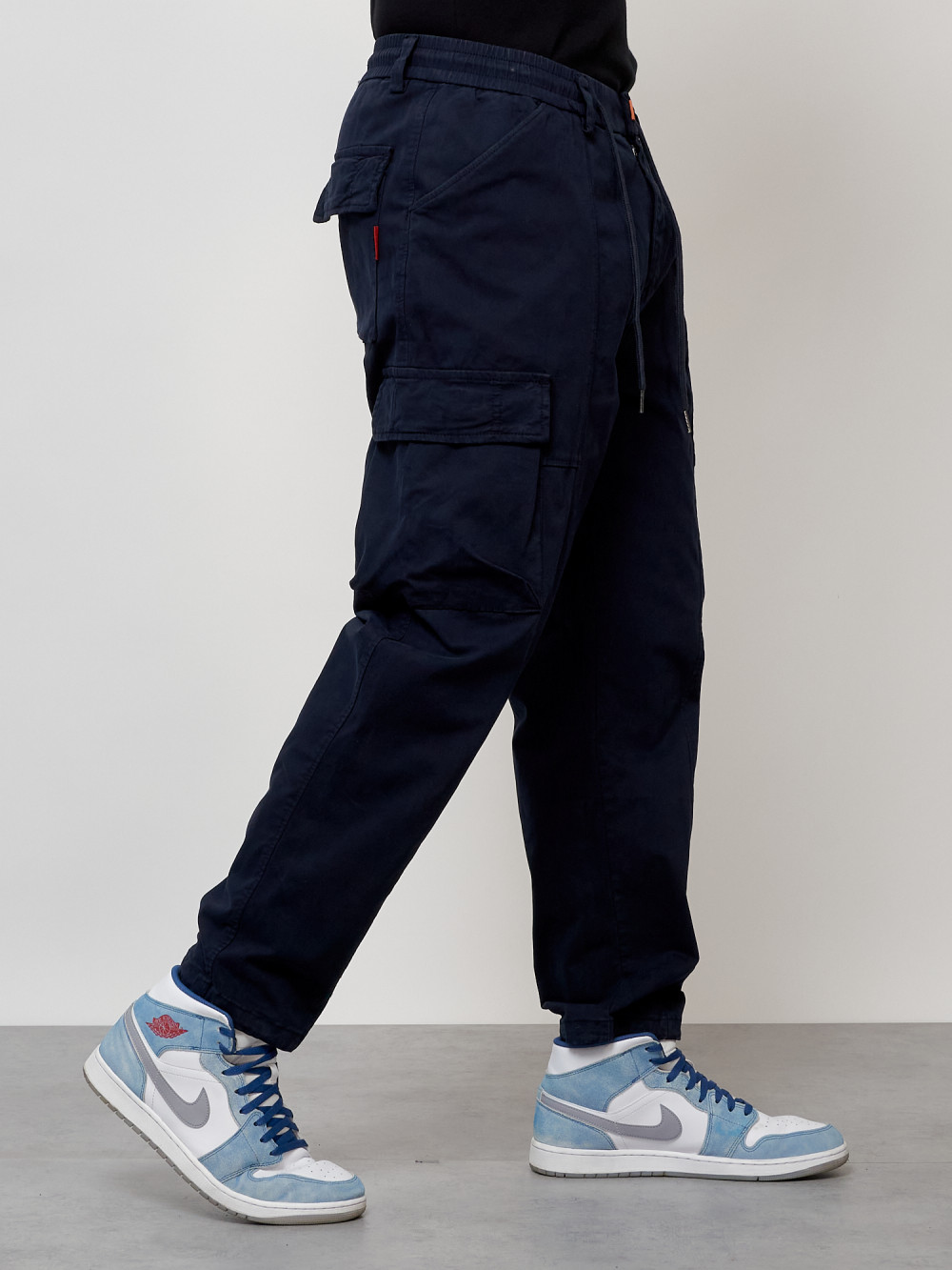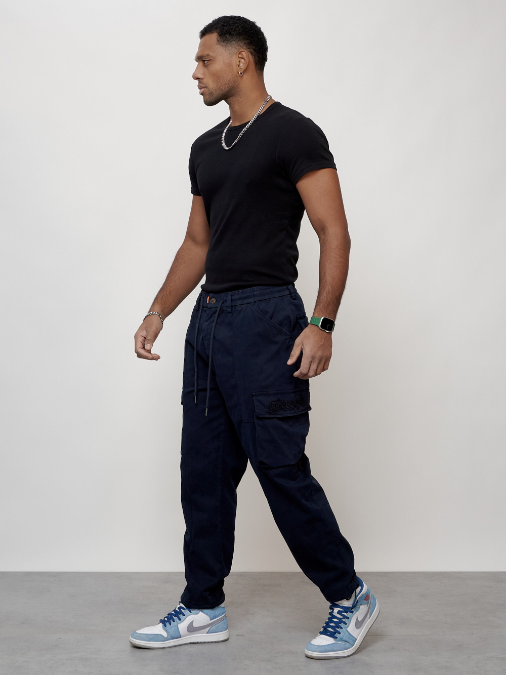 Джинсы карго мужские с накладными карманами темно-синего цвета 2418TS — Np