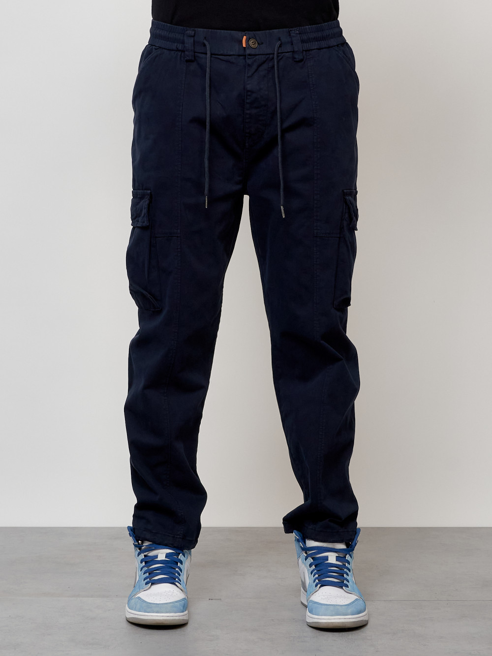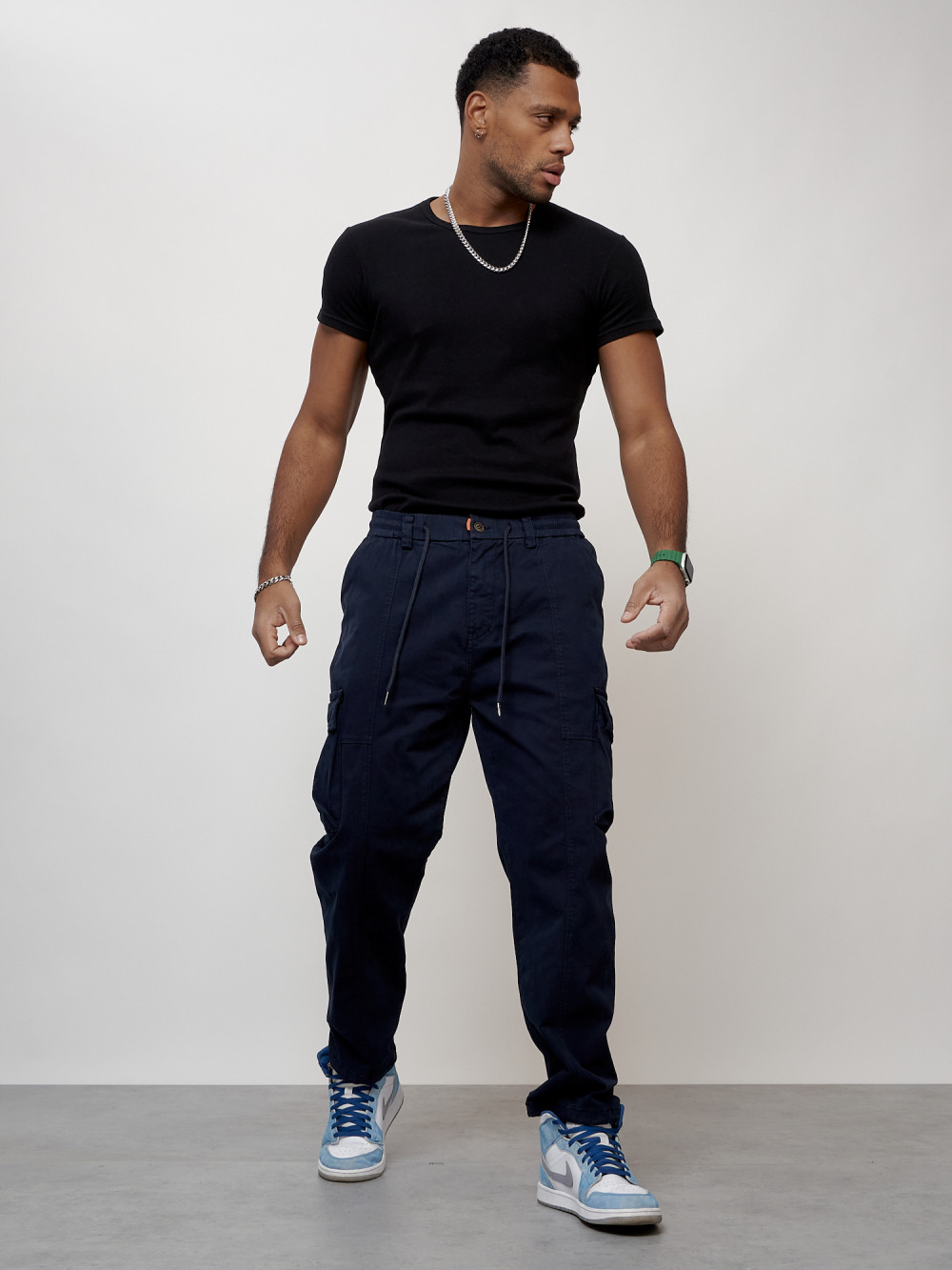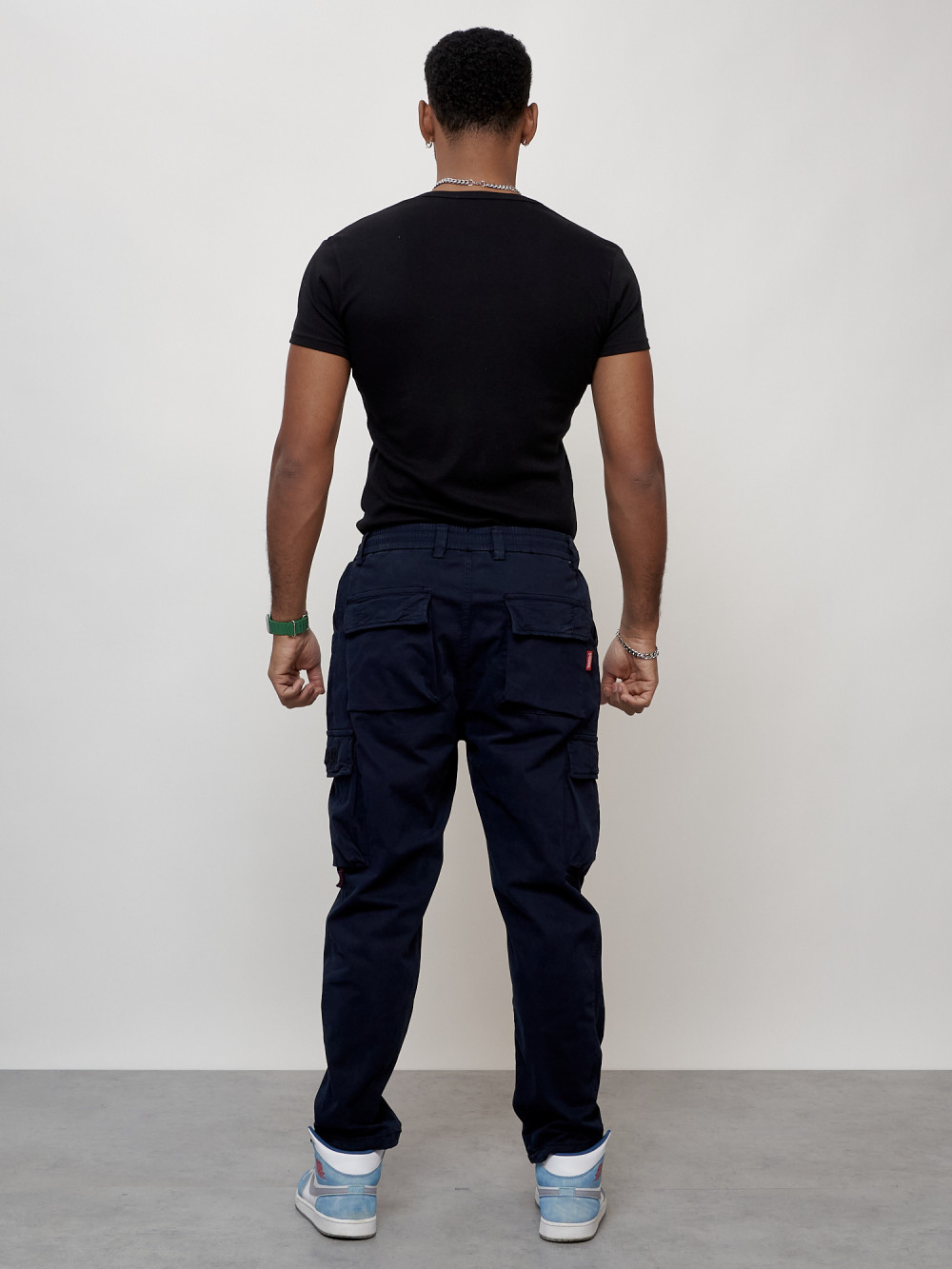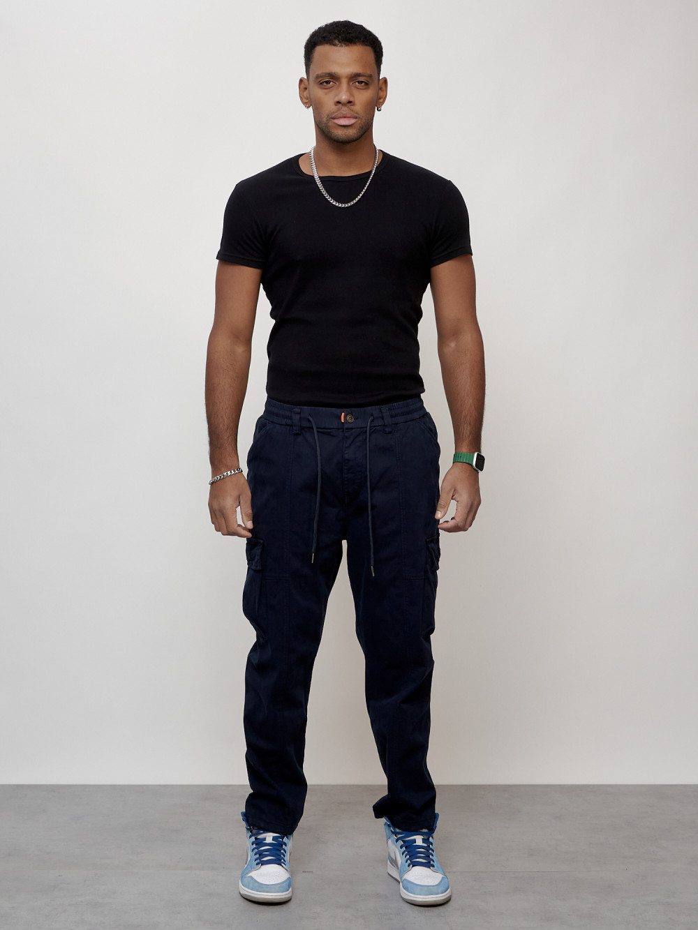 Джинсы карго мужские с накладными карманами темно-синего цвета 2418TS — Np