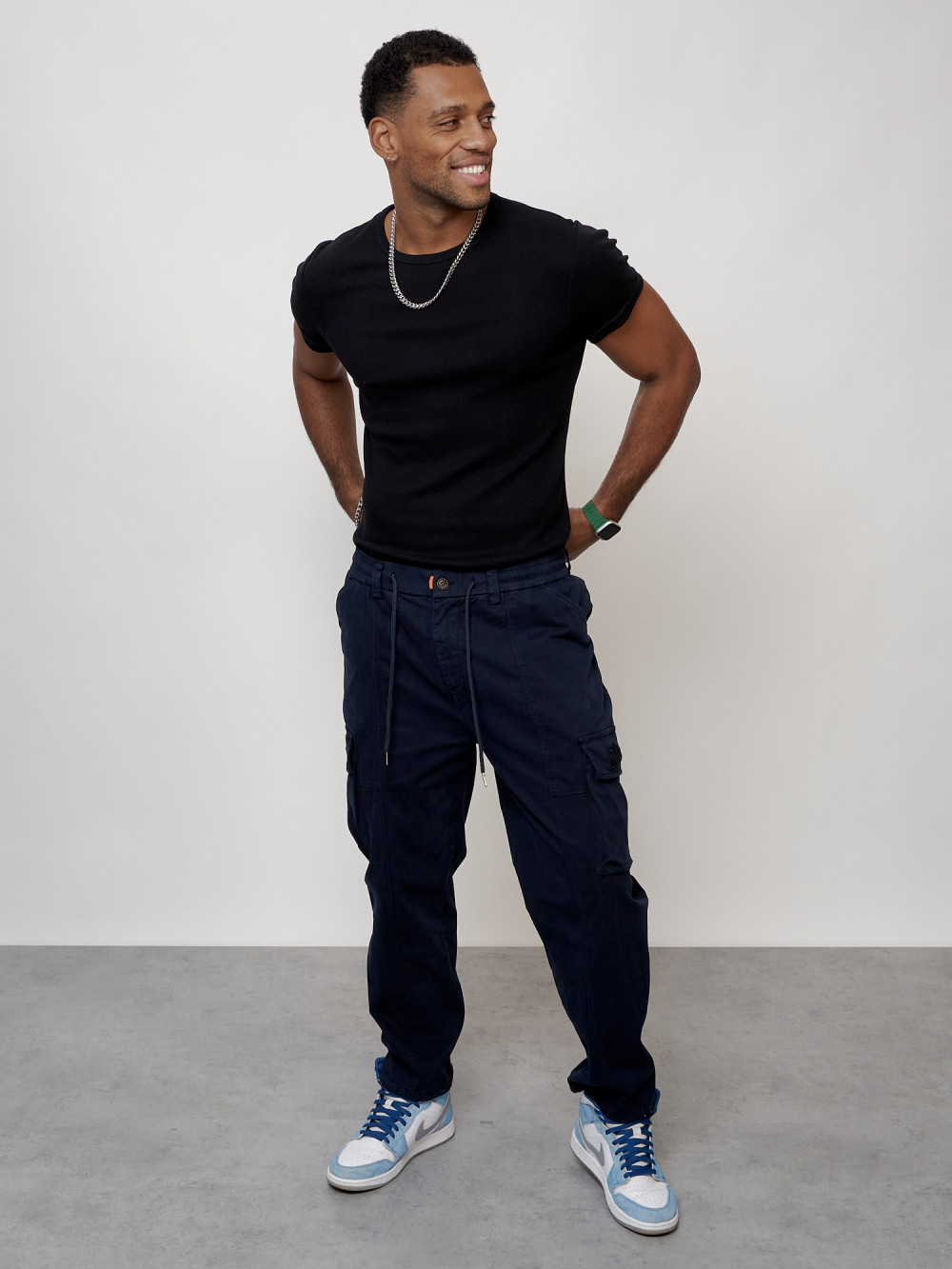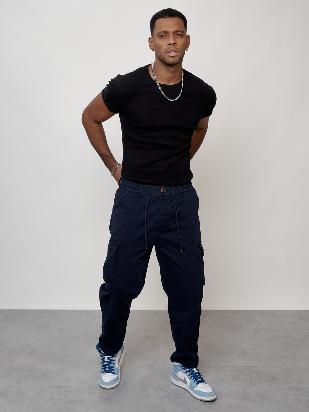 Джинсы карго мужские с накладными карманами темно-синего цвета 2418TS
