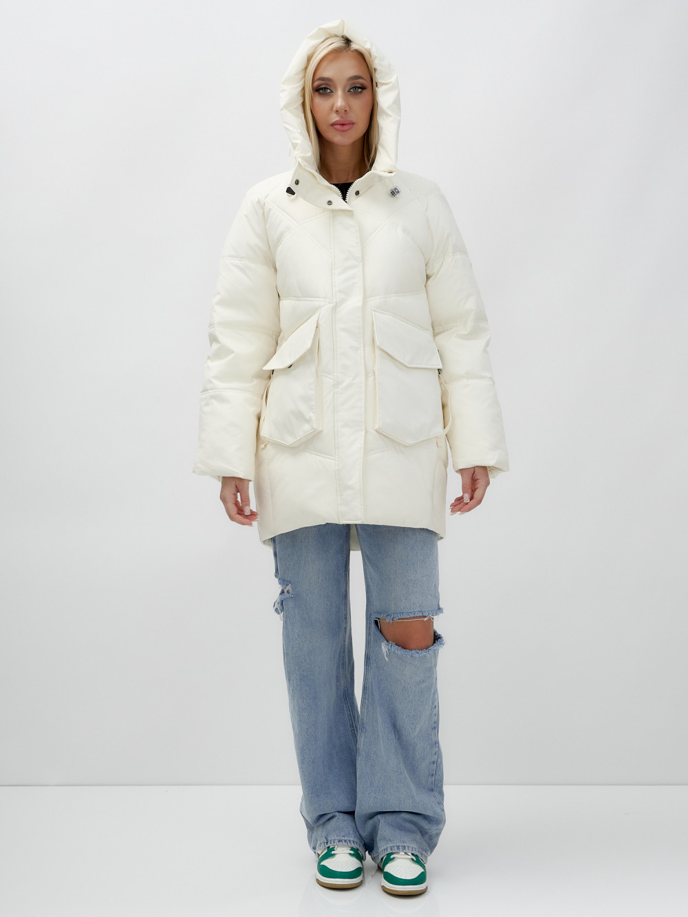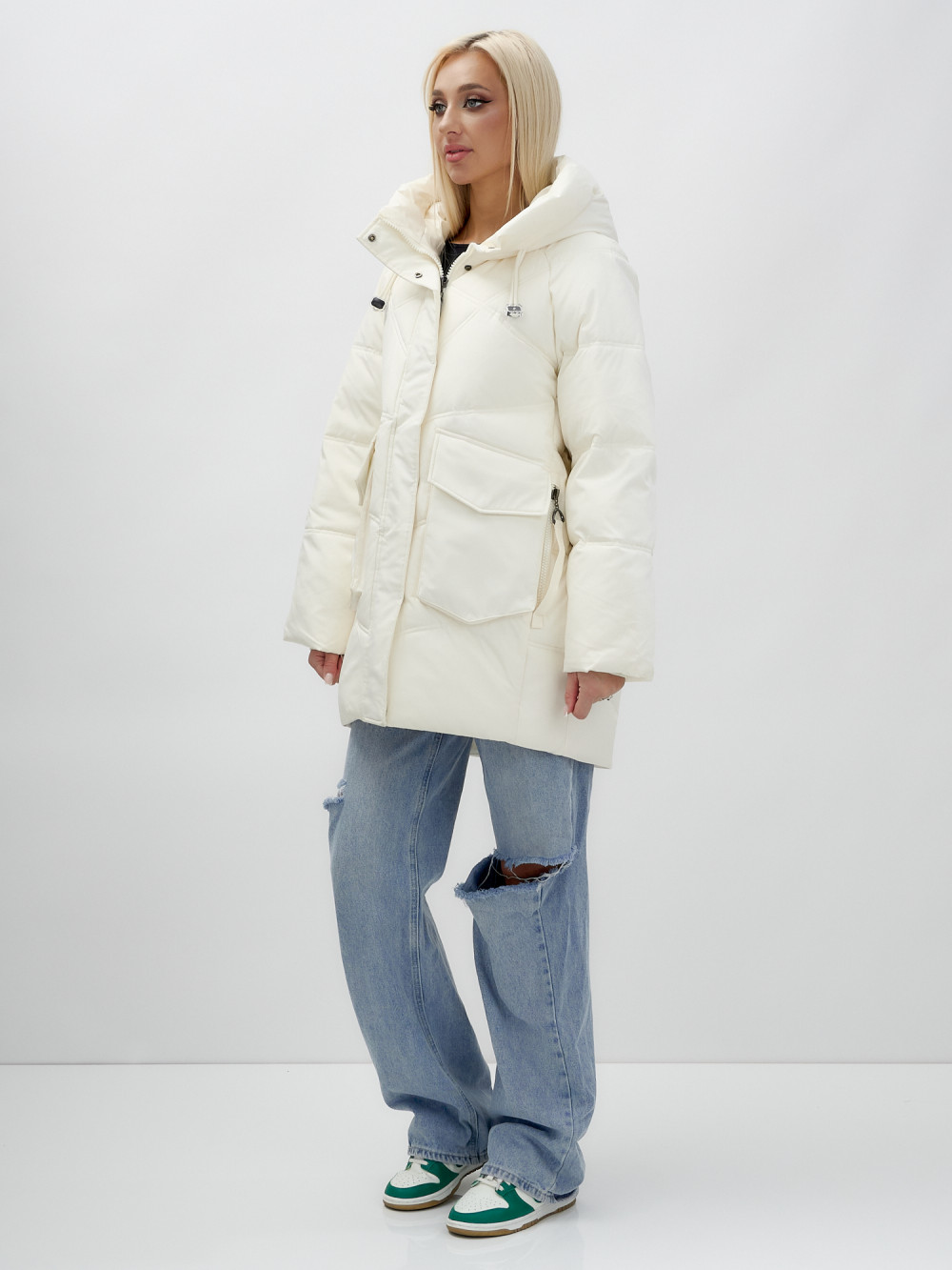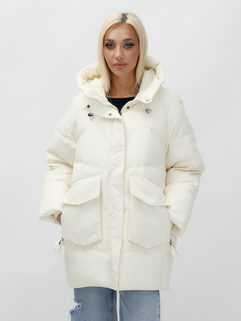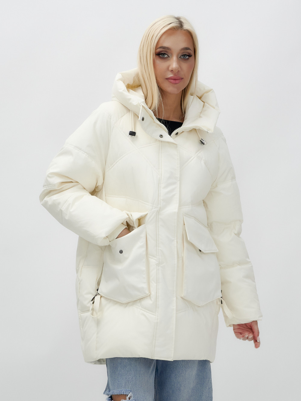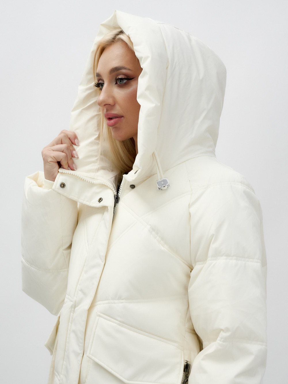 Куртка летучая мышь женская с капюшоном зимняя бежевого цвета 9617B — MTFORCE