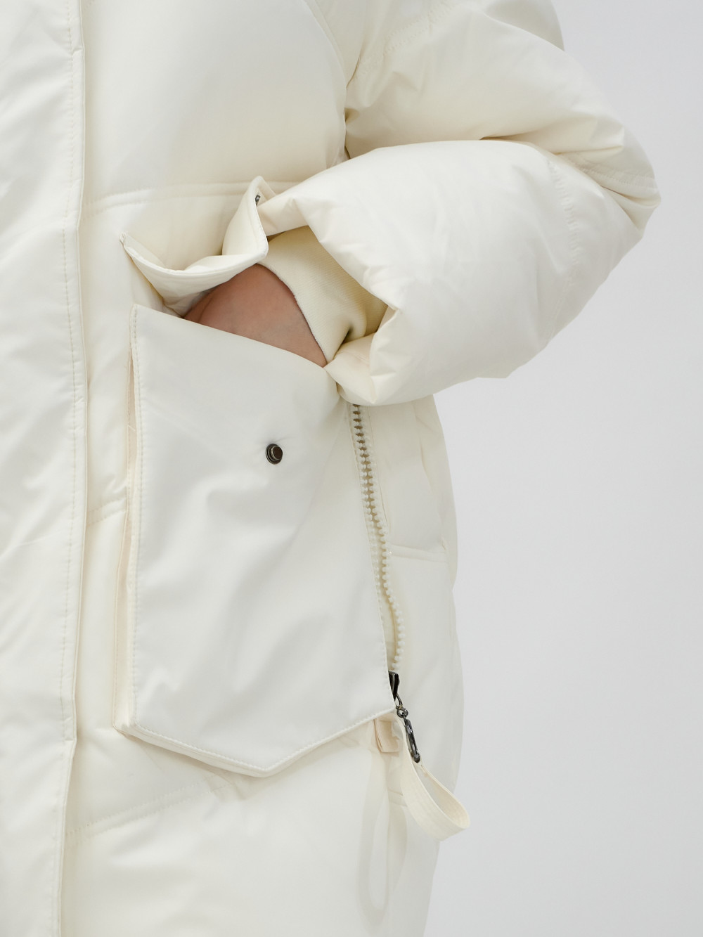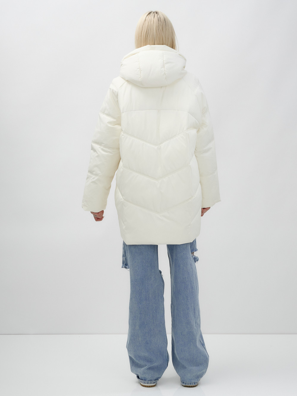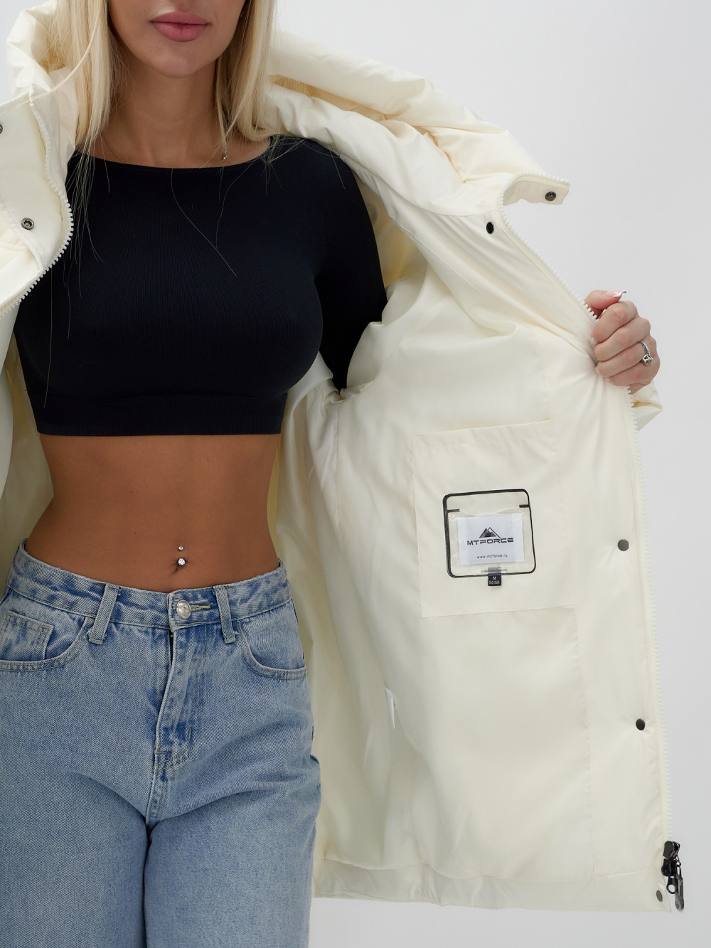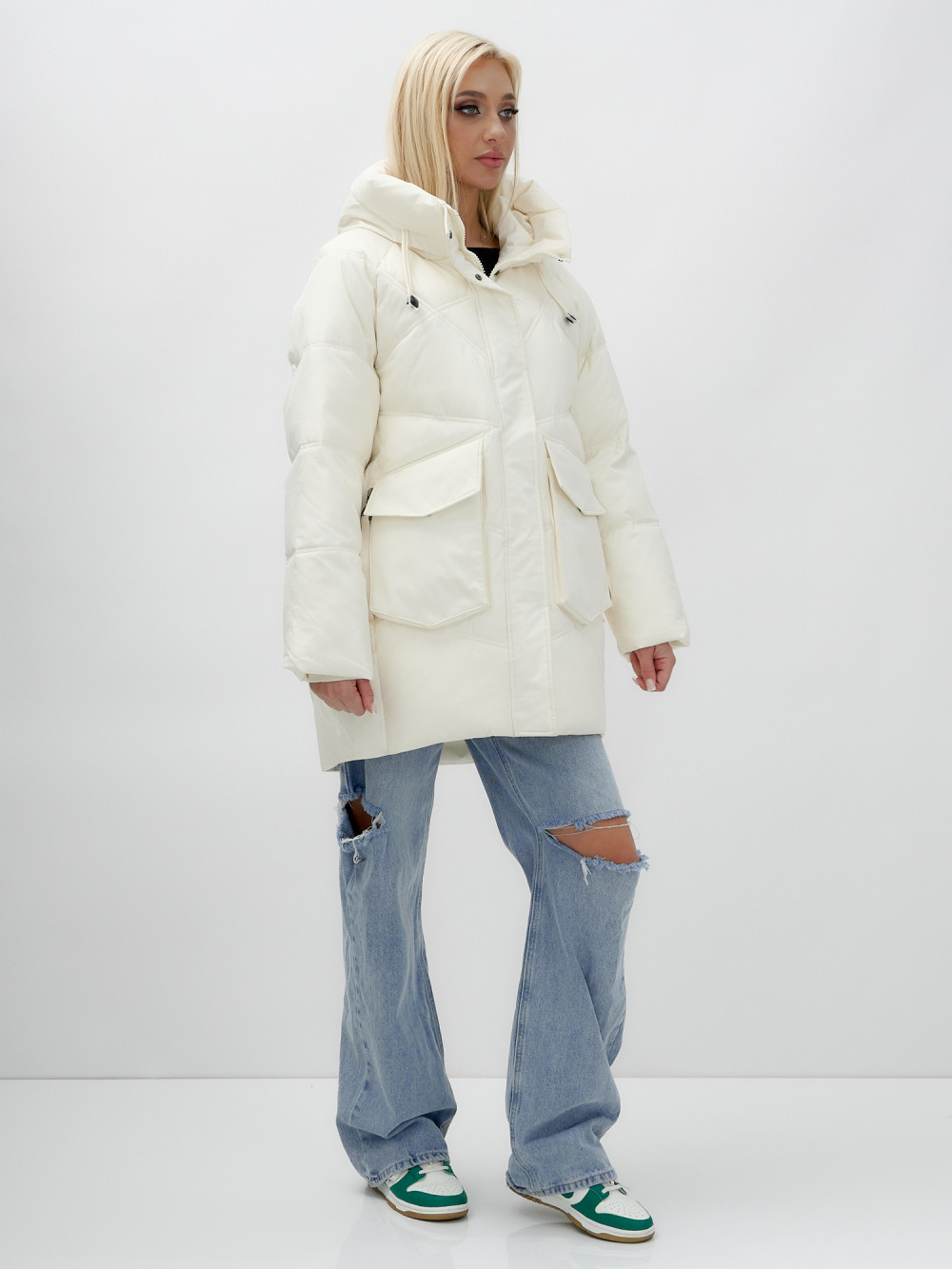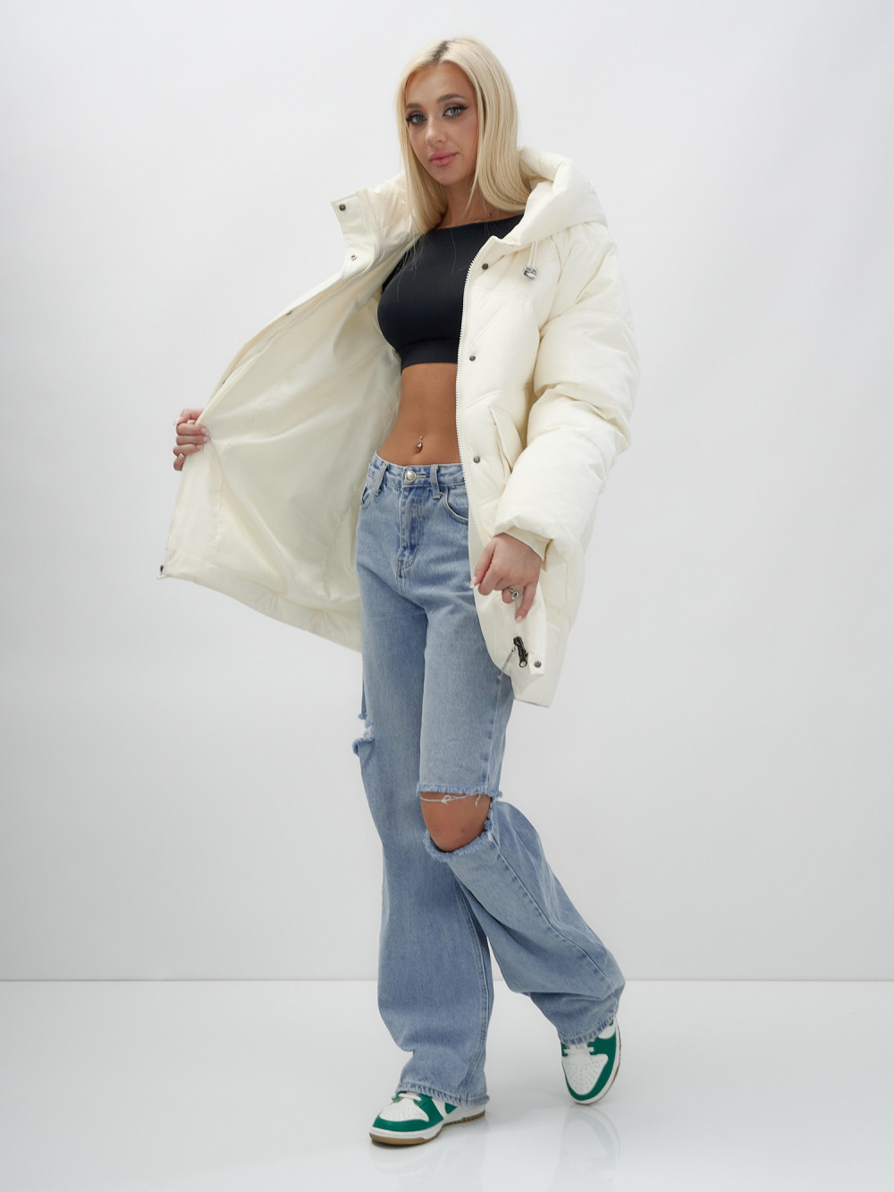 Куртка летучая мышь женская с капюшоном зимняя бежевого цвета 9617B — MTFORCE