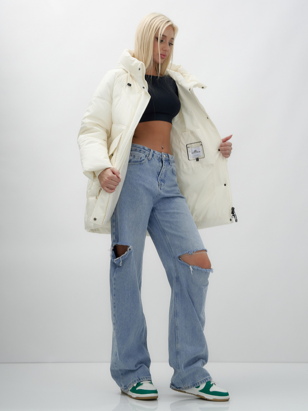 — Двойной замок: Удобный механизм застегивания позволяет легко регулировать объем куртки, обеспечивая идеальную посадку и защиту от холода.