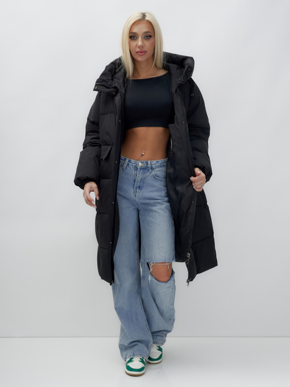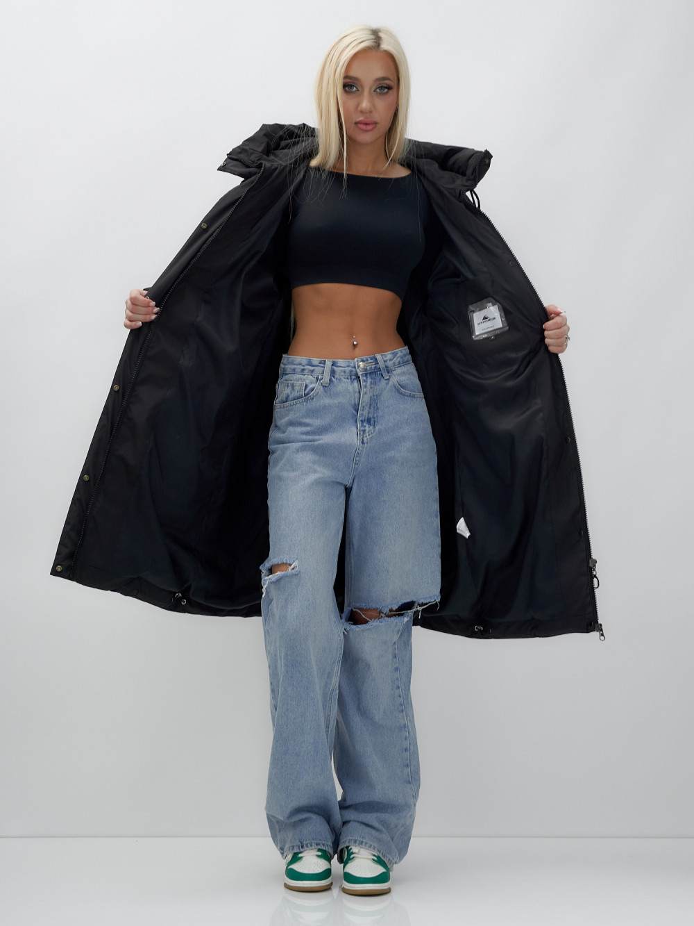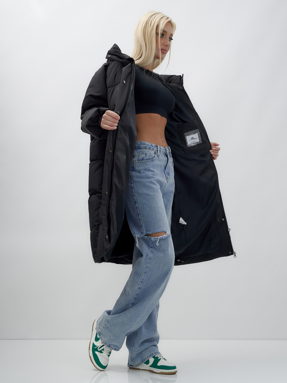 — Двойная молния: обеспечивает легкость застегивания и возможность регулировки объема, что делает пальто удобным в носке.