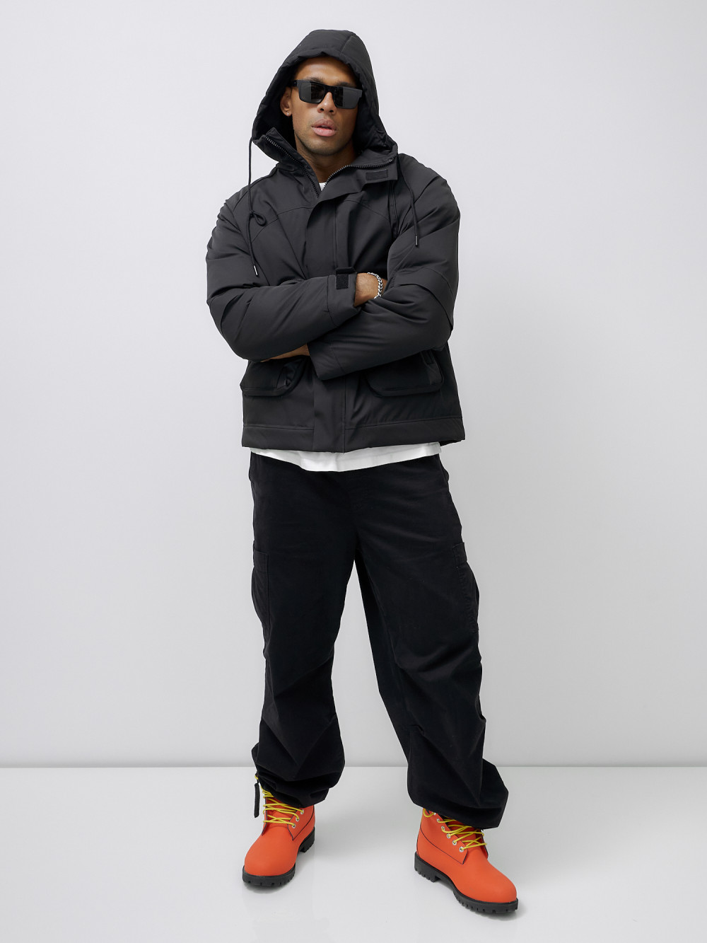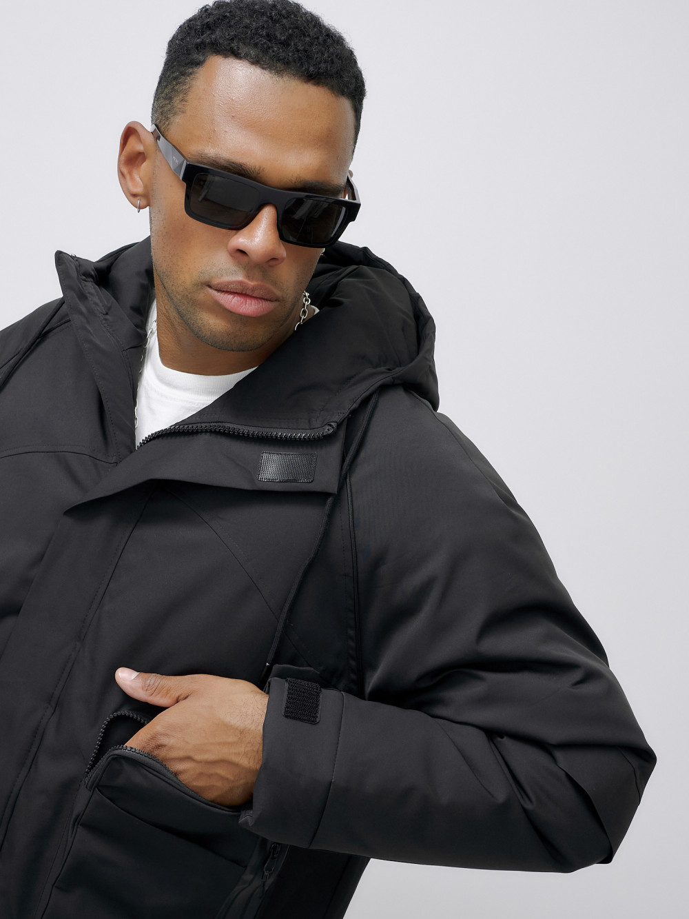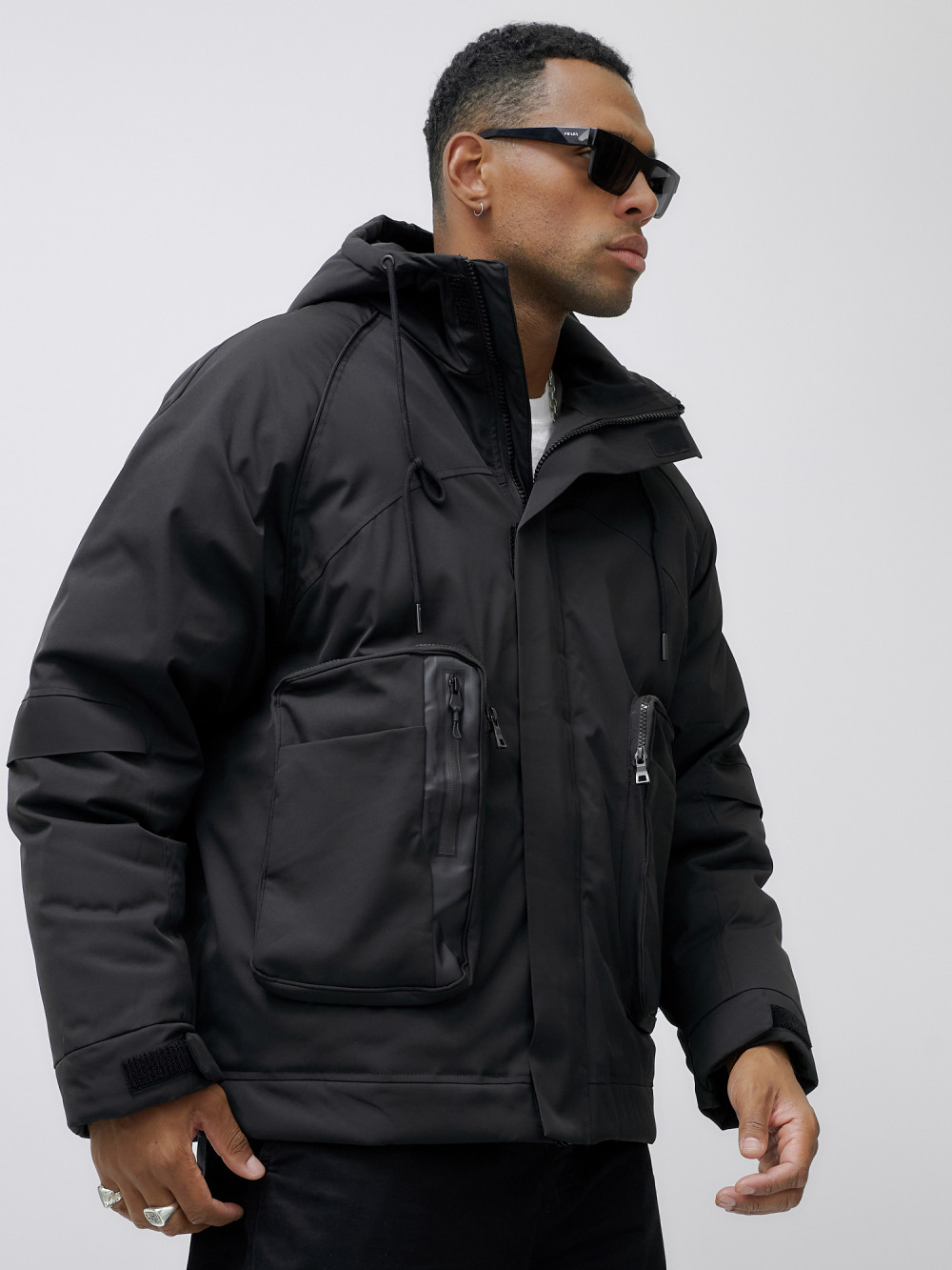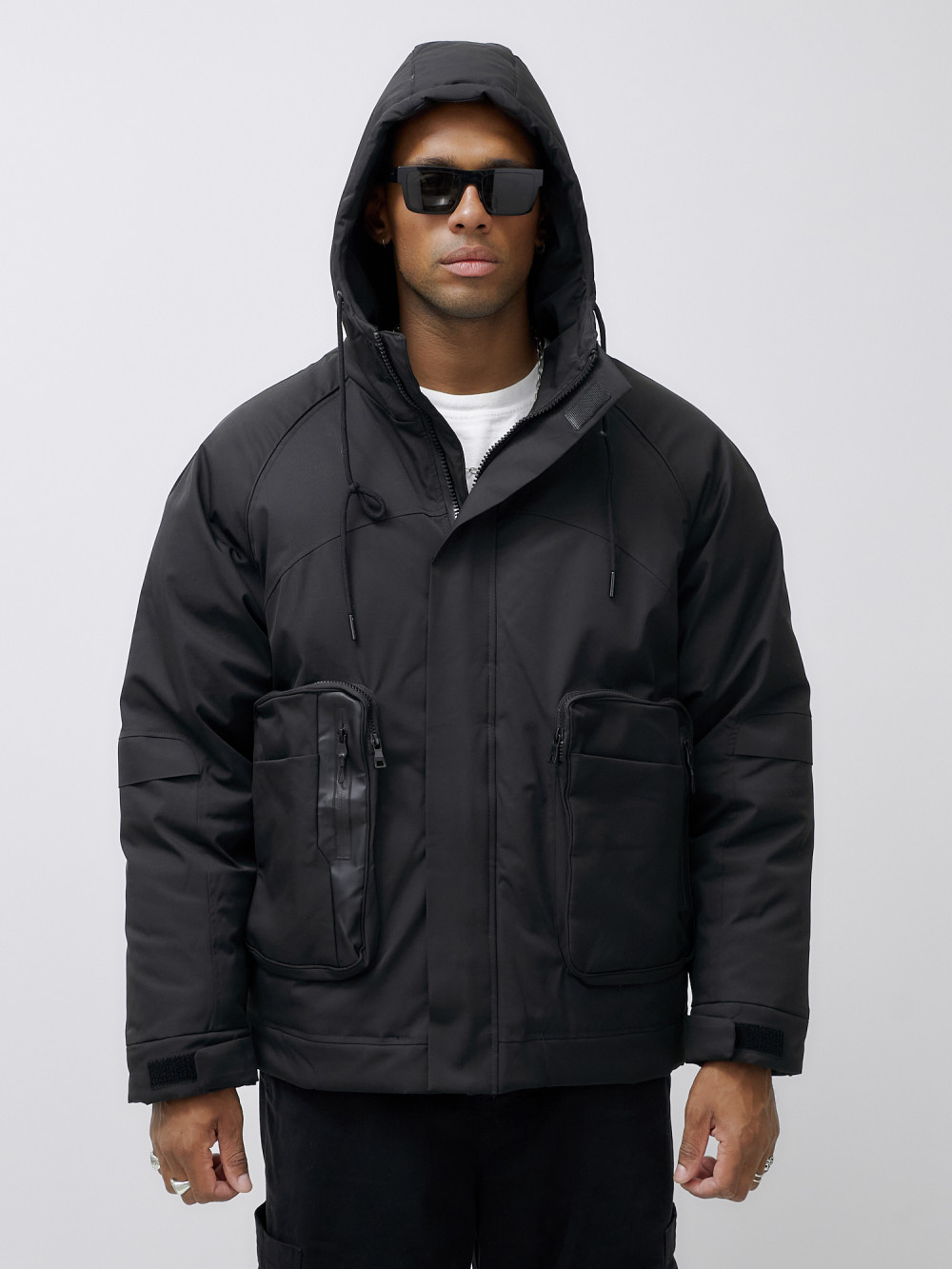Куртка молодежная мужская зимняя с капюшоном черного цвета 25313_1Ch — REDU