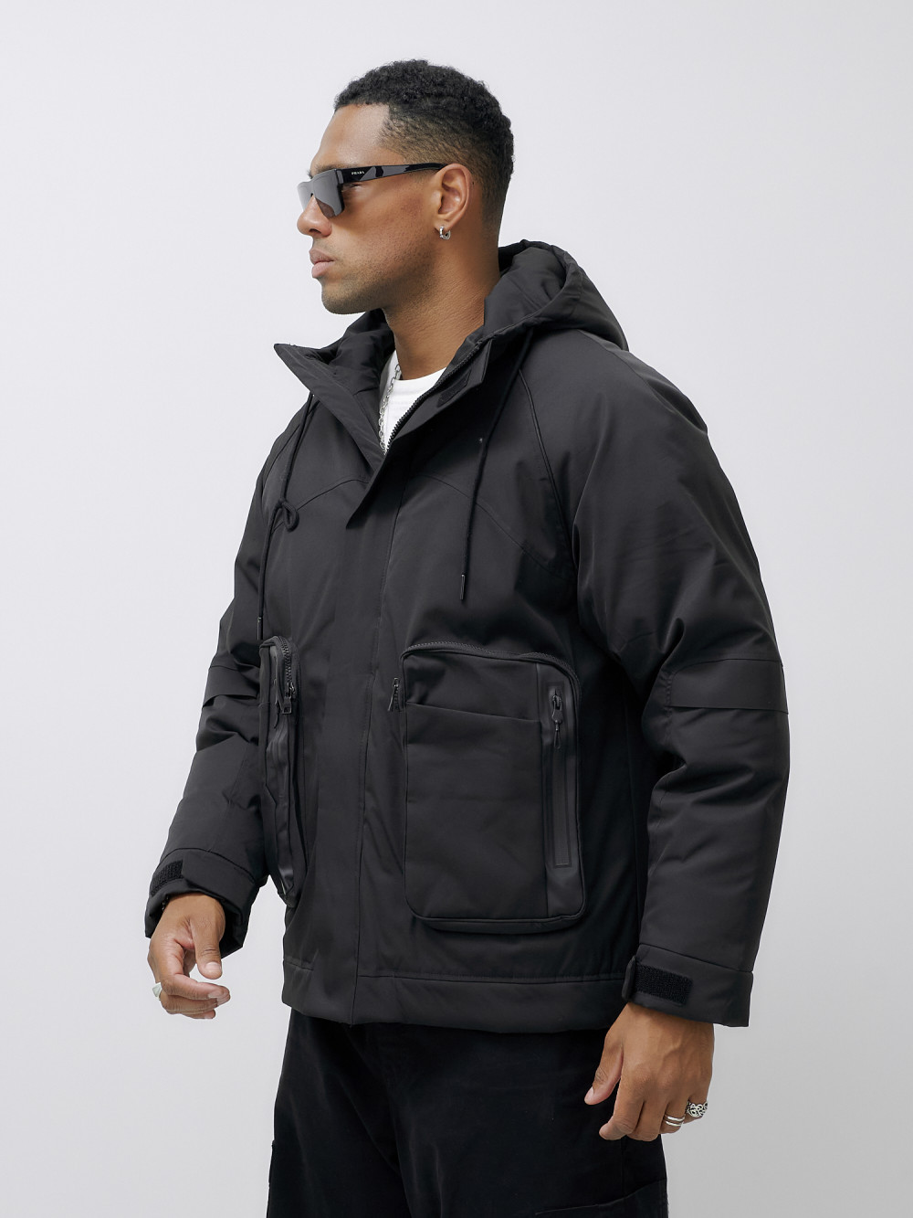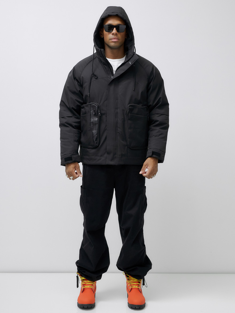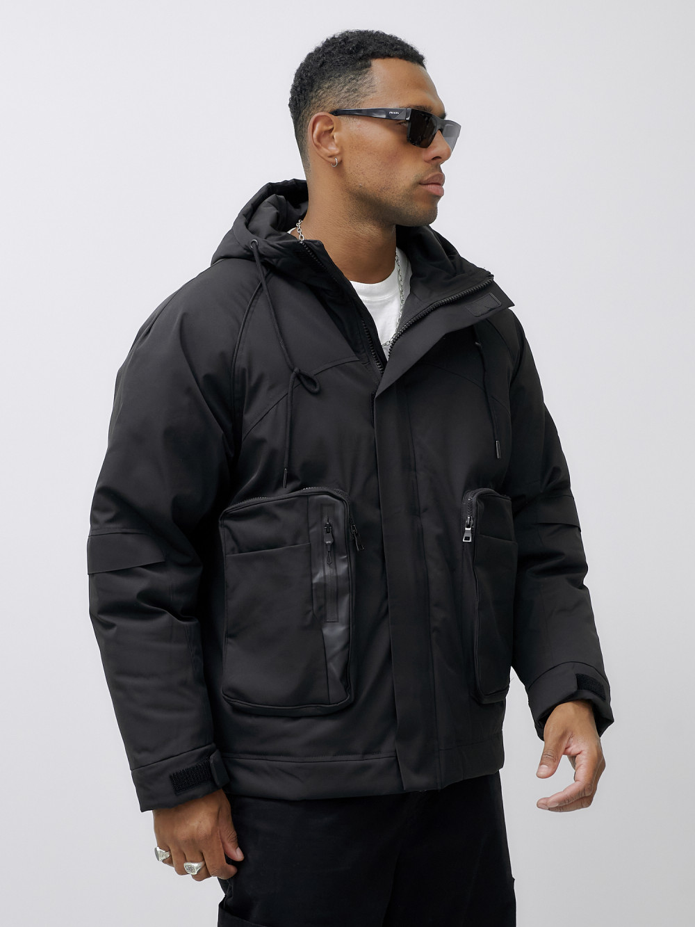 Куртка молодежная мужская зимняя с капюшоном черного цвета 25313_1Ch