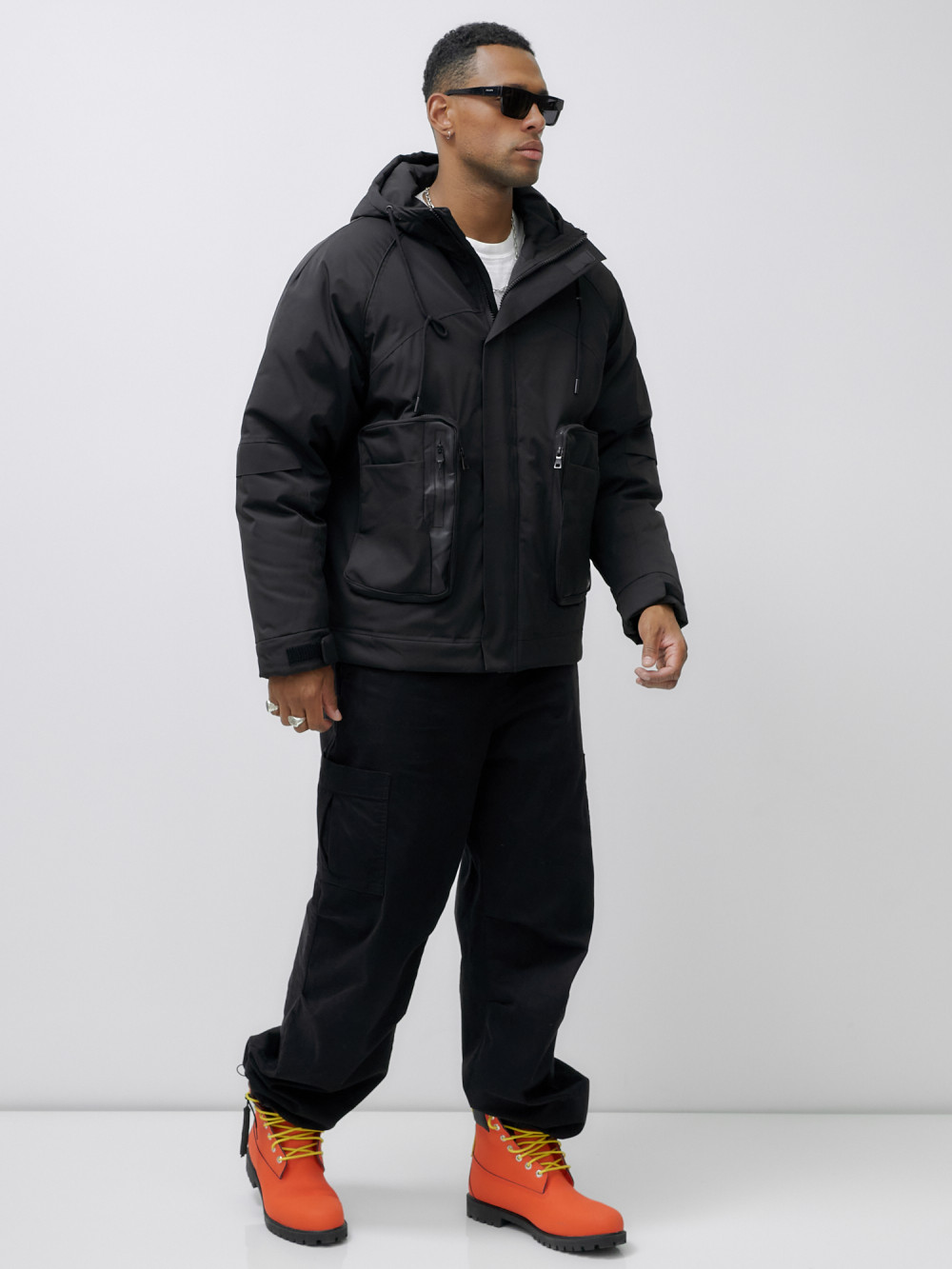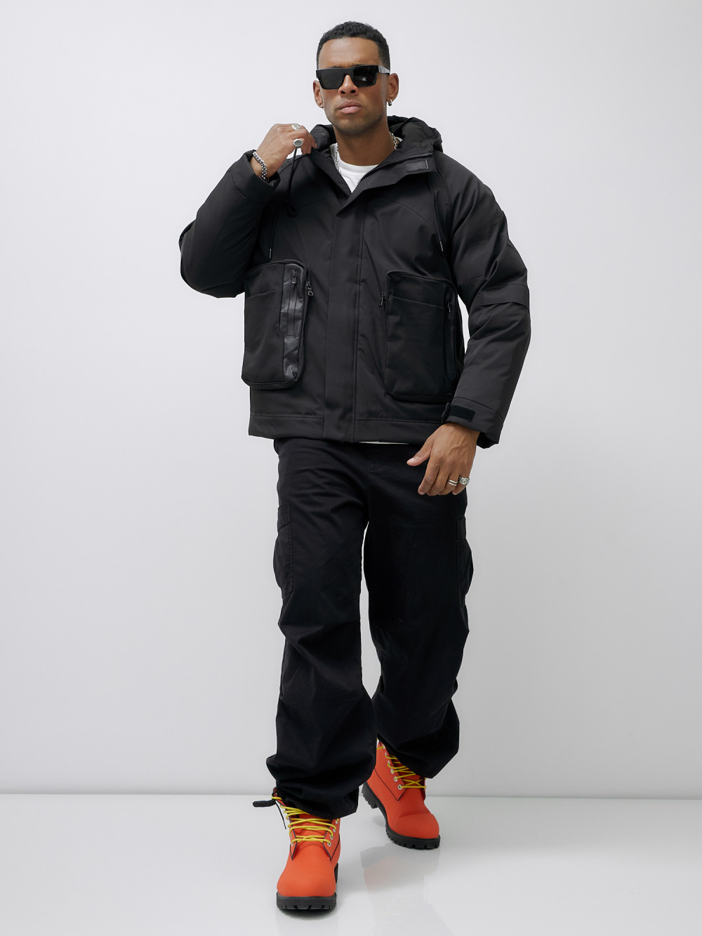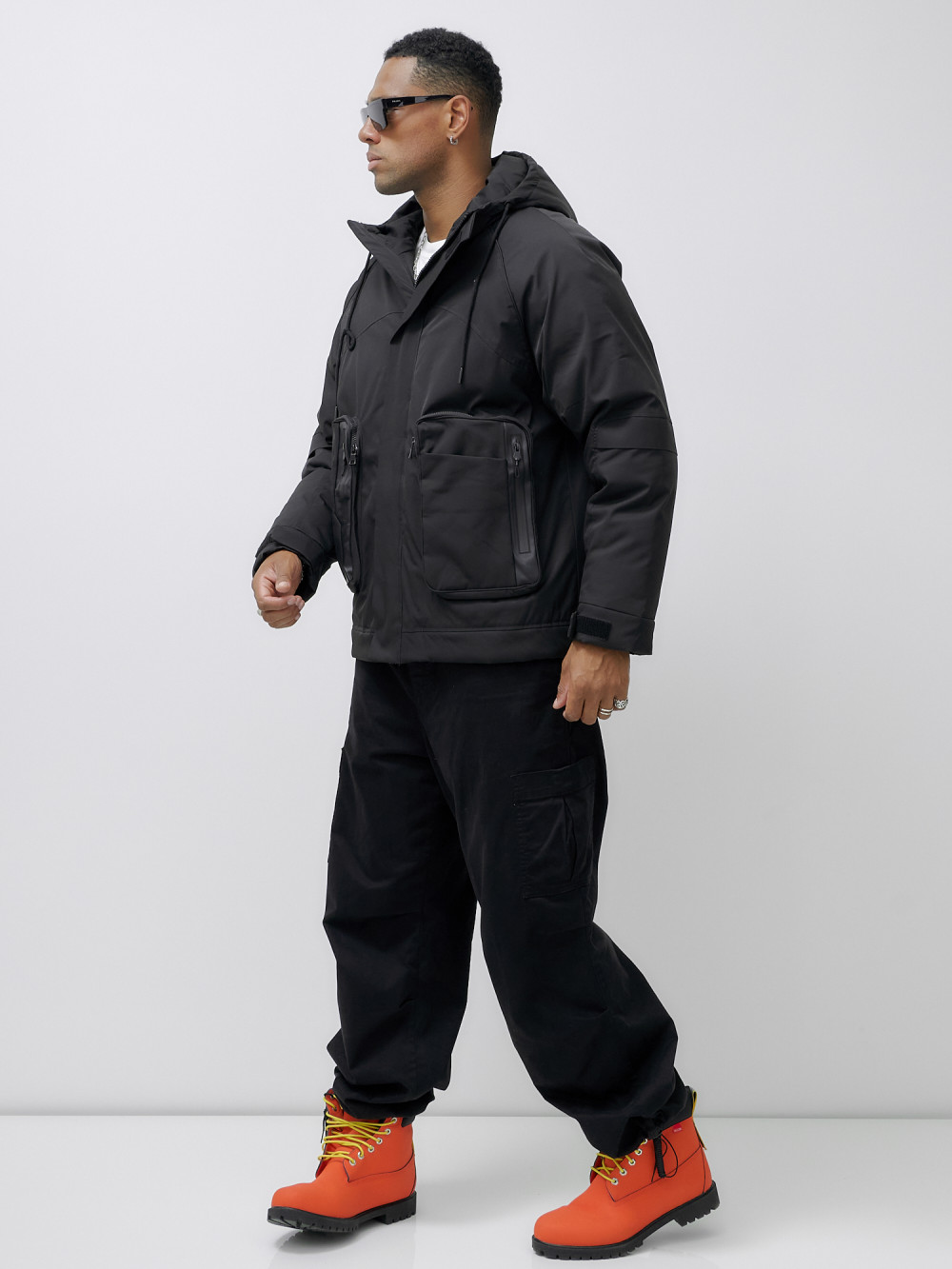 Куртка молодежная мужская зимняя с капюшоном черного цвета 25313_1Ch