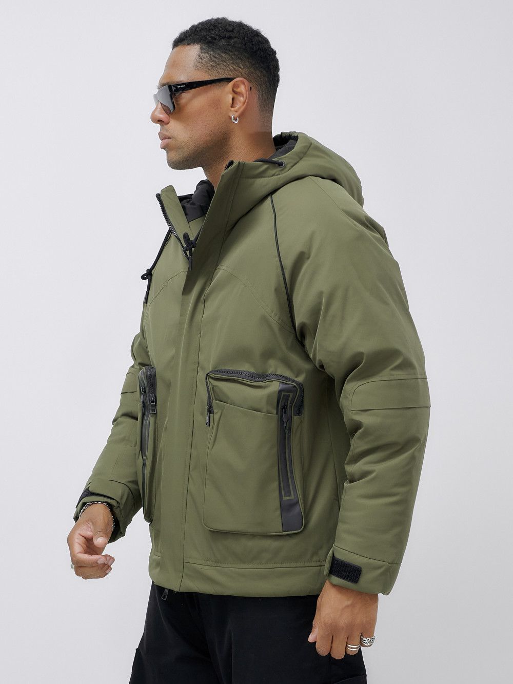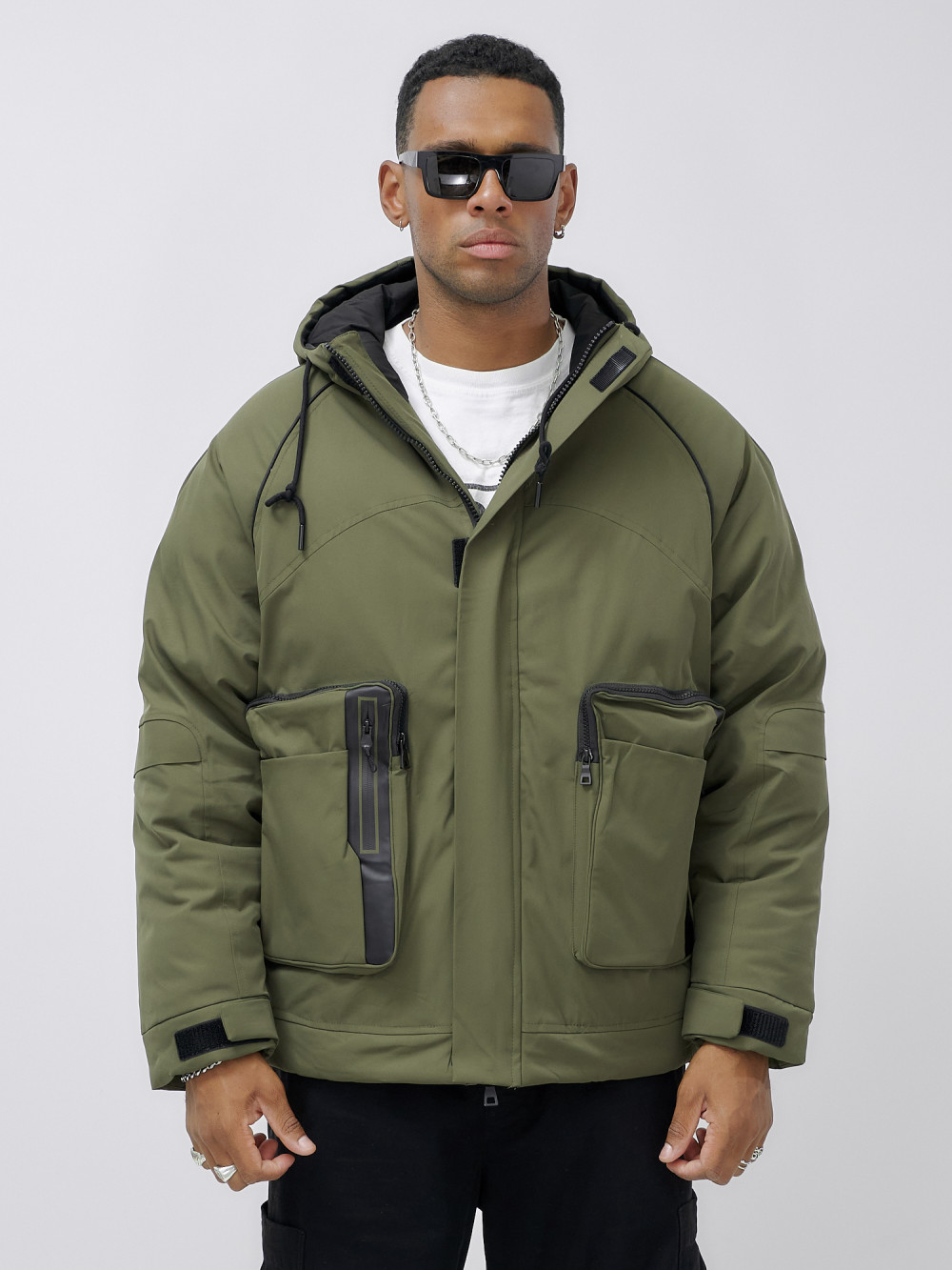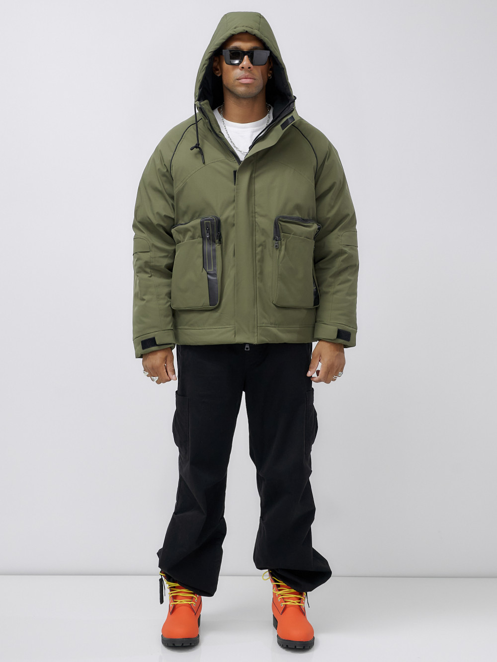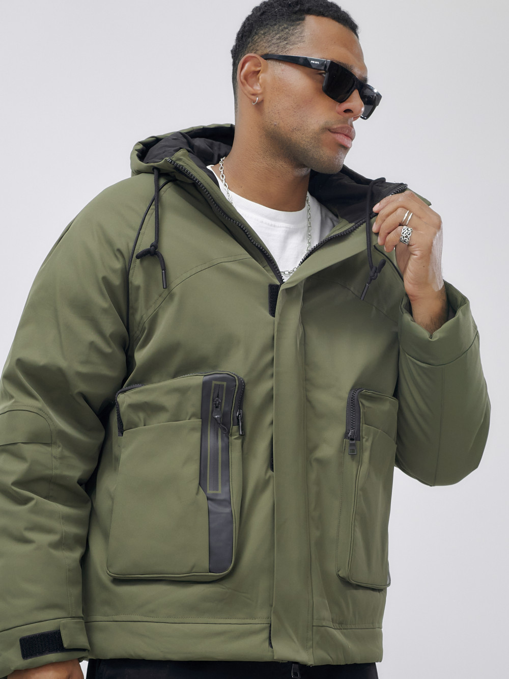 Куртка молодежная мужская зимняя с капюшоном цвета хаки 25313_1Kh — REDU