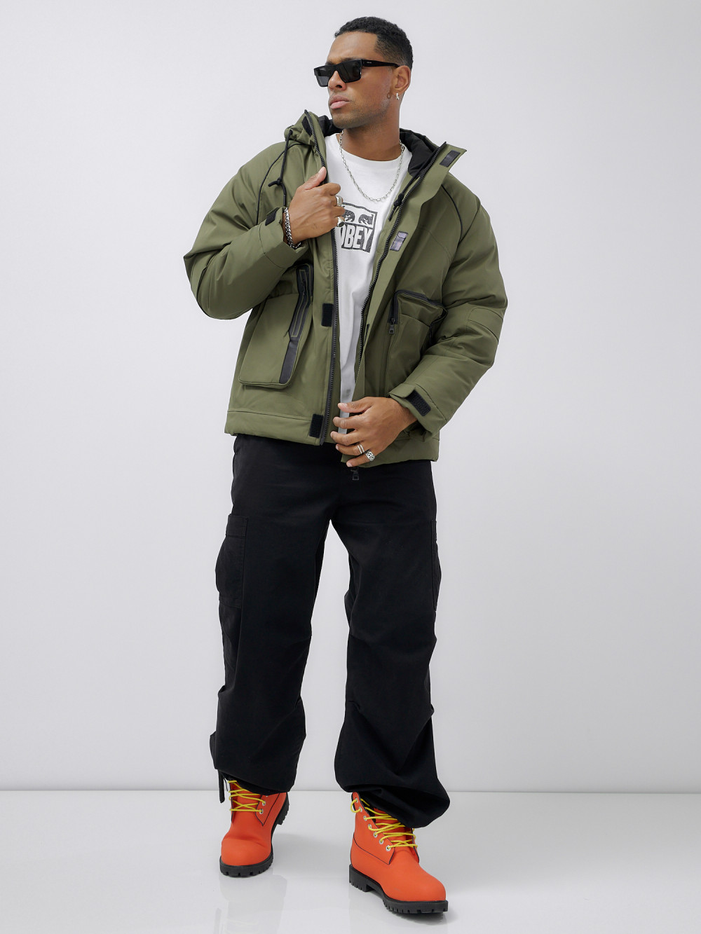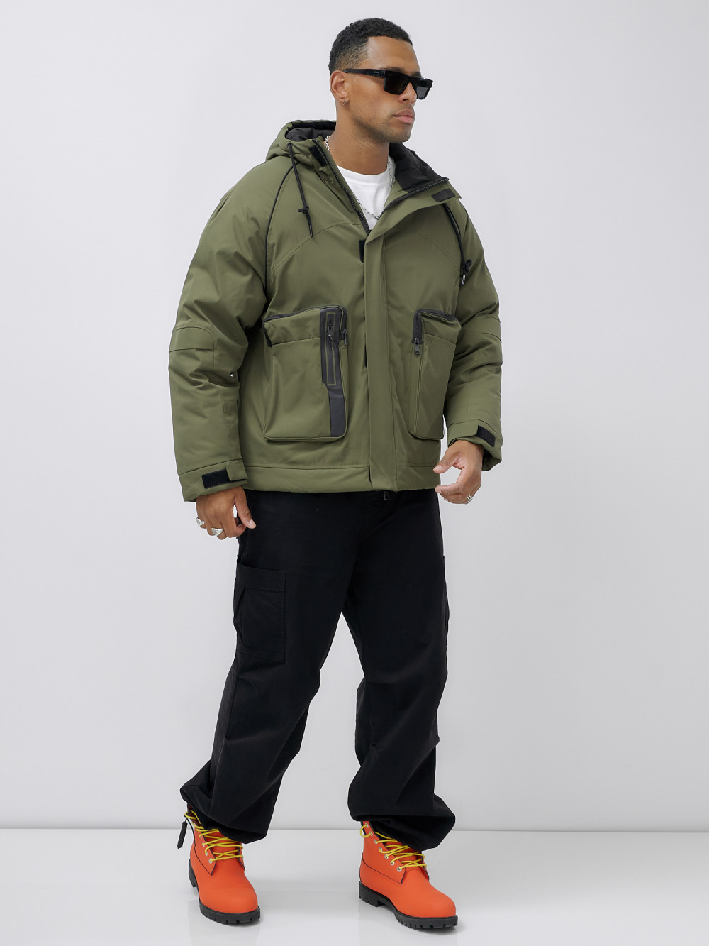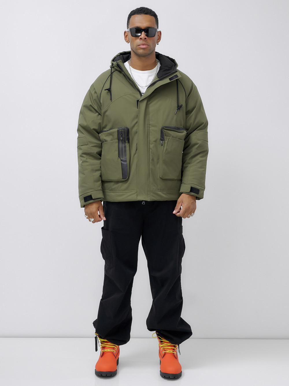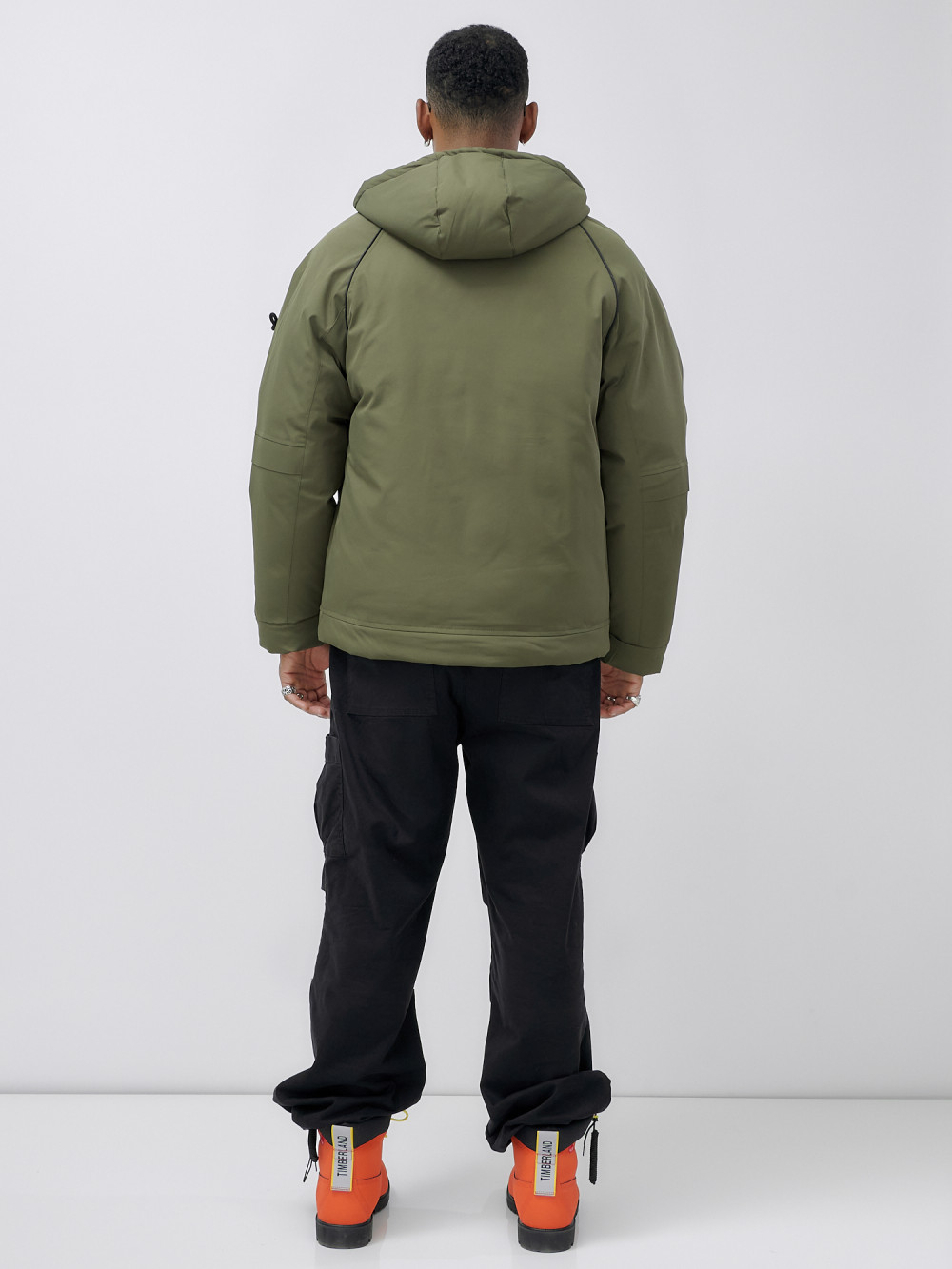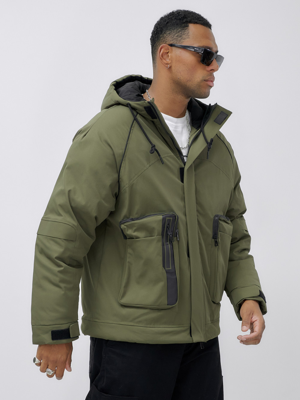 Куртка молодежная мужская зимняя с капюшоном цвета хаки 25313_1Kh — REDU
