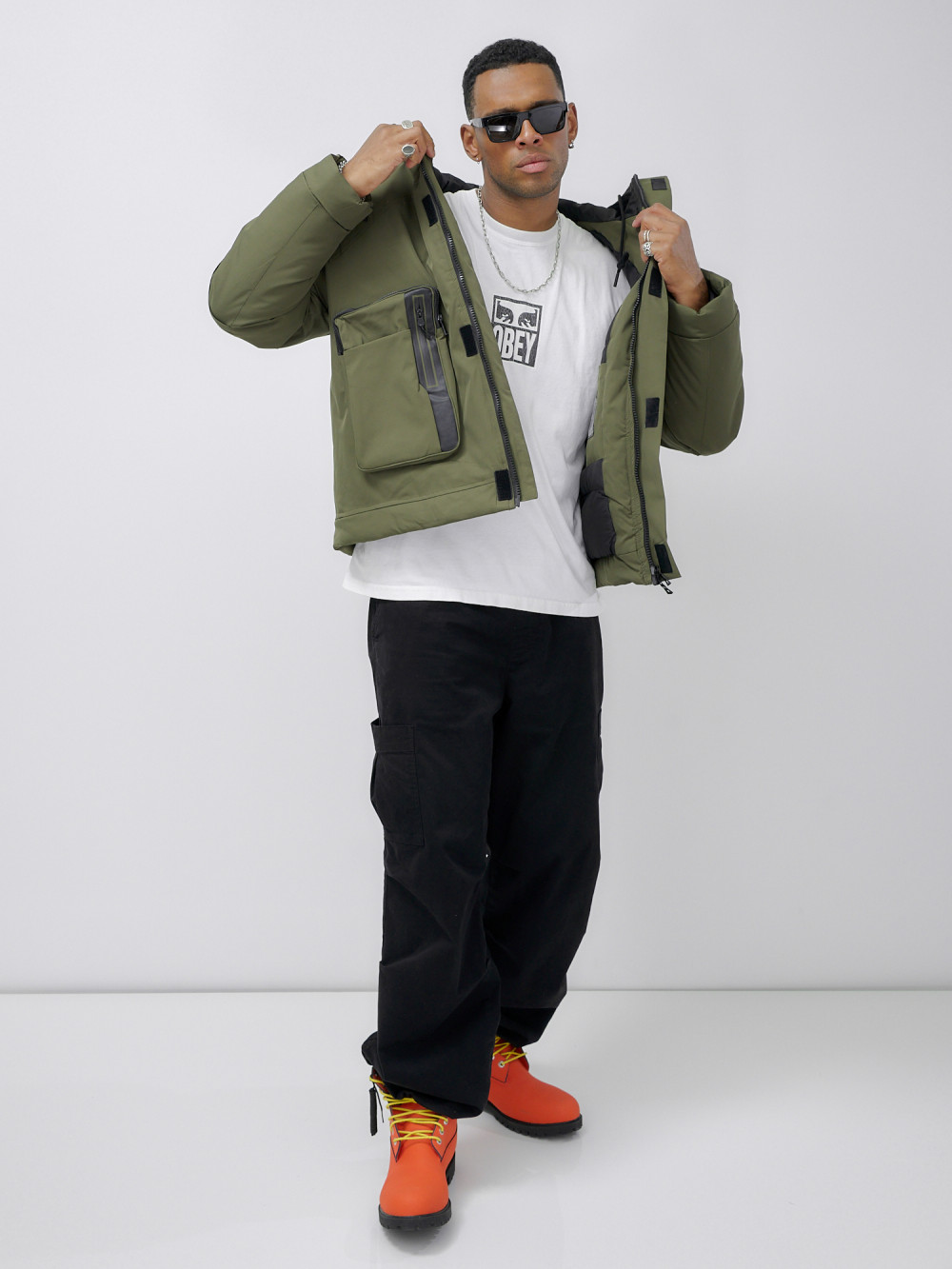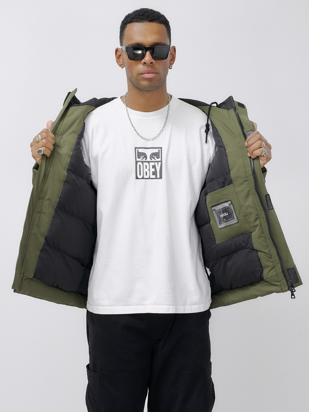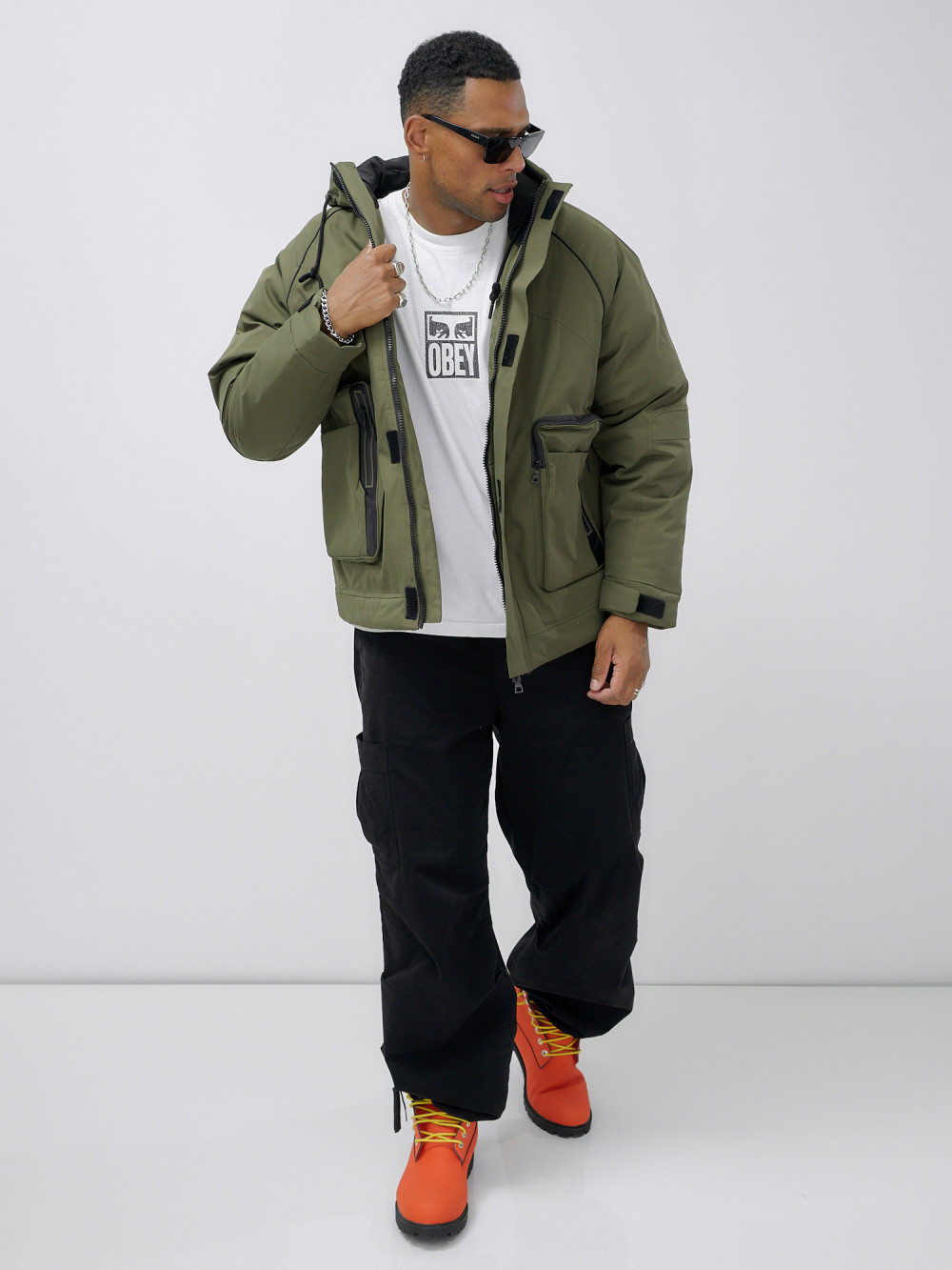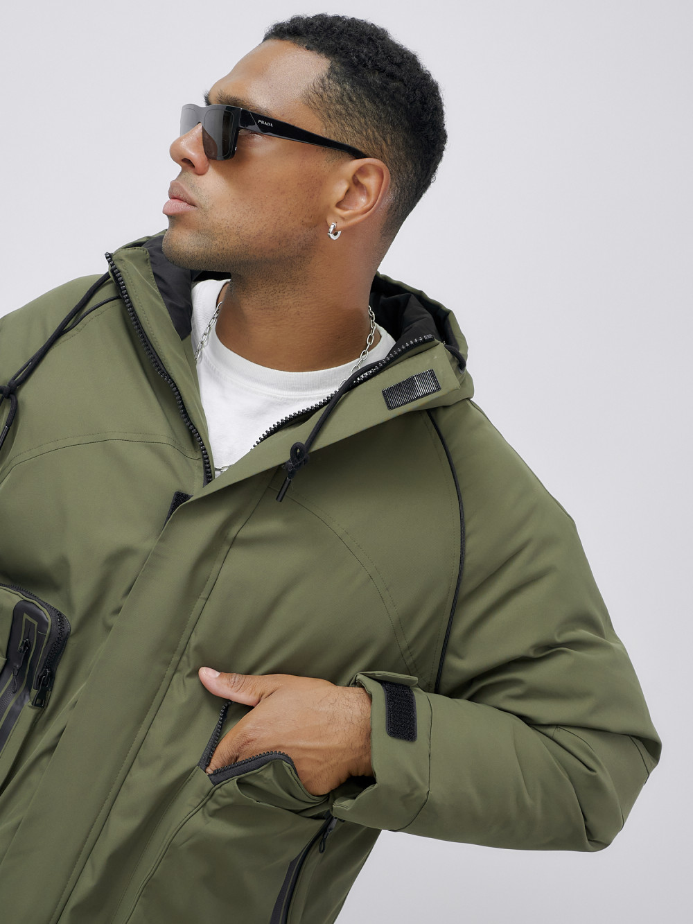 Куртка молодежная мужская зимняя с капюшоном цвета хаки 25313_1Kh — REDU