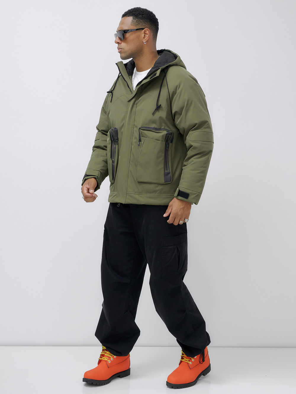 Куртка молодежная мужская зимняя с капюшоном цвета хаки 25313_1Kh