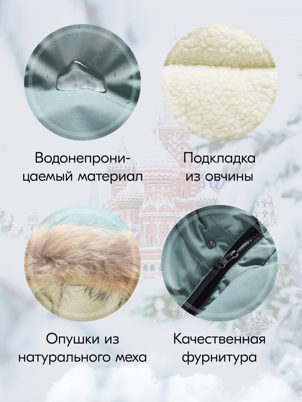 — Съемная меховая опушка: Из натурального меха, добавляет стильный акцент и дополнительное тепло.