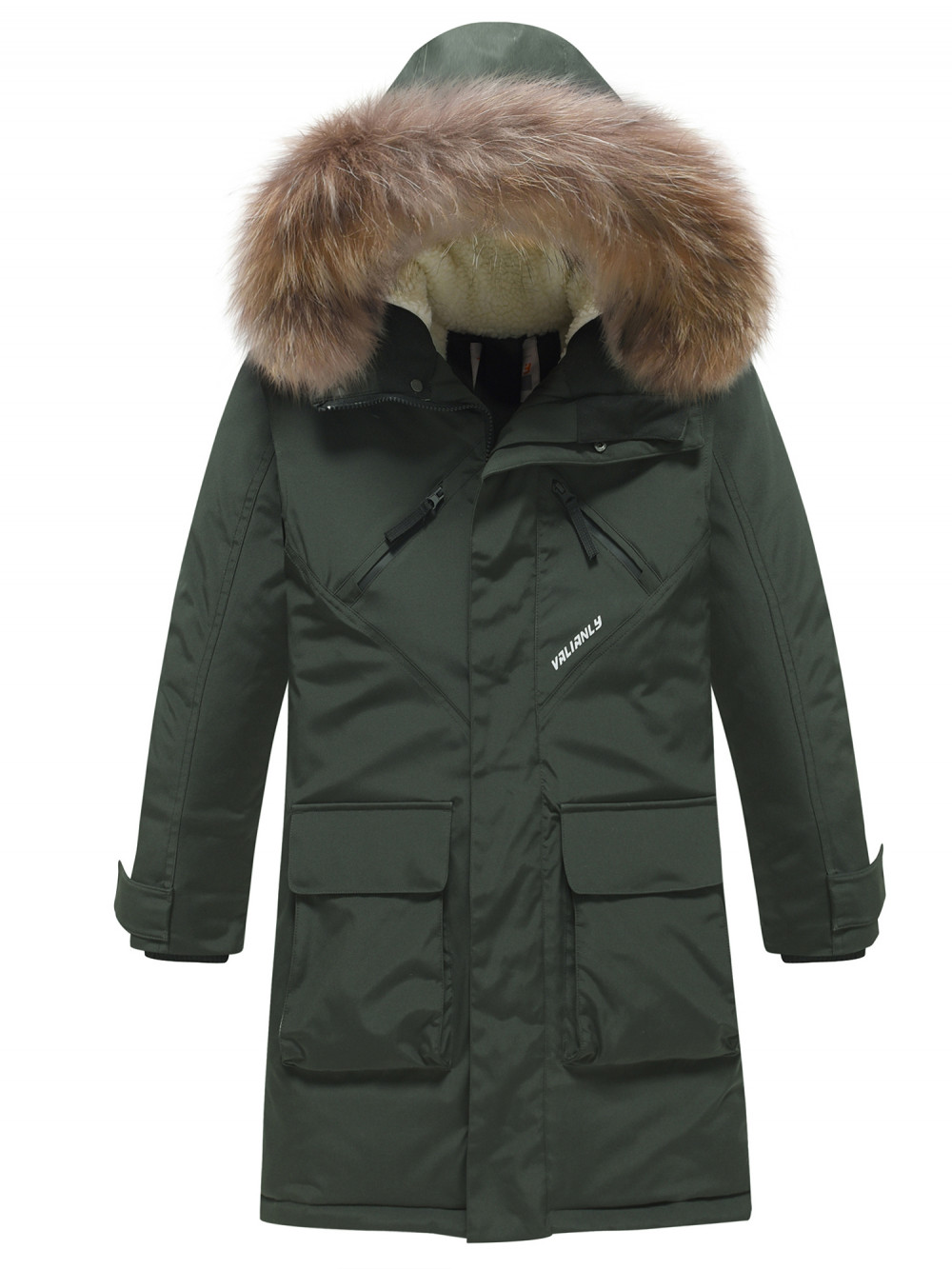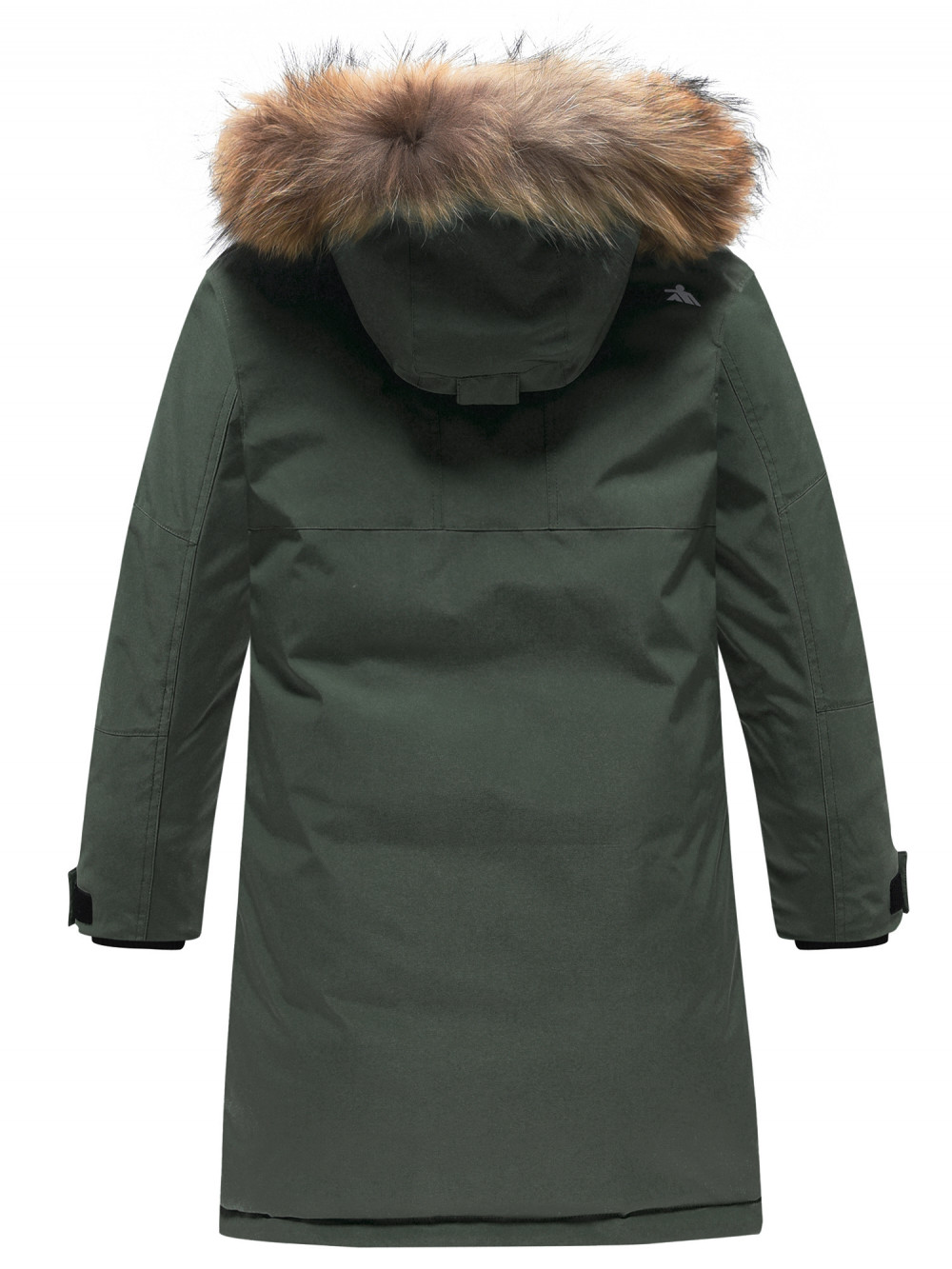 Куртка парка зимняя подростковая для мальчика с капюшоном и мехом темно-зеленого цвета 9447TZ — VALIANLY