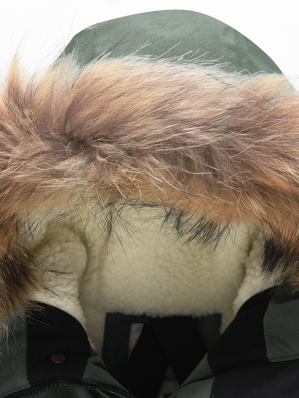 — Съемная меховая опушка: Из натурального меха, добавляет стильный акцент и дополнительное тепло.