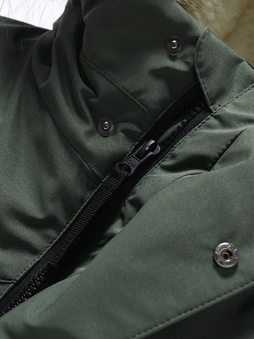 — Ветрозащитная планка на кнопках: Защищает от холодного ветра, сохраняя тепло внутри.