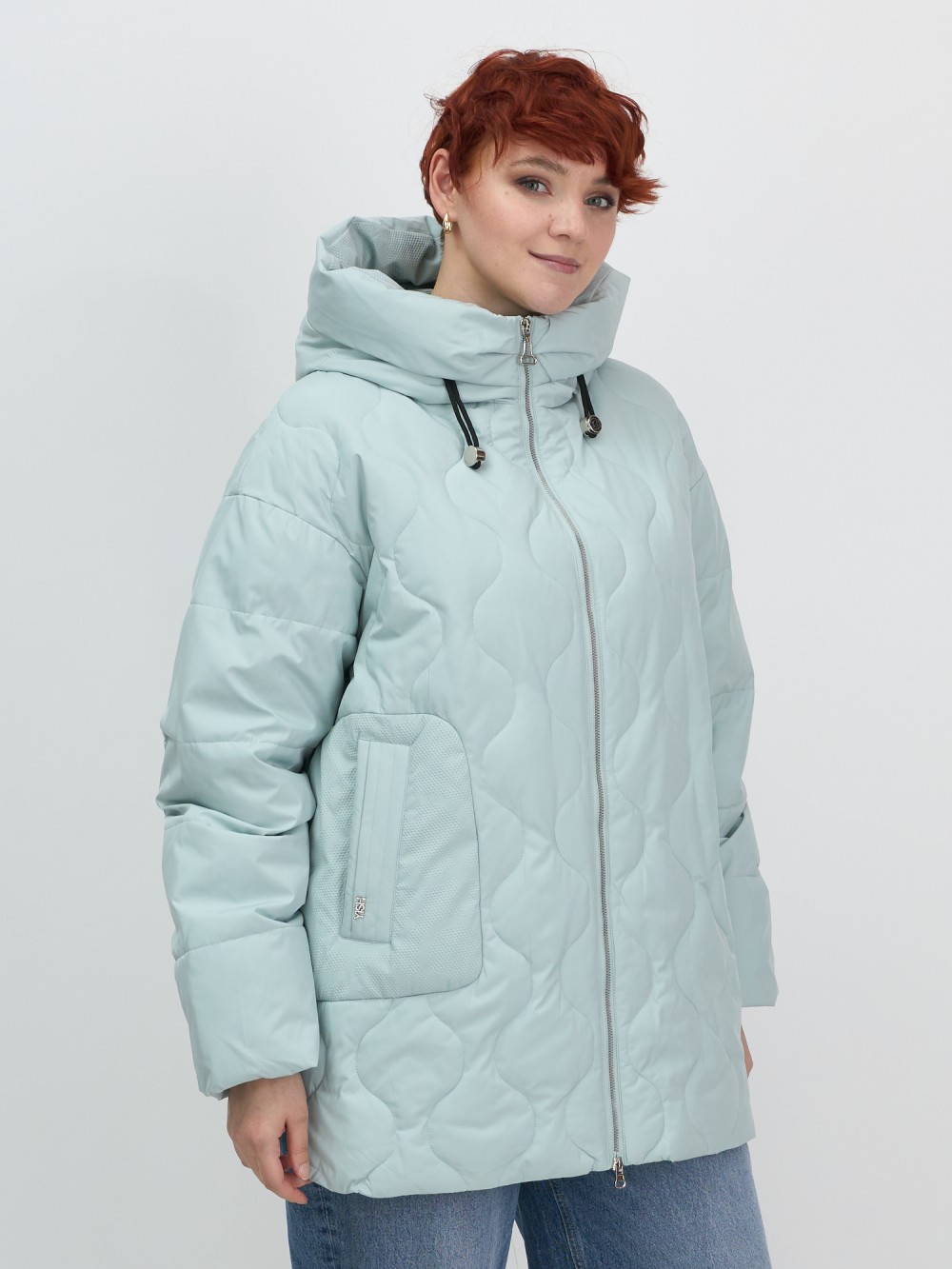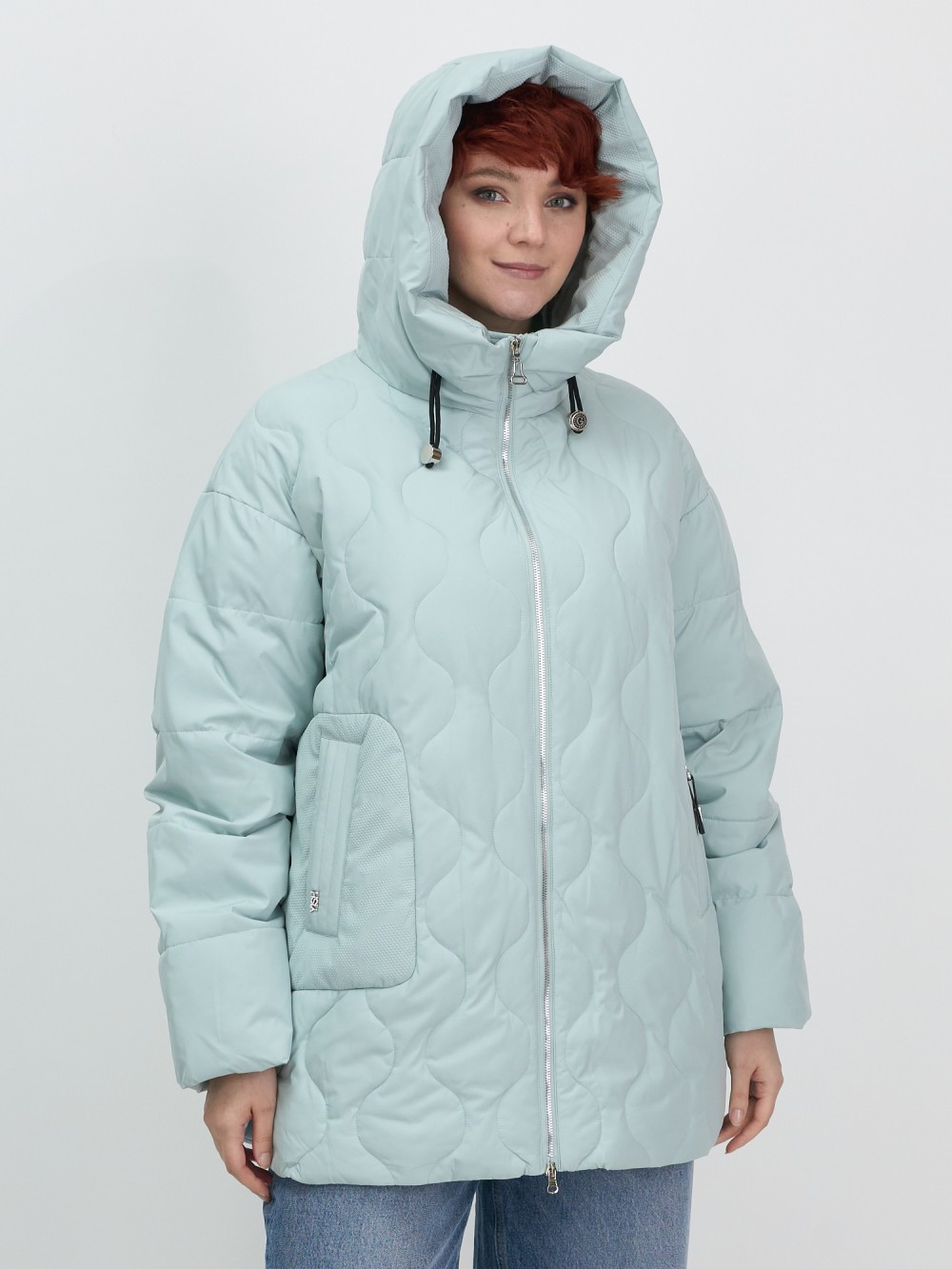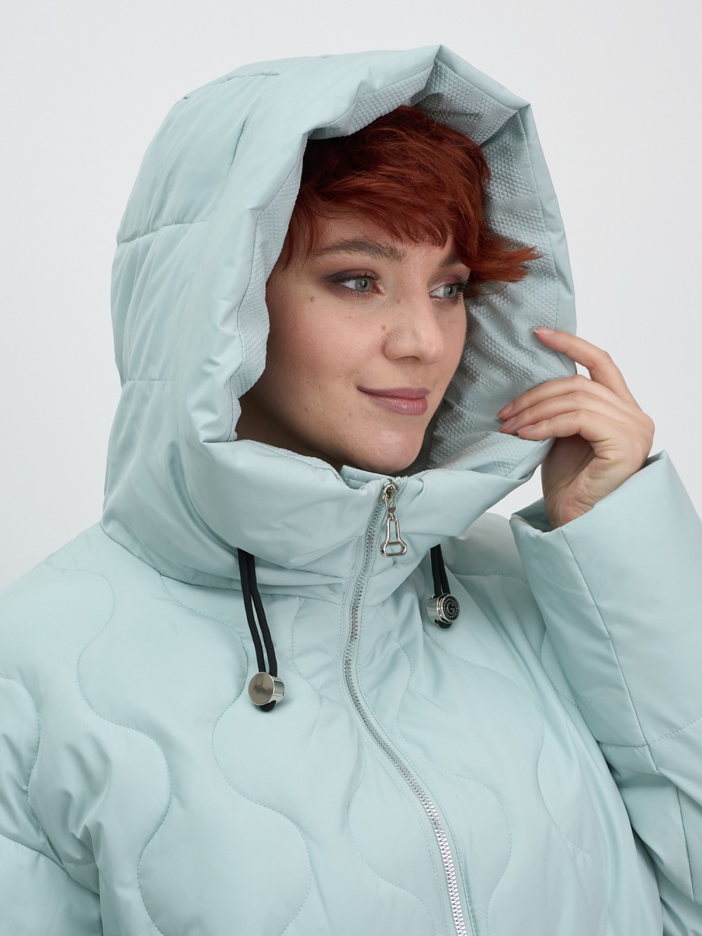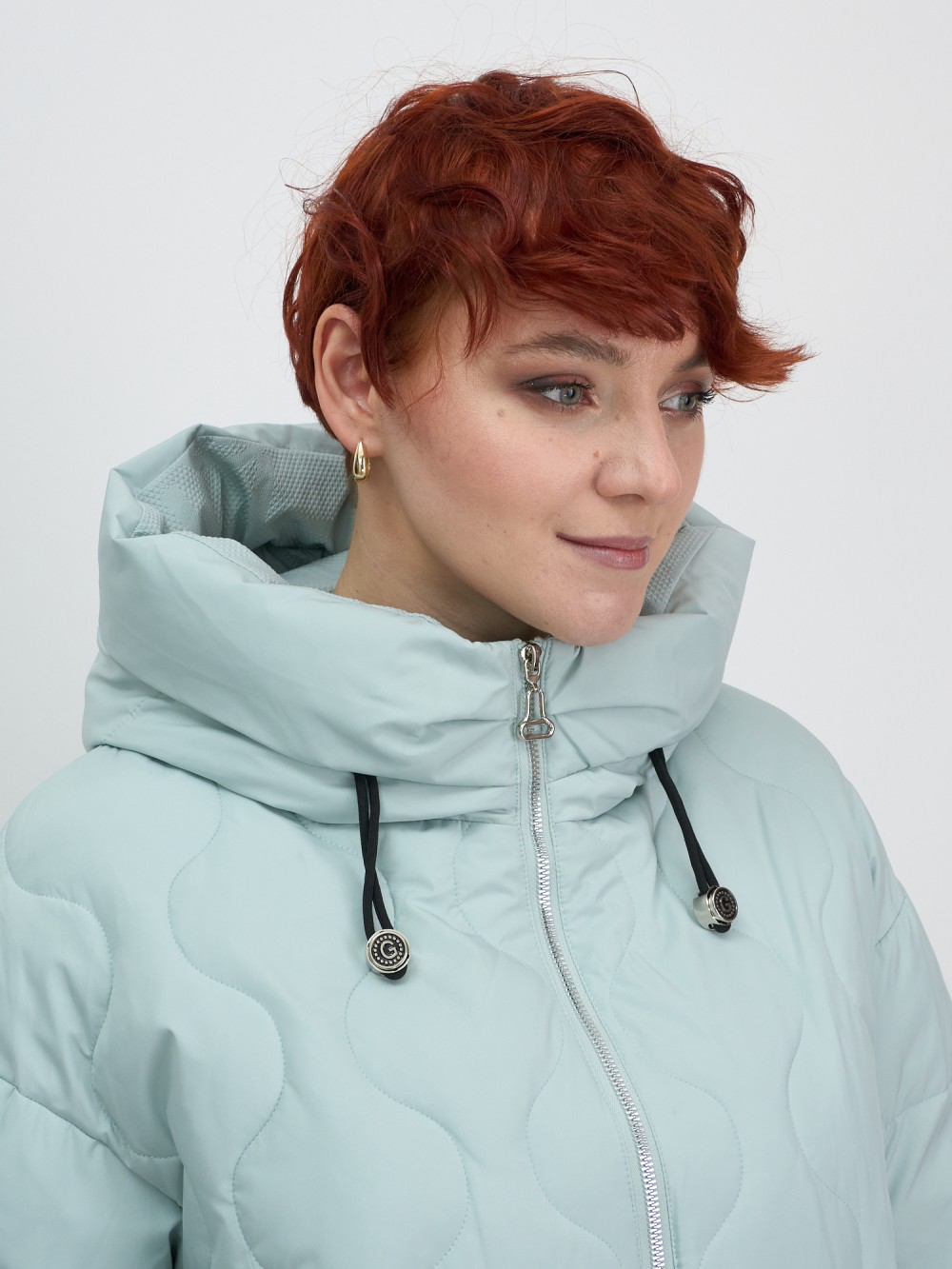 Куртка женская демисезонная с капюшоном бирюзового цвета 1140Br — HaiLuoZi
