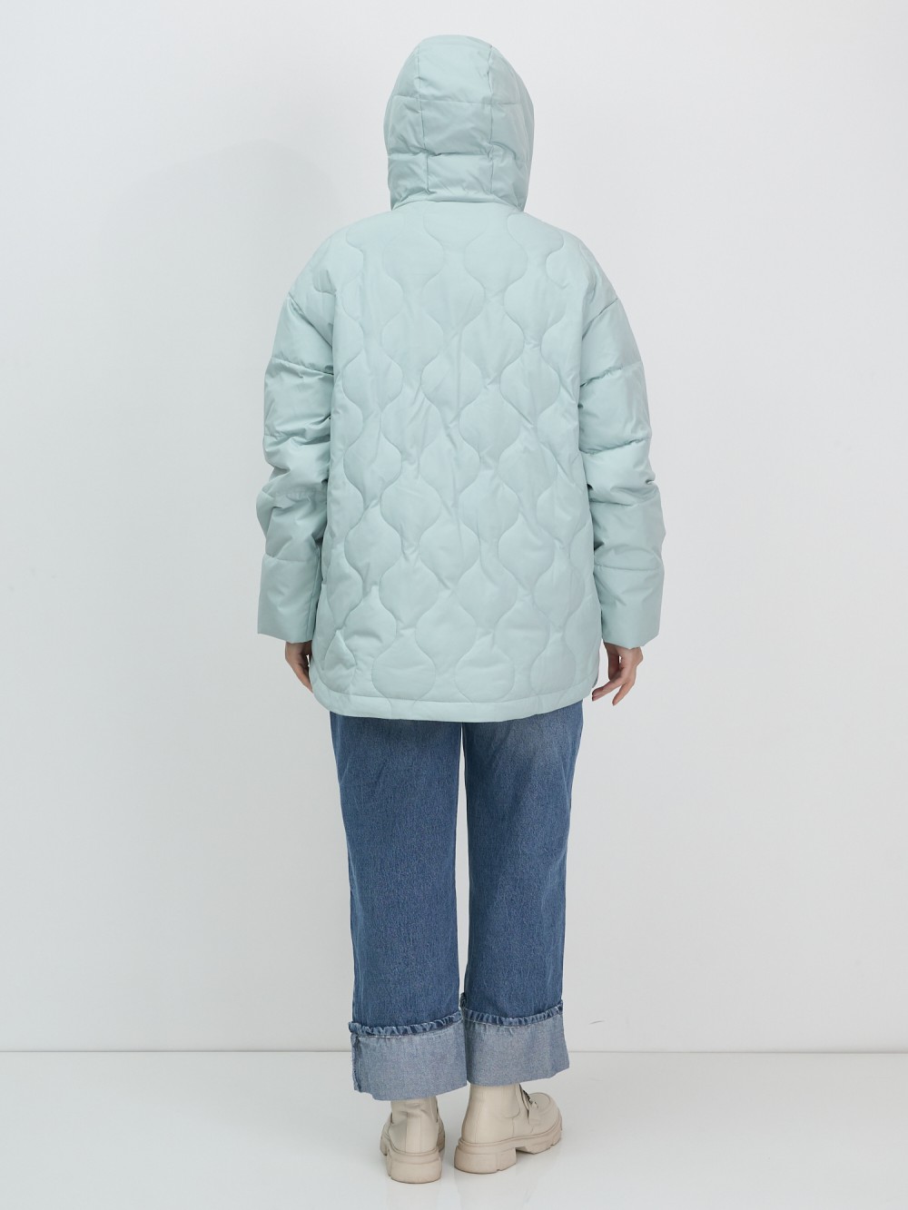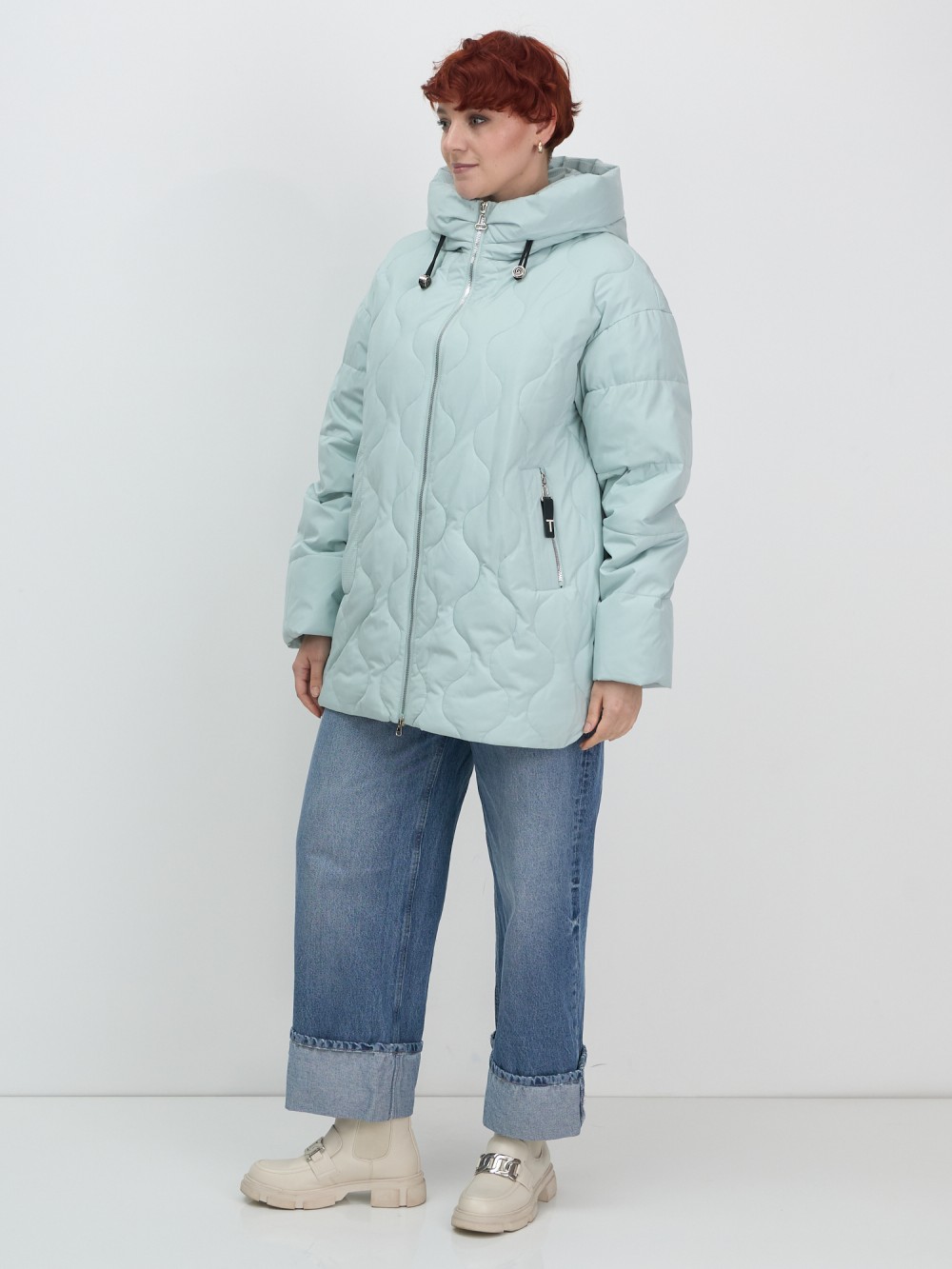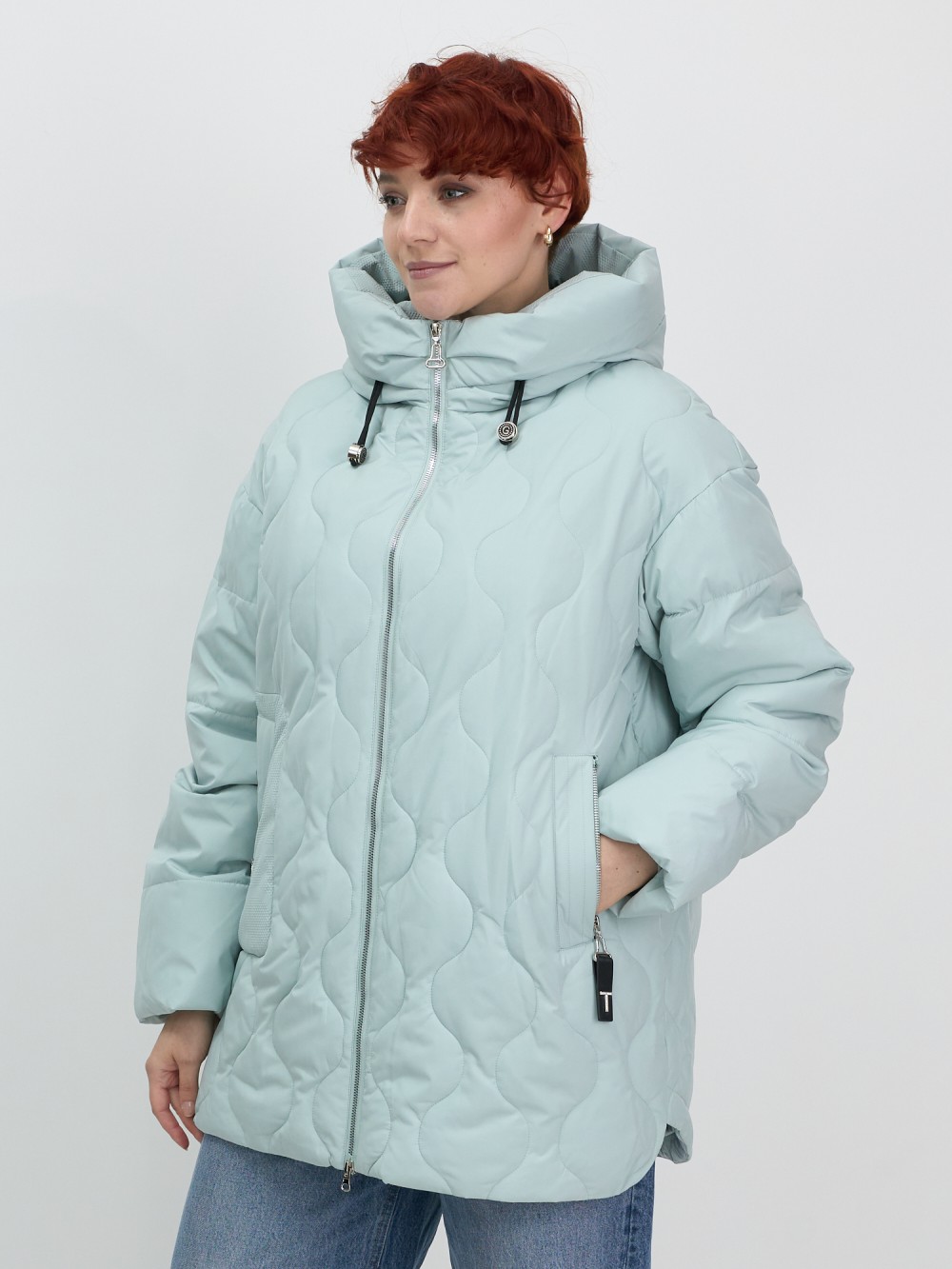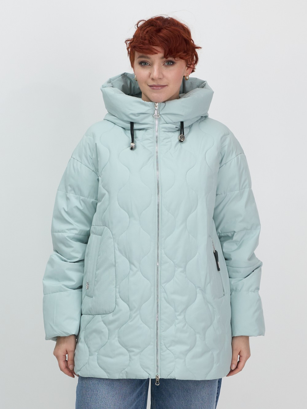 Куртка женская демисезонная с капюшоном бирюзового цвета 1140Br — HaiLuoZi