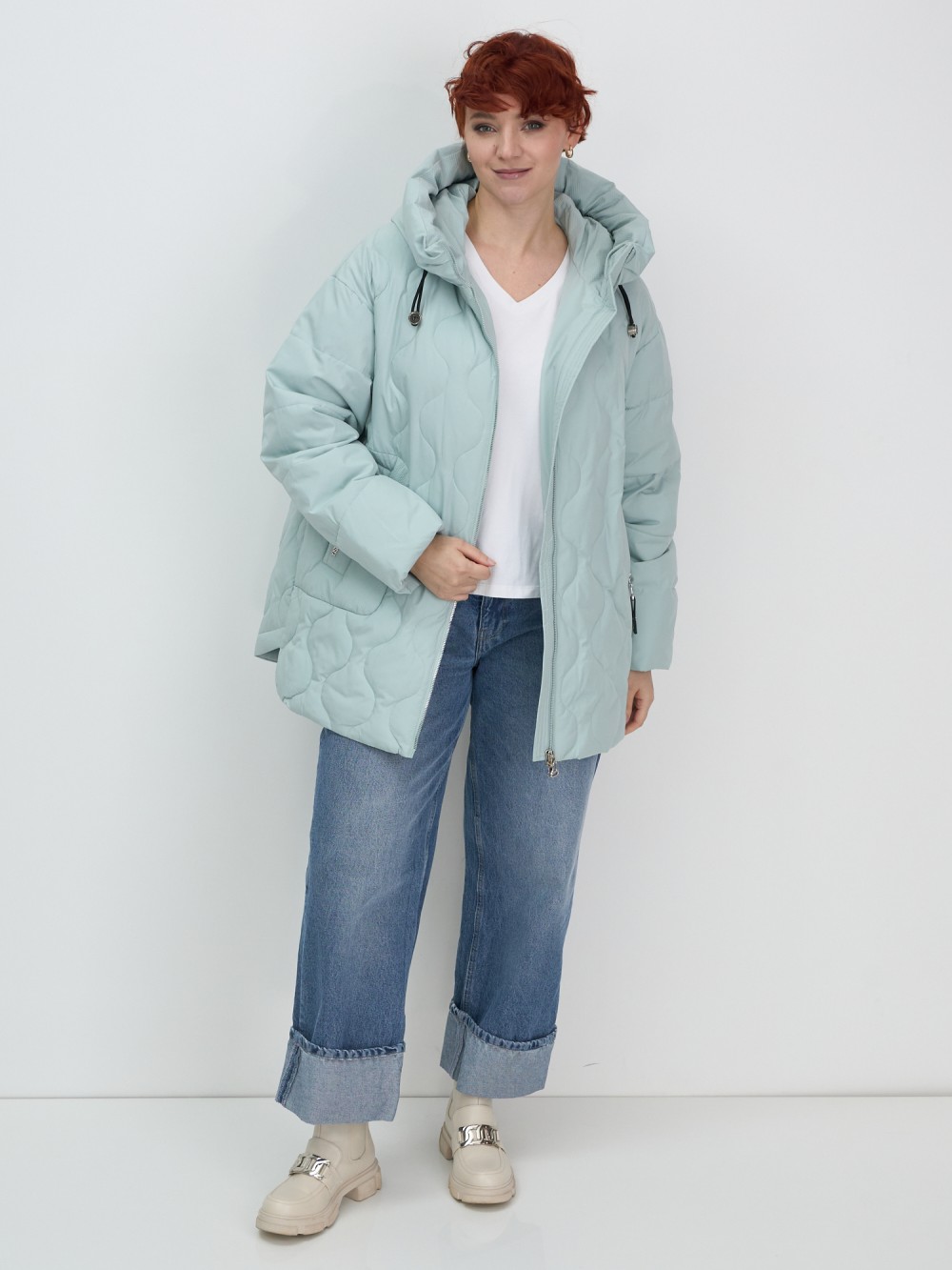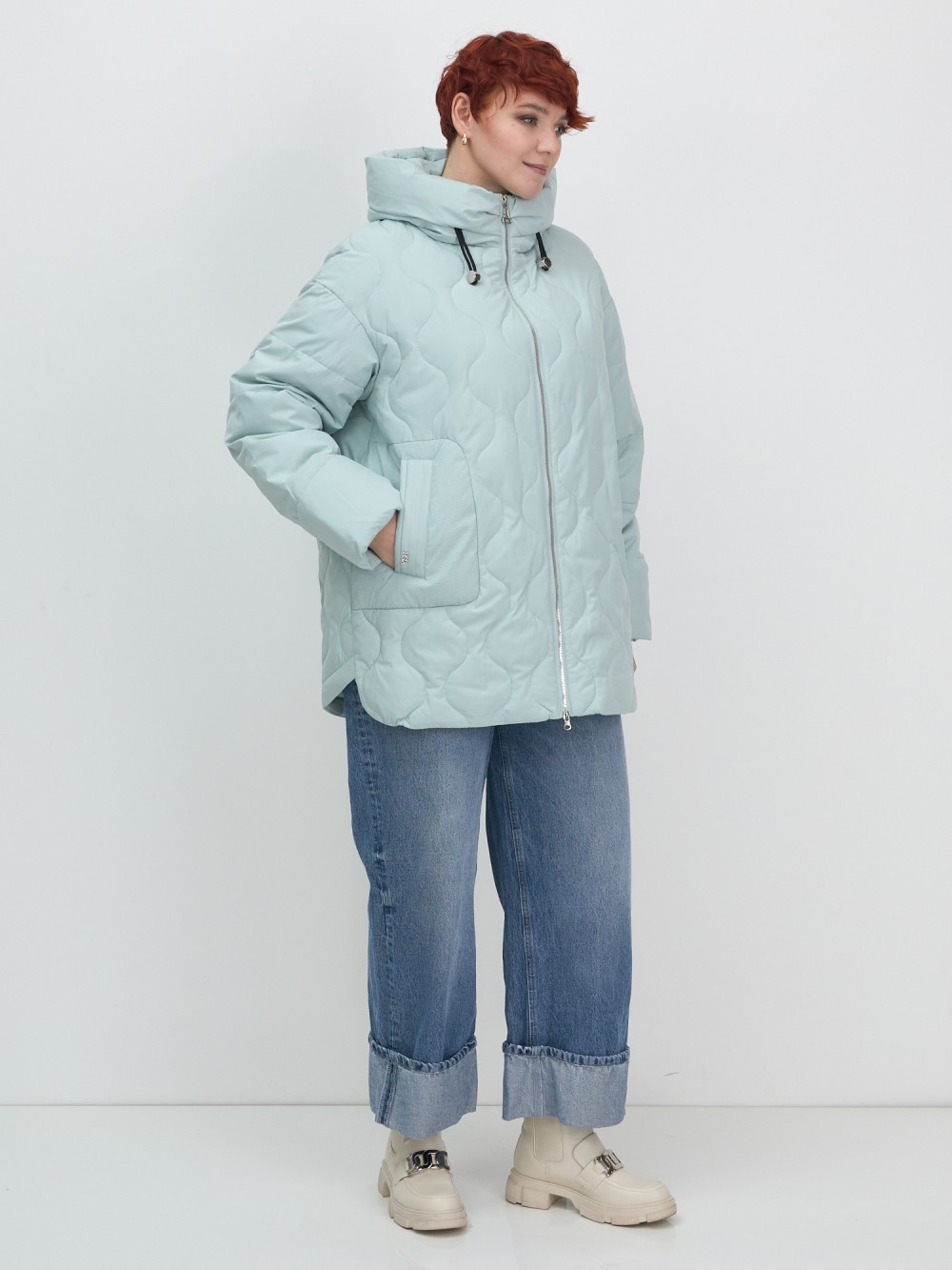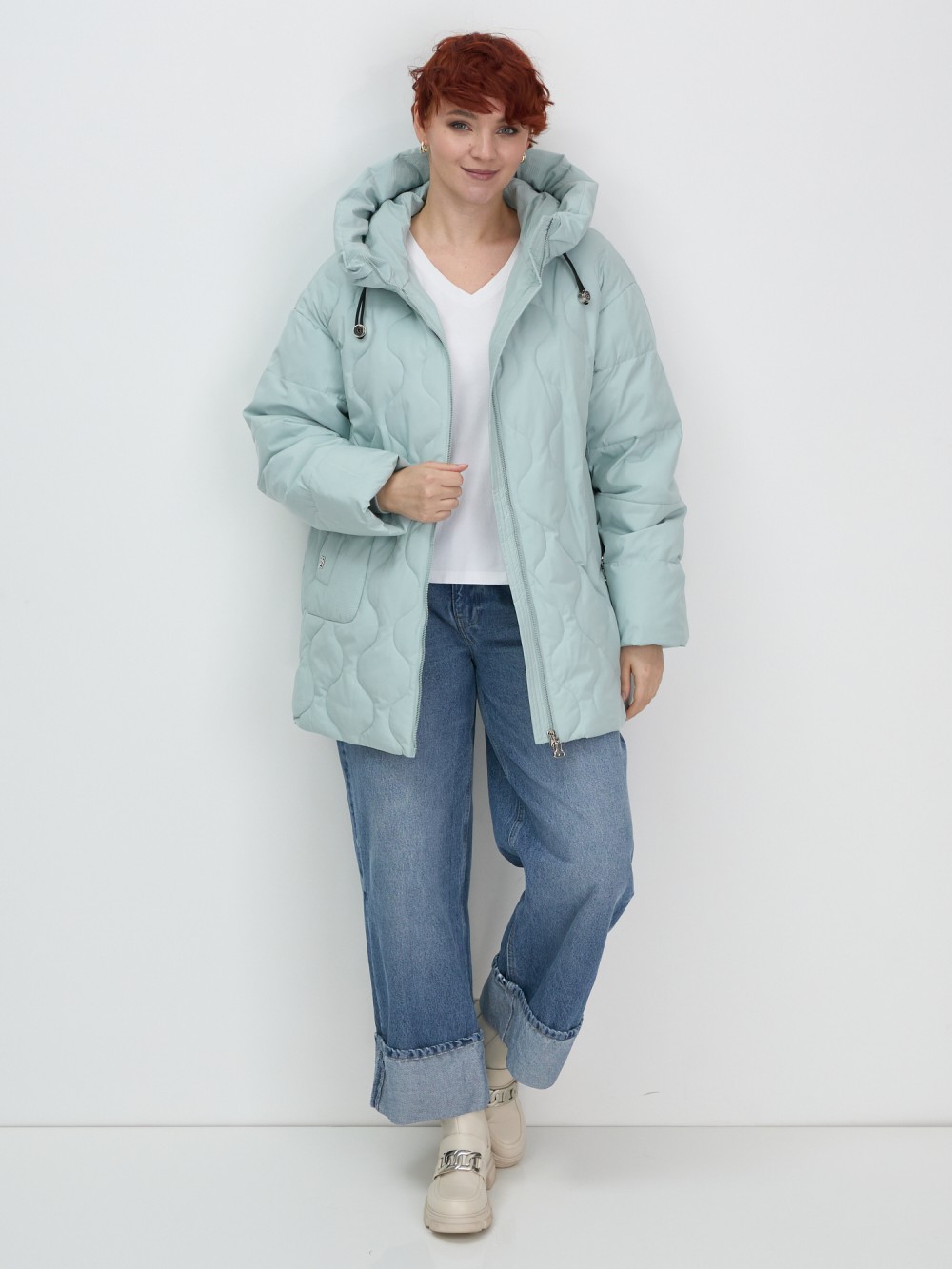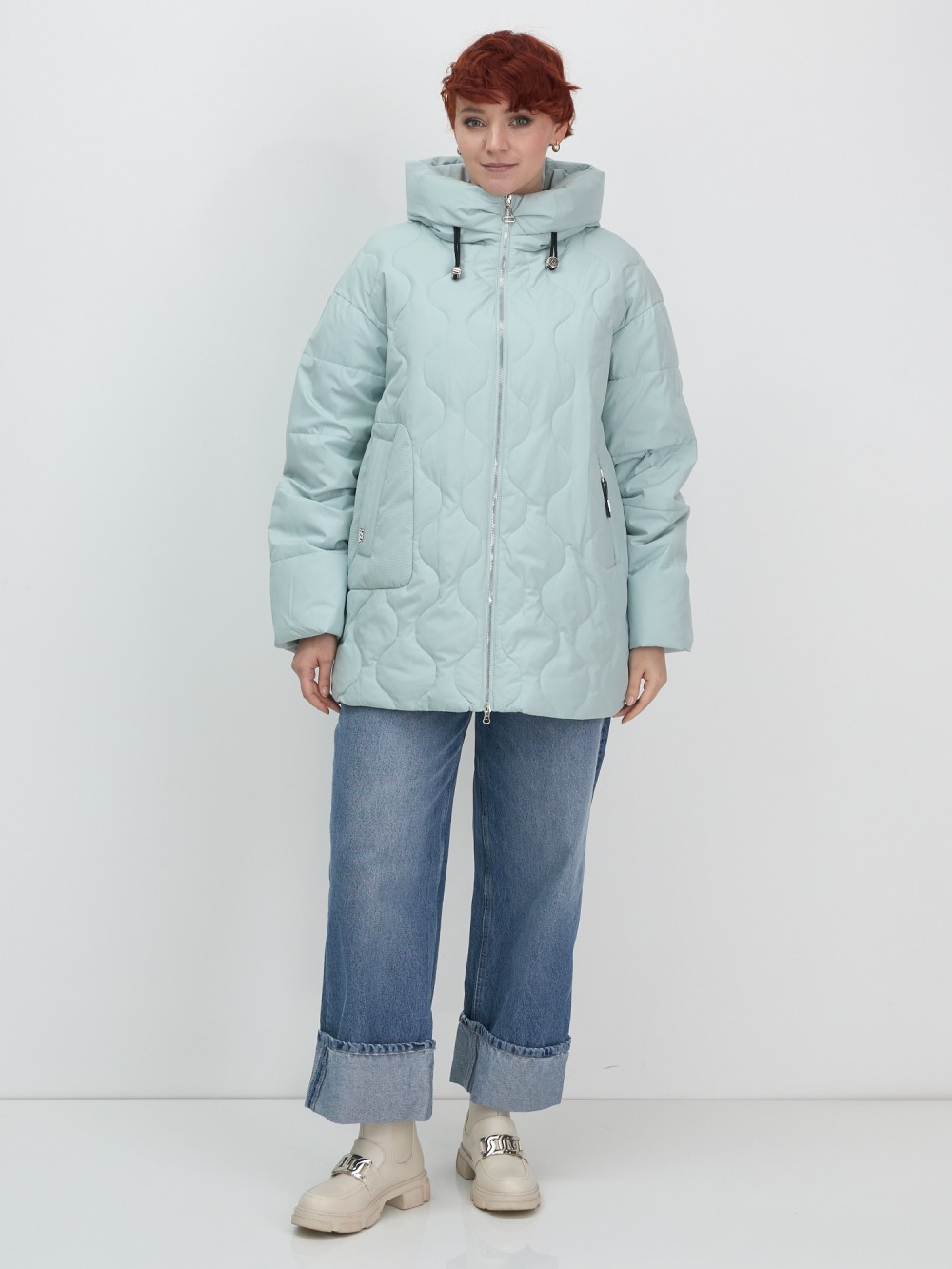 Куртка женская демисезонная с капюшоном бирюзового цвета 1140Br — HaiLuoZi