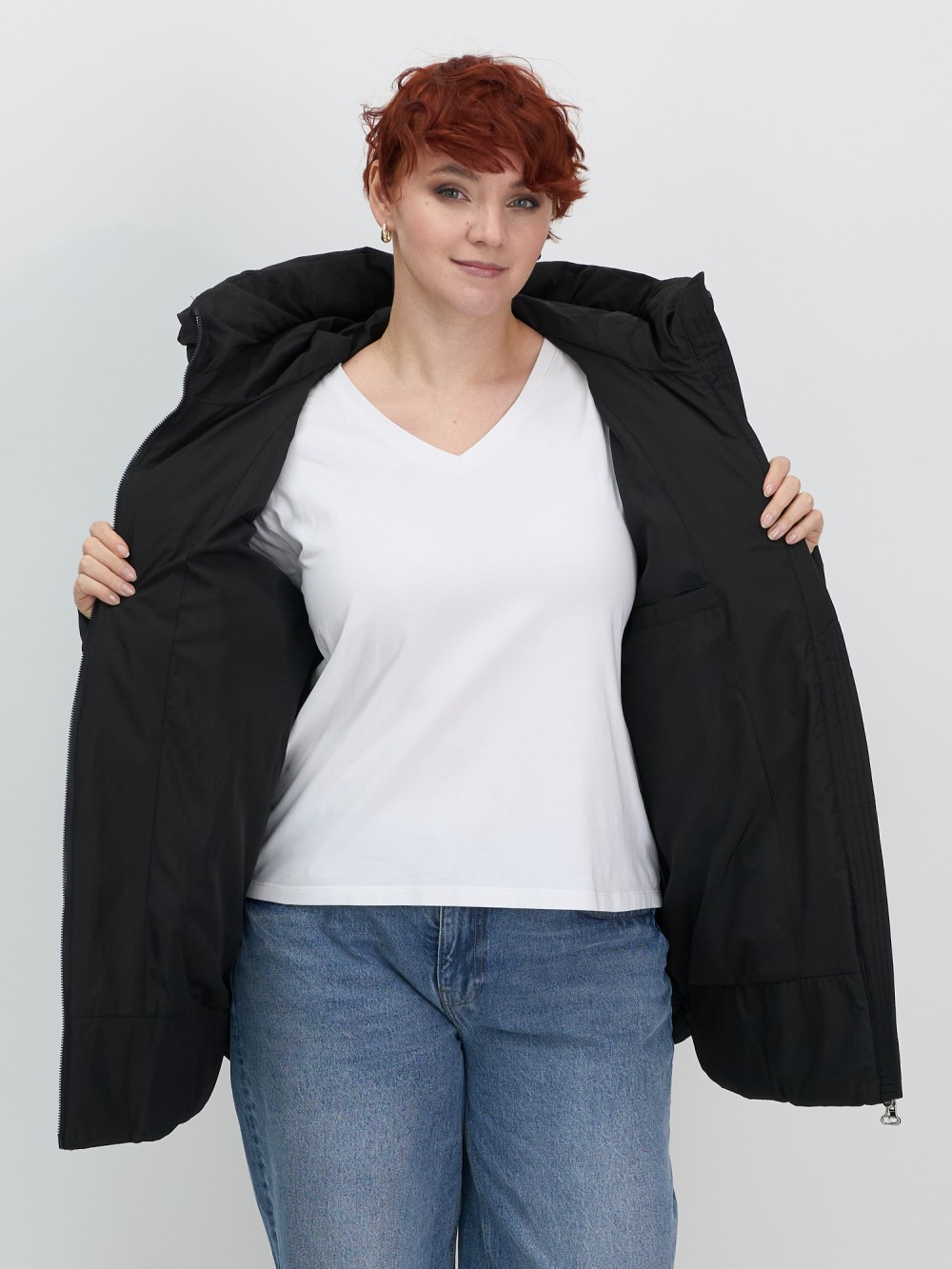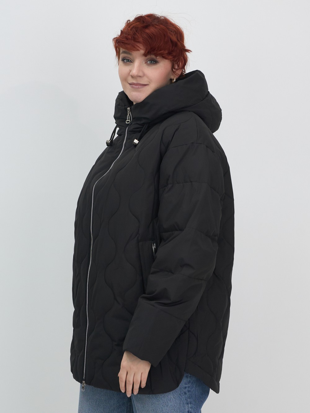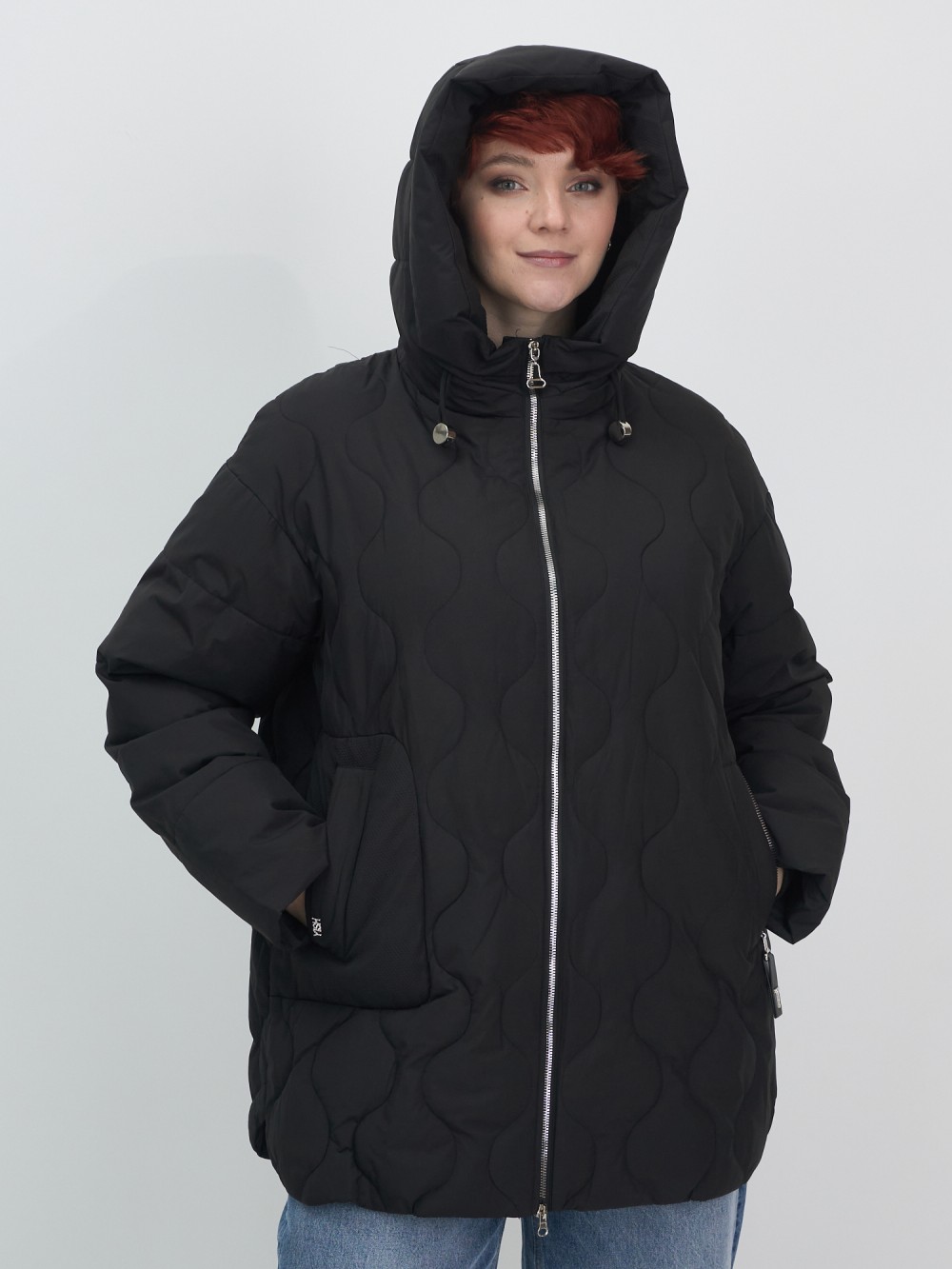 Куртка женская демисезонная с капюшоном черного цвета 1140Ch