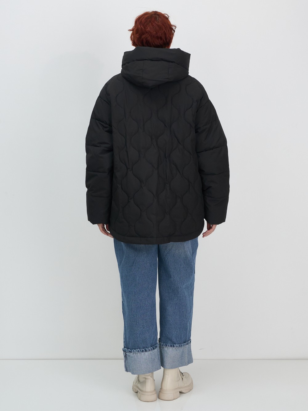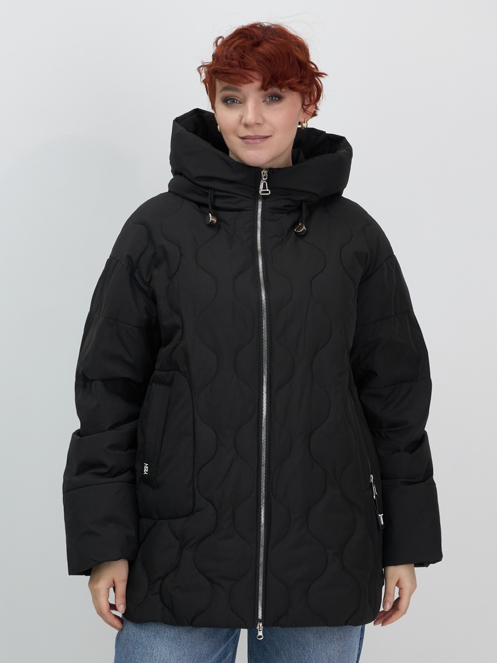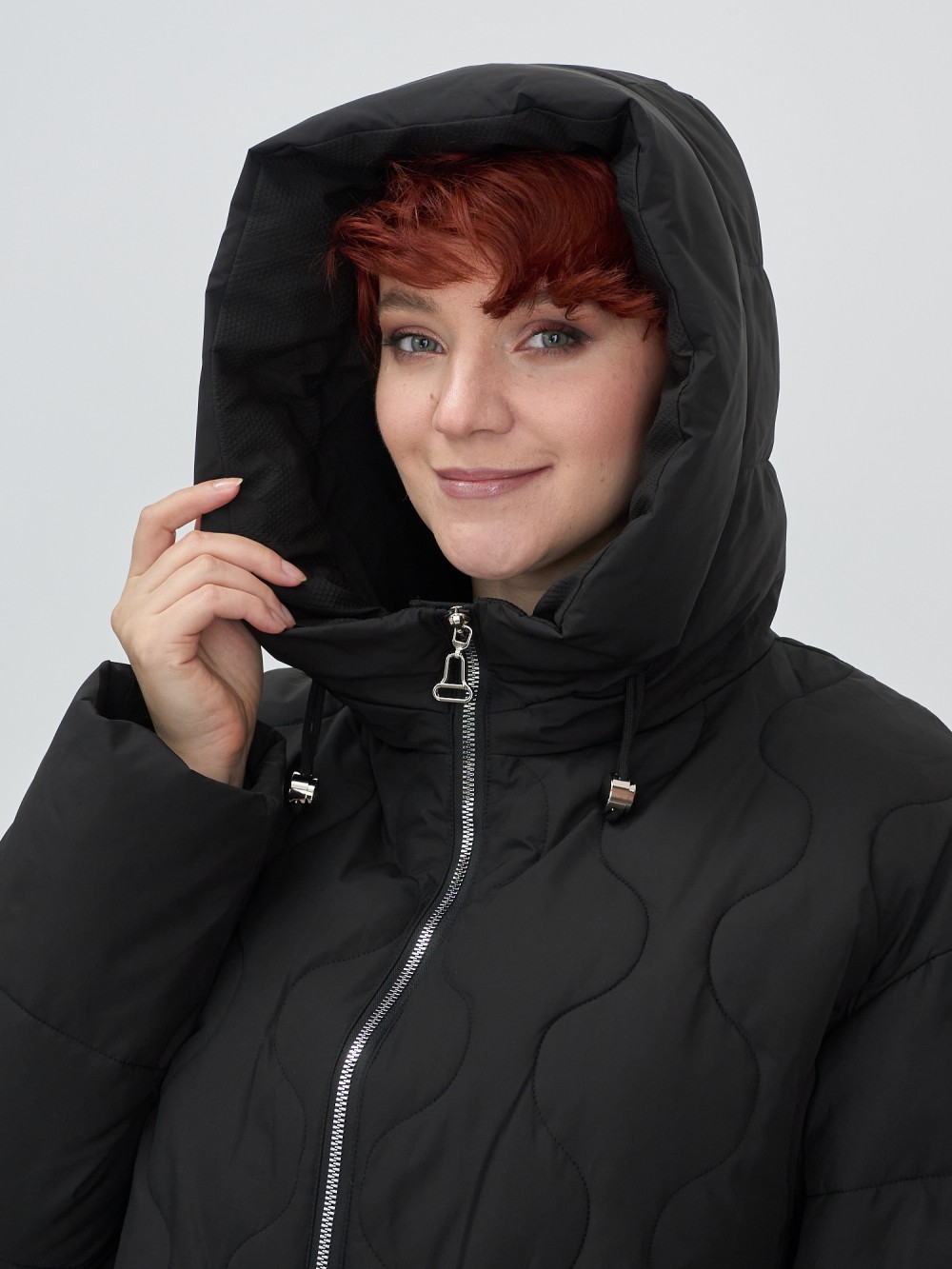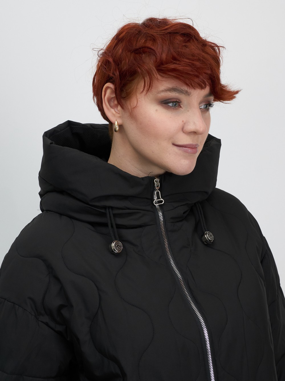 Куртка женская демисезонная с капюшоном черного цвета 1140Ch