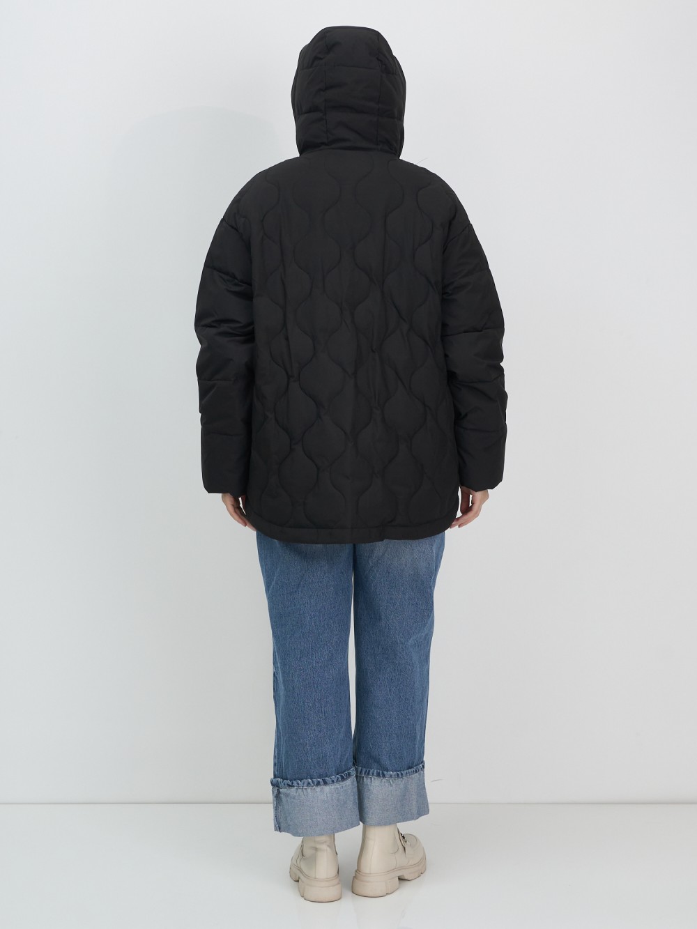 Куртка имеет не съемный капюшон, длинные рукава с манжетами и внутренние карманы для удобства. Прямой и свободный покрой, средняя длина до бедра и стильный однотонный рисунок делают эту модель подходящей для повседневной, офисной и школьной одежды. Двойная молния и кнопки обеспечивают надежную застежку, а также добавляют элегантности.