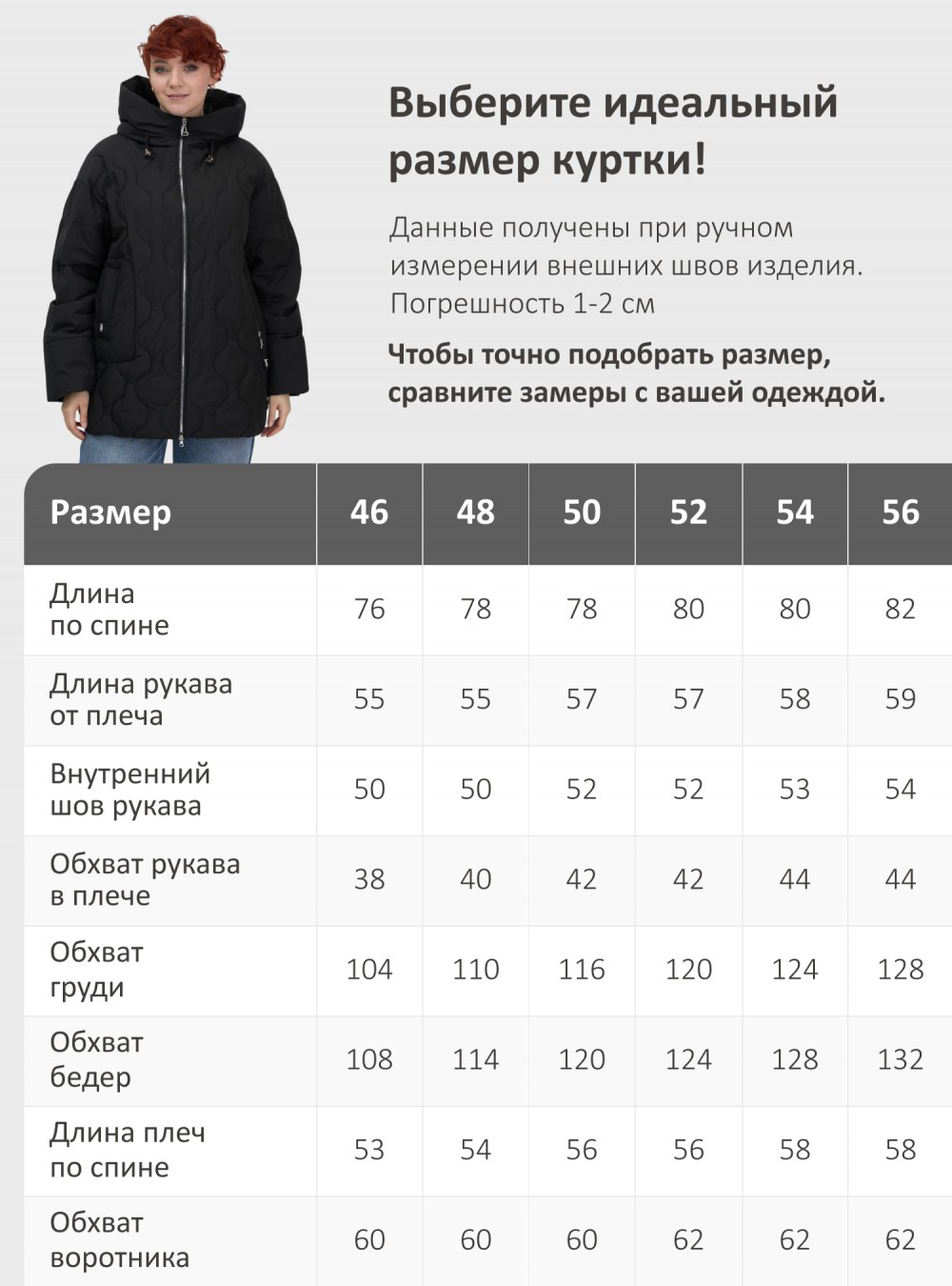 Представляем вам универсальную демисезонную женскую куртку с капюшоном, доступную в размерах от 46 до 56. Эта куртка идеально подходит для осенне-зимнего сезона, обеспечивая тепло и комфорт в любую погоду.