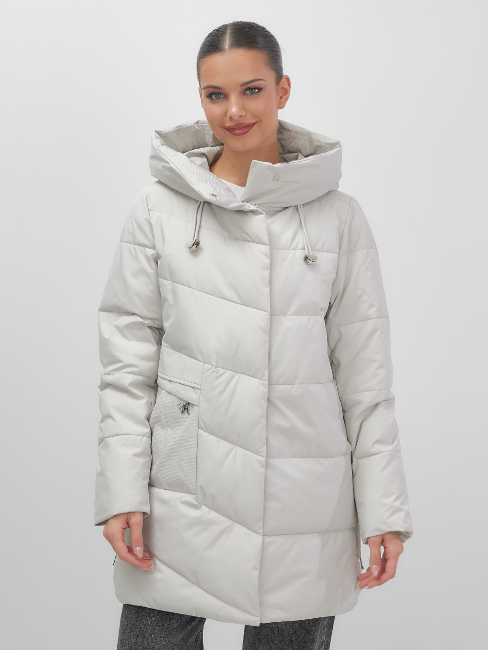 Куртка женская демисезонная с капюшоном серого цвета 1139Sr
