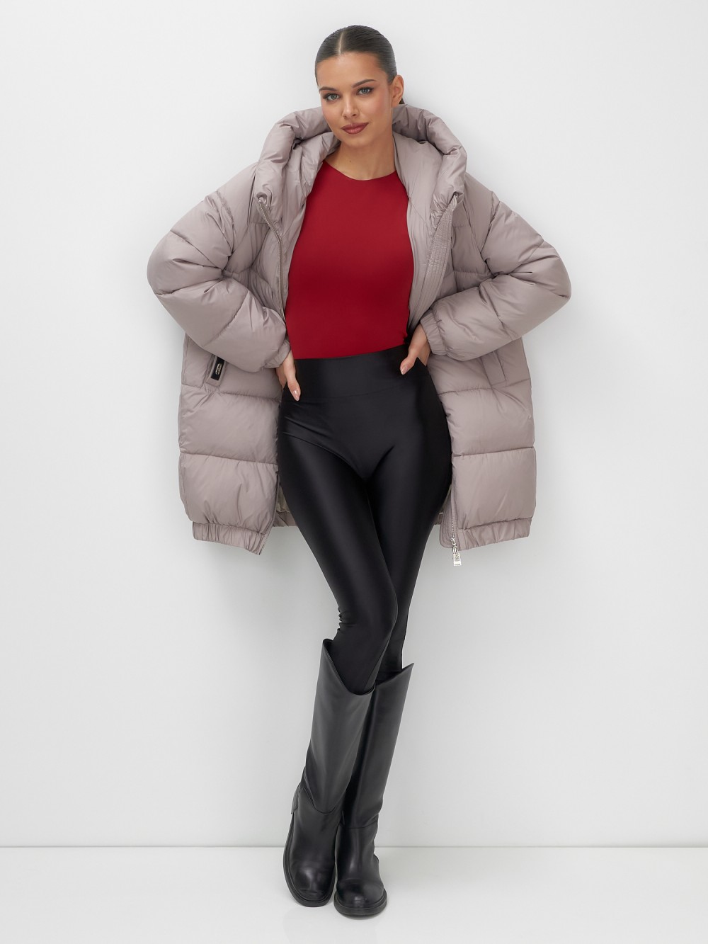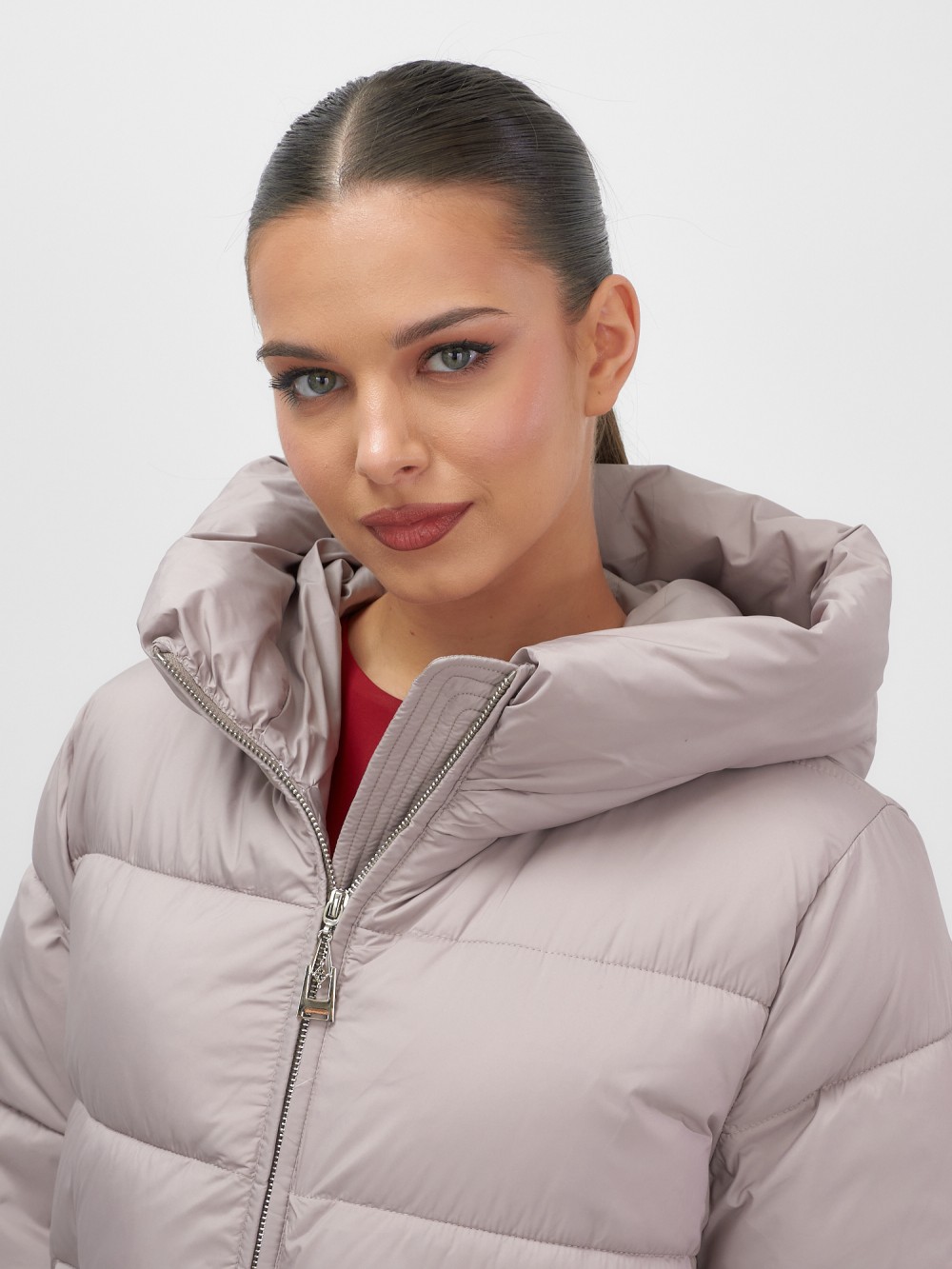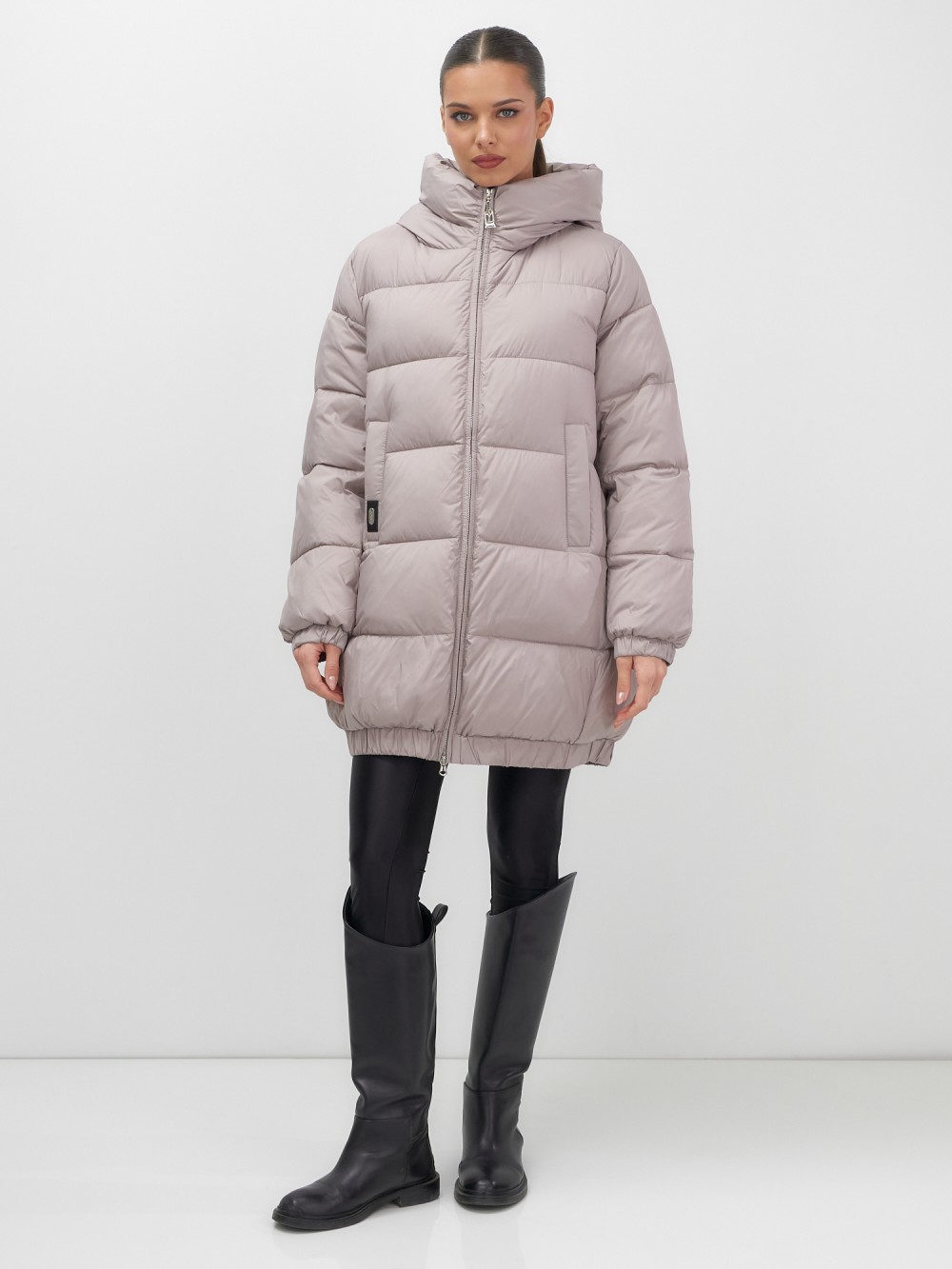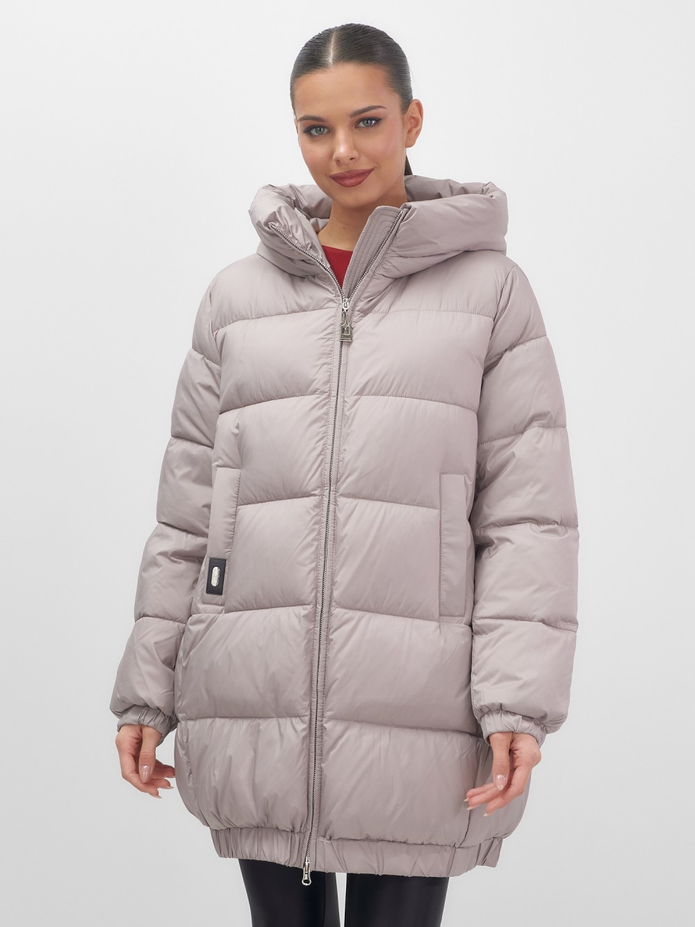 Куртка женская зимняя на резинке большого размера светло-коричневого цвета 7619SK — Visdeer