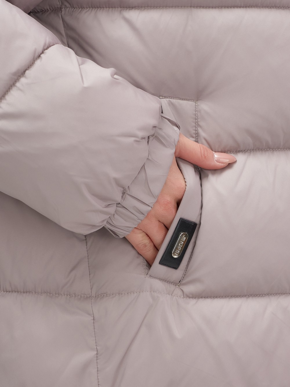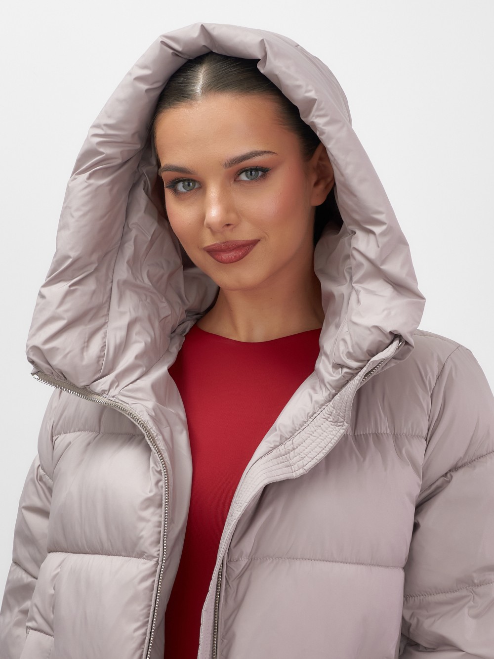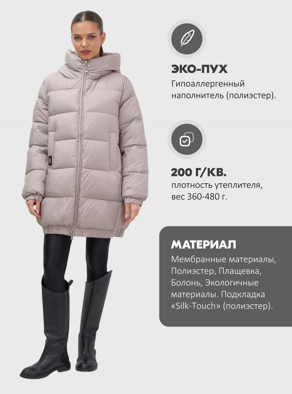 Дополнительные преимущества включают внутренние карманы для удобства, а также дышащий и гипоаллергенный материал, который не вызывает дискомфорта. Съемный воротник и фиксатор на капюшоне добавляют модели элегантности и функциональности.