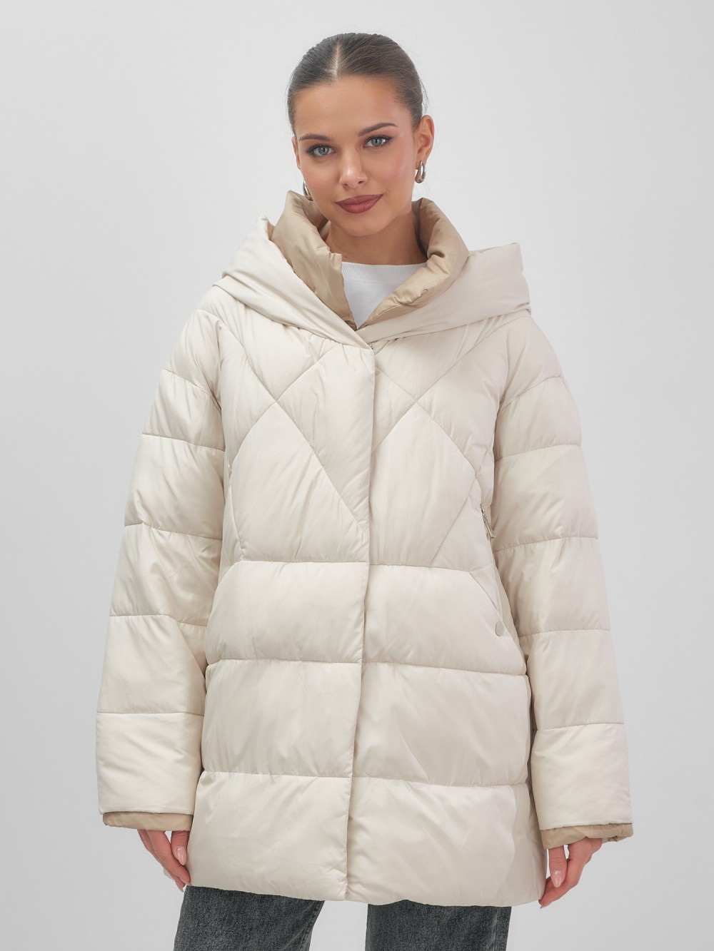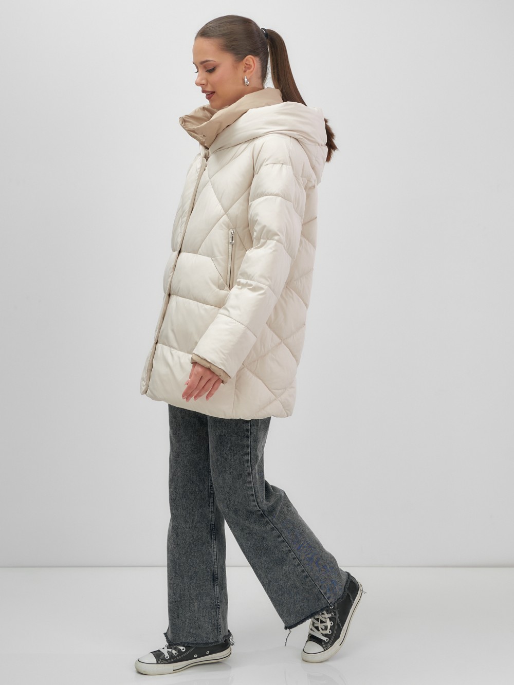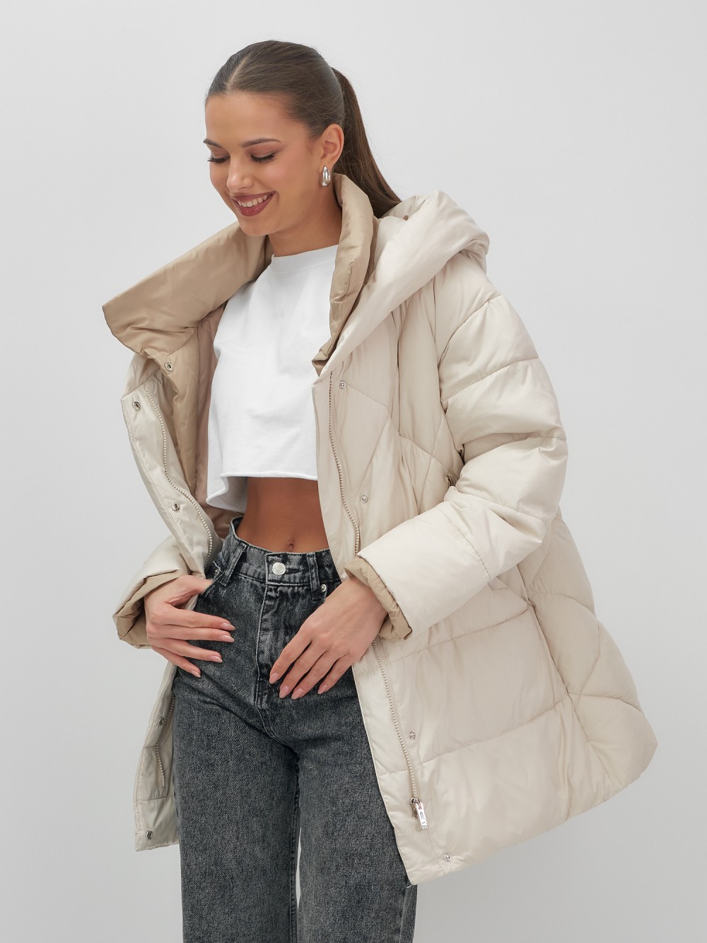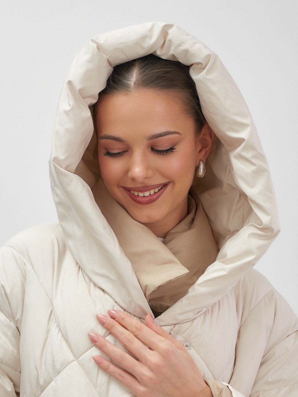 Куртка женская зимняя с капюшоном большого размера бежевого цвета 1170B