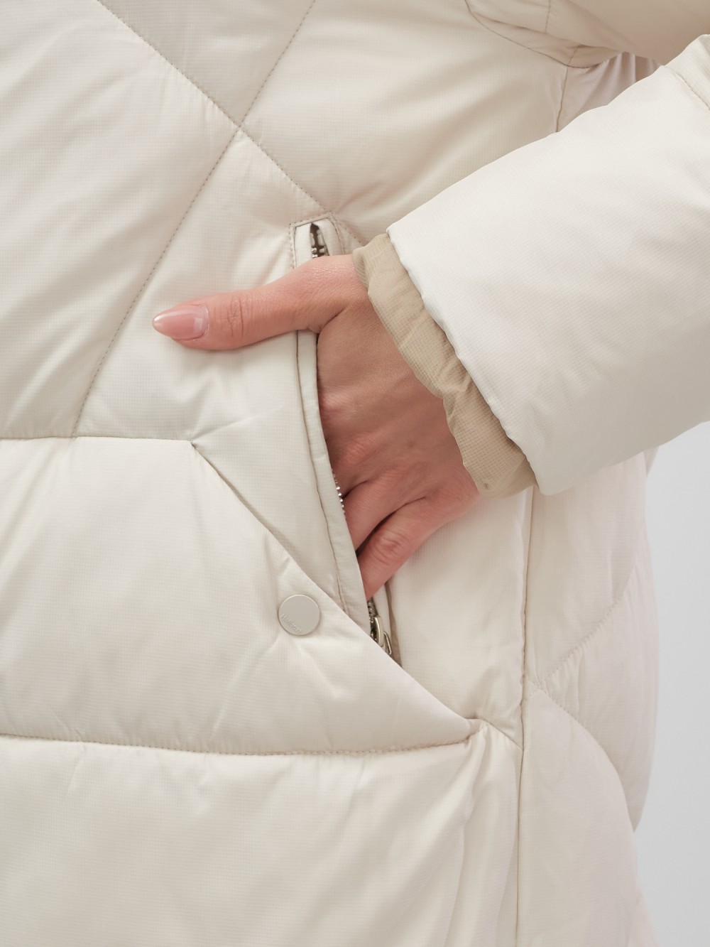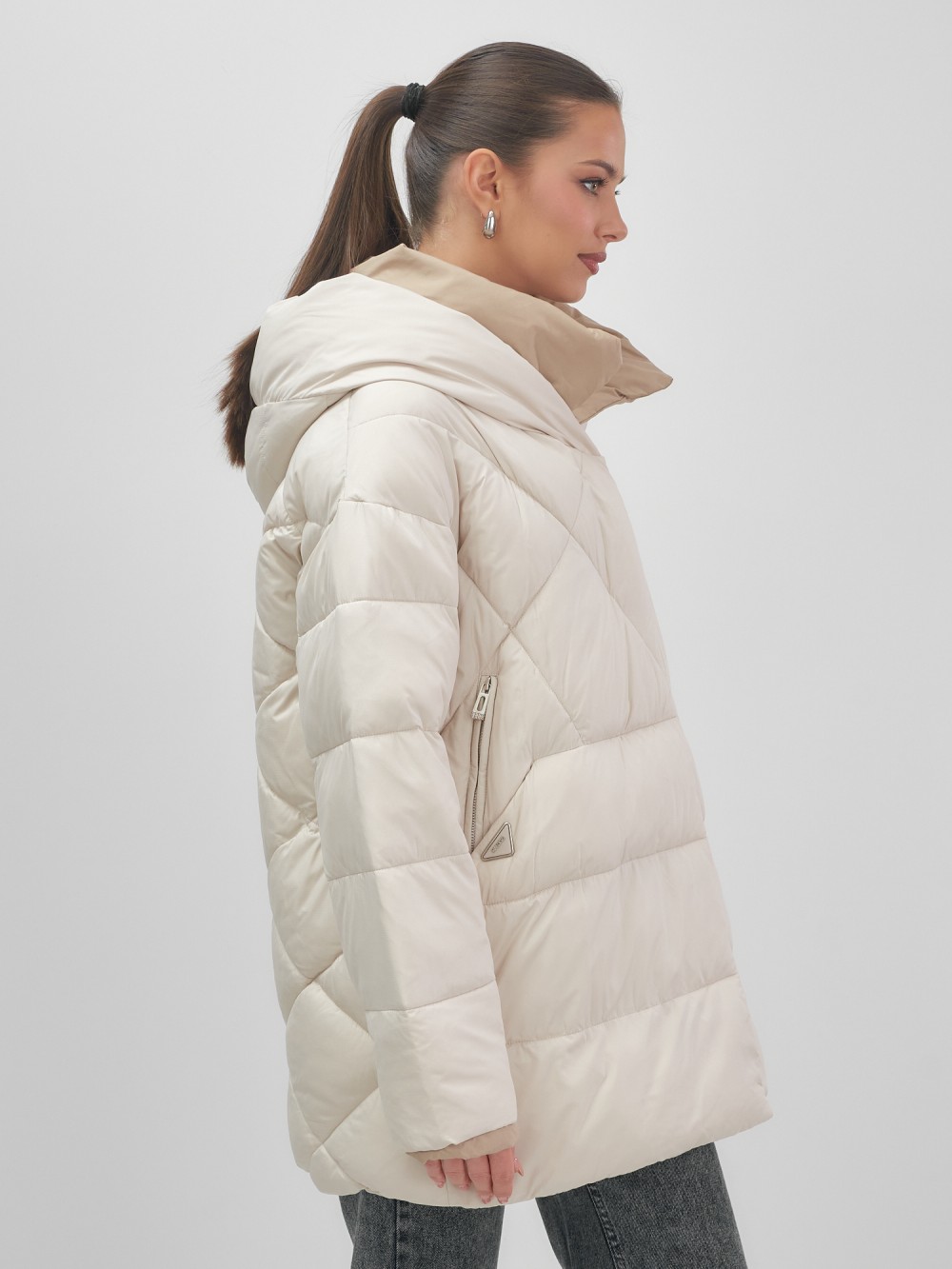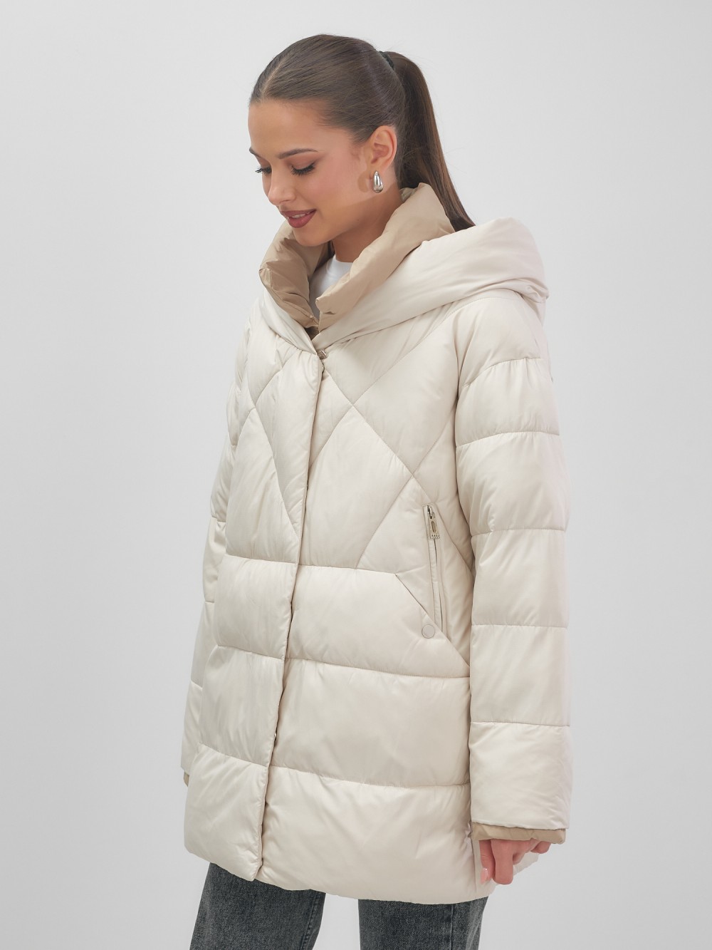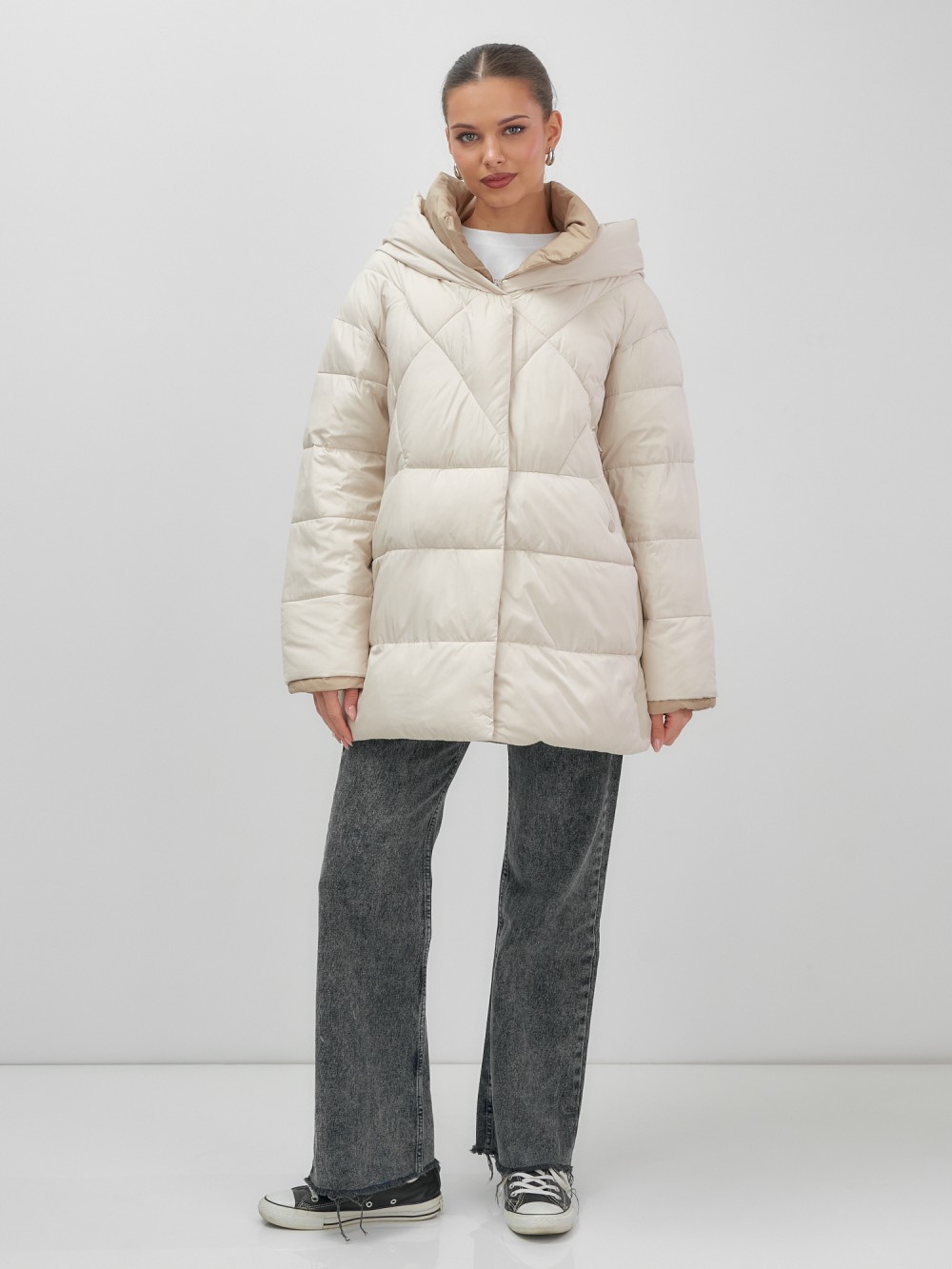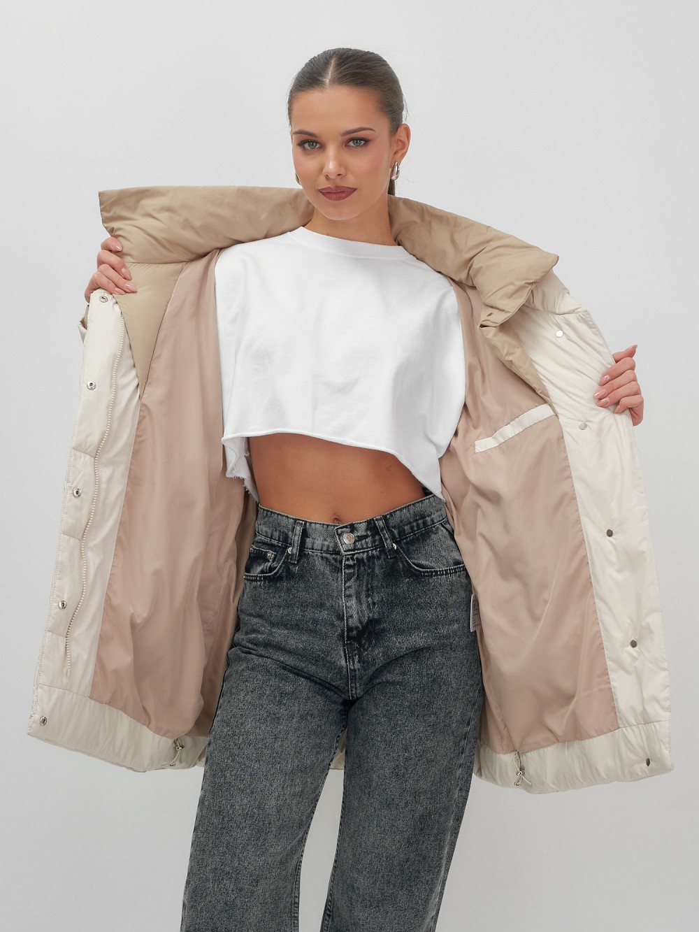 Куртка женская зимняя с капюшоном большого размера бежевого цвета 1170B