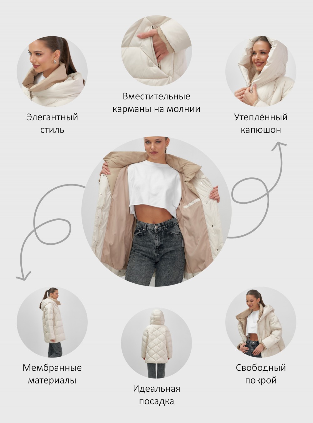 Это куртка из коллекции осень-зима 2025 станет вашим незаменимым спутником в холодное время года, обеспечивая стиль, комфорт и защиту от непогоды. Не упустите шанс добавить в свой гардероб эту прекрасную модную утепленную куртку!