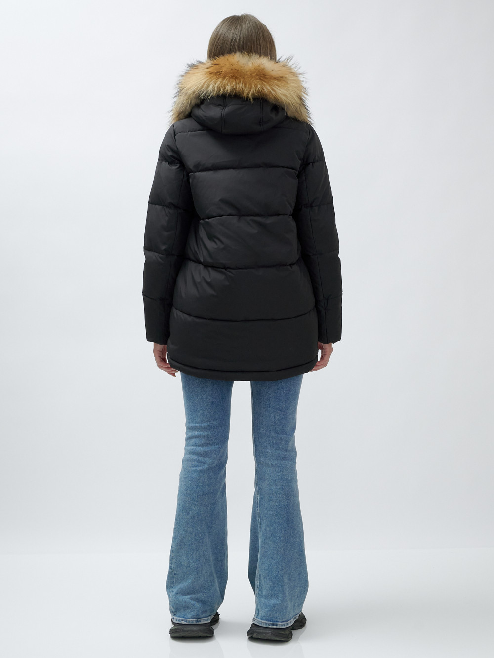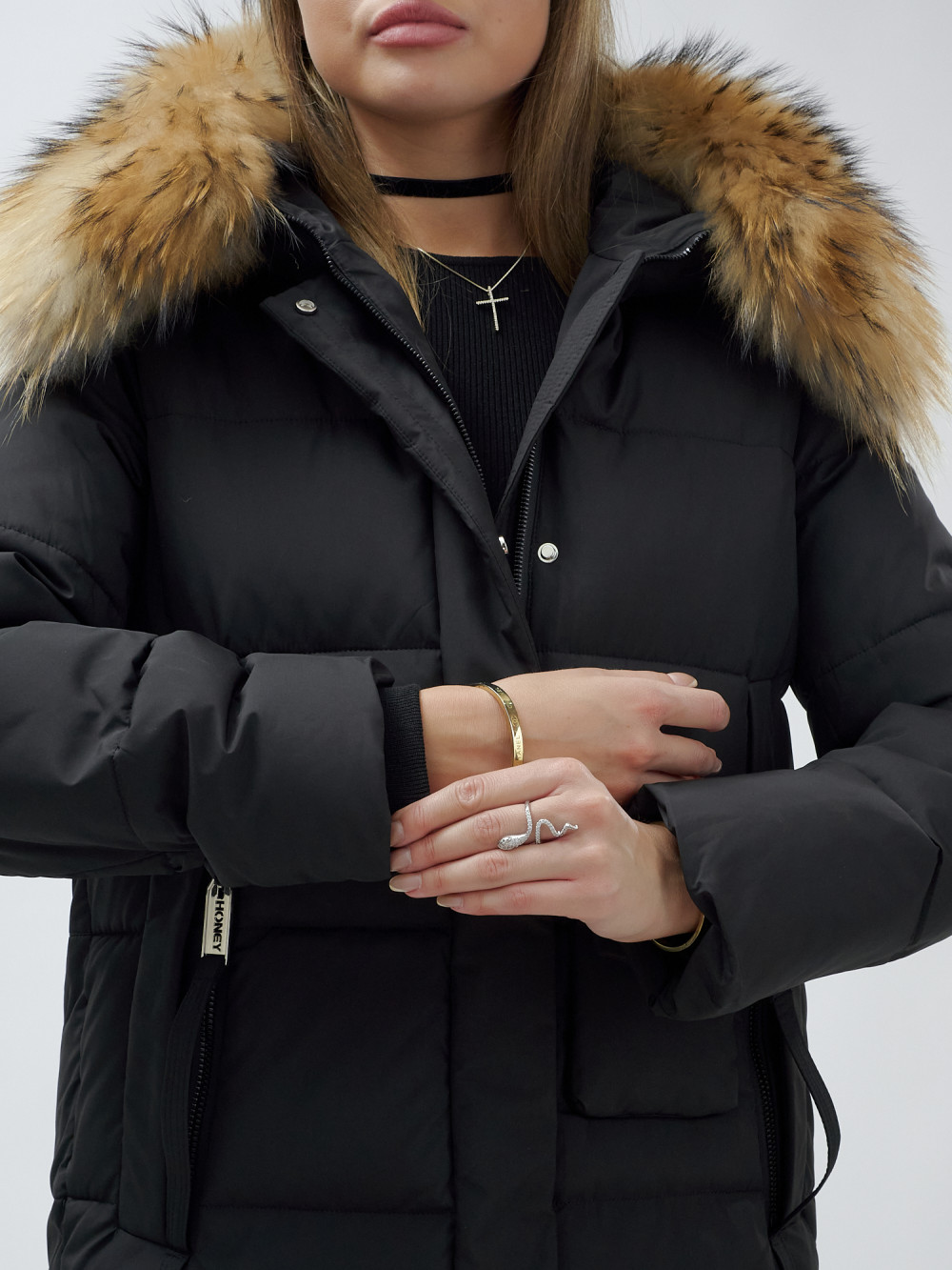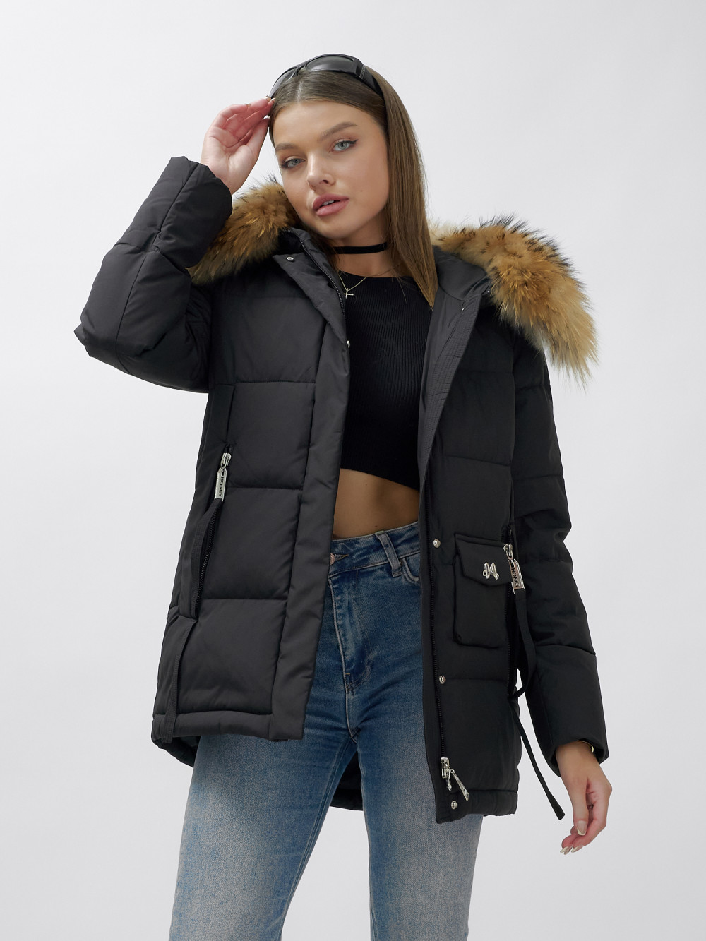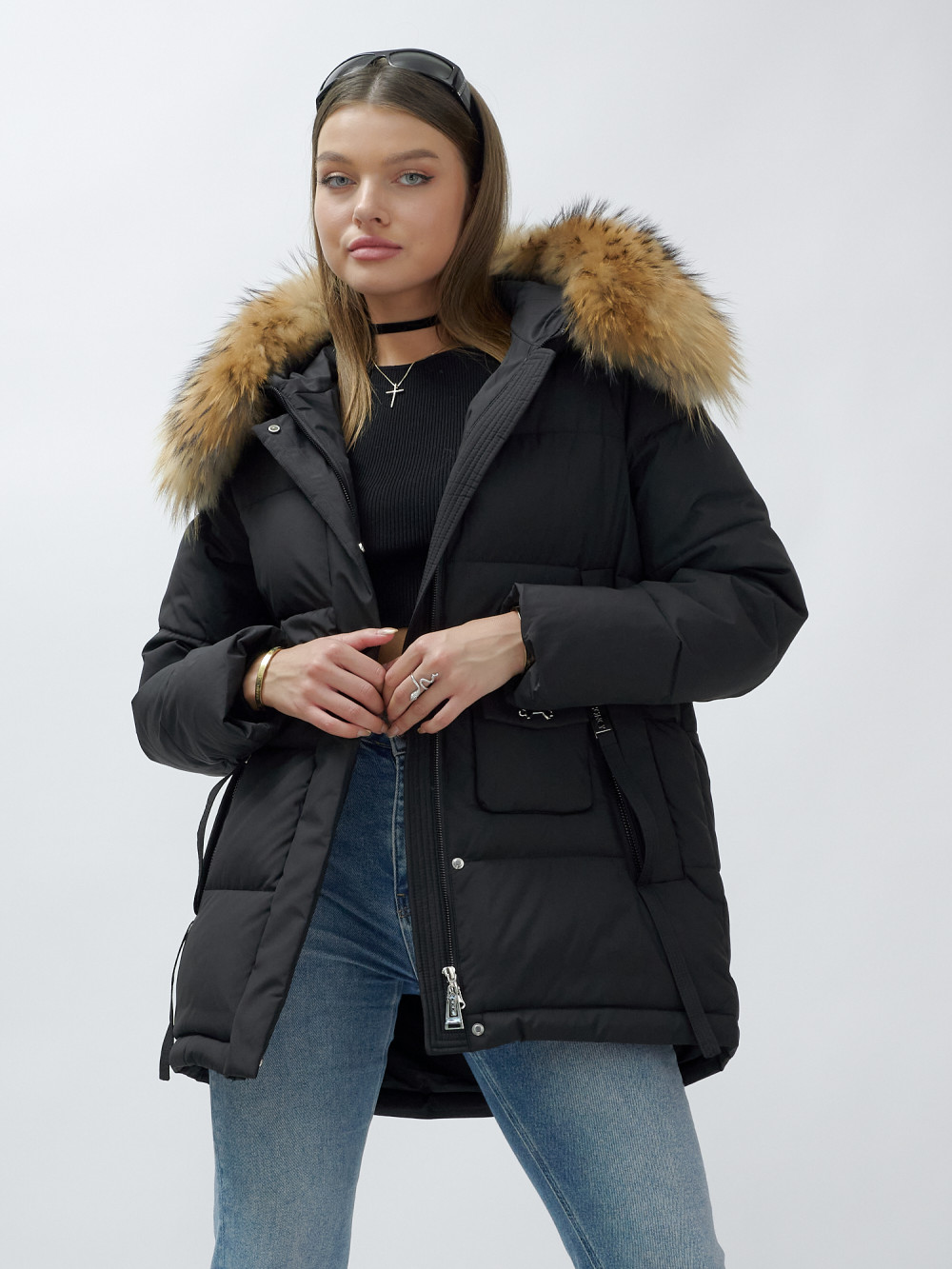 Куртка женская зимняя с мехом енот премиум класса черного цвета 3215Ch